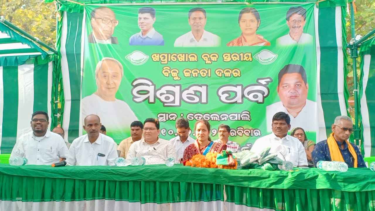 ଯୋଗଦାନ କରୁଛନ୍ତି। ସୂଚନା ଅନୁସାରେ ଆଜି ପାଟଣାଗଡ଼ ନିର୍ବାଚନ ମଣ୍ଡଳୀ ଖପ୍ରାଖୋଲ ବ୍ଳକ ତେଲେନପାଲି ଗାଁ ରେ ଶତାଧିକ ଲୋକ ବିଜୁ ଜନତାଦଳ ରେ ଯୋଗଦାନ କରିଥିଲେ। ମୁଖ୍ୟତଃ ବିଜେପି ଦଳର ପୂର୍ବତନ ଜିଲ୍ଲାପରିଷଦ ବିପ୍ର ବିଶି, ପୂର୍ବତନ ସରପଞ୍ଚ ତଥା ପୂର୍ବତନ ବିଜେପି ଅଧ୍ୟକ୍ଷା ଙ୍କ ସ୍ବାମୀ ରଘୁନାଥ ସିଂ ବରିହା, ଆଦିବାସୀ ସଂଘ ସଭାପତି ଟିକେଶ୍ବର ବରିହା, ନାନ୍ଦୁପଲା ପଞ୍ଚାୟତ ବିଜେପି ସଦସ୍ୟ ମାନସ ଠାକୁର, ଅମୃତ ପୁଞ୍ଜି ସହ ତେଲେନପାଲି, ନାନ୍ଦୁପଲା, ମଟିଆଭଟା, ଧଣ୍ଡାମୁଣ୍ଡା, ମହରାପଦର,ଟଙ୍କପାଣି,ଲୁହାସିଂହା, ଘୁନସର , ଭାନପୁର ପଞ୍ଚାୟତ ର ଦୁଇ ଶହରୁ ଊର୍ଦ୍ଧ୍ବ ଲୋକ ବିଜେଡି ରେ ଯୋଗଦାନ କରିଅଛନ୍ତି। ଉକ୍ତ କାର୍ଯ୍ୟକ୍ରମରେ ମୁଖ୍ୟ ଅତିଥି ଭାବେ ପାଟଣାଗଡ଼ ବିଧାୟକ ସରୋଜ କୁମାର ମେହେର ଥିବାବେଳେ ଖପ୍ରାଖୋଲ ବ୍ଳକ ପ୍ରତିନିଧି ରମେଶ ପ୍ରଧାନ ସଭାପତିତ୍ବ କରିଥିଲେ। ପାଟଣାଗଡ଼ ବ୍ଳକ ପ୍ରତିନିଧି ହିମାଚଳ ପ୍ରଧାନ, ଖପ୍ରାଖୋଲ ବ୍ଳକ ଅଧ୍ୟକ୍ଷା ନିରୁପମା ପଟେଲ, ଉପାଧ୍ୟକ୍ଷ ସୁଖିରାମ୍ ଷାଣ୍ଢ, ଜିଲ୍ଲା ସହ ସମ୍ପାଦକ ପବିତ୍ର ପଟେଲ, ବିଜେଡି ୪ ଜୋନ ସଭାପତି ତଥା ଲୁହାସିଂହା ସରପଞ୍ଚ ସୀମାଞ୍ଚଳ ପୁରୋହିତ,ଯୁବ ବିଜେଡ଼ି ସଭାପତି ବେଲାର ସିଂ ମେହେର, ଜିଲ୍ଲା କାର୍ଯ୍ୟକାରିଣୀ ସଭାପତି ଇନ୍ଦ୍ରମଣି ସାହୁ, ଗୋବିନ୍ଦ ସାହୁ ପ୍ରମୁଖ ଉପସ୍ଥିତ ରହି ନୂତନ ସଦସ୍ୟ ମାନଙ୍କୁ ଦଳୀୟ ପତାକା ଉପଢ଼ୌକନ ଦେଇ ସ୍ବାଗତ ଜଣାଇଥିଲେ। ଉକ୍ତ କାର୍ଯ୍ୟକ୍ରମରେ