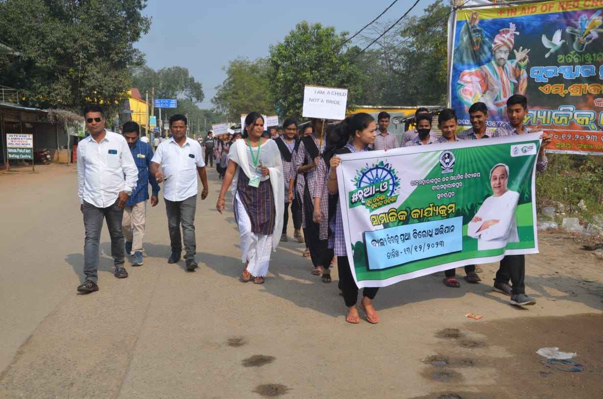 ବୀରମହାରାଜପୁର,( ବିନୋଦ ପାଣ୍ଡେ ): ବୀରମହାରାଜପୁର ସଦର ସ୍ଥିତ ମହାବିଦ୍ୟାଳୟ ଆନୁକୁଲ୍ୟରେ ବୁଧବାର 'ନୂଆ ଓଡିଶା' ଯୁବ ଓଡିଶା - ନବୀନ ଓଡ଼ିଶା ପକ୍ଷରୁ ବାଲ୍ୟ ବିବାହ ବିରୋଧରେ ଏକ ସଚେତନତା ଅଭିଯାନ ଆୟୋଜିତ ହୋଇଥିଲା I ଏହି ଅବସରରେ ଅନୁଷ୍ଠିତ ହୋଇଥିବା ଏକ ରାଲିକୁ ଭାରପ୍ରାପ୍ତ ଅଧ୍ୟକ୍ଷ ଡ଼. ହିମାଂଶୁ ଶେଖର ପାଢ଼ୀ ଓ ରାଜନୀତି ବିଜ୍ଞାନ ଅଧ୍ୟାପକ ଶିବ କୁମାର ପୁରୋହିତ ମିଳିତ ଭାବେ ସବୁଜ ପତାକା ଦେଖାଇ ଶୁଭାରମ୍ଭ କରିଥିଲେ I ଏଥିରେ ପ୍ରାୟ ତିନିଶହ ଛାତ୍ରଛାତ୍ରୀ ଅଂଶଗ୍ରହଣ କରିଥିଲେ I ଡ଼.ଶିଶିର ବଣିଆ, ନରେନ୍ଦ୍ର ଝା, ଯାମିନୀ ଦାଶ, ବିଜୟ କୁମାର ପଧାନ, ସ୍ମୃତି ରଞ୍ଜନ ଭରାସାଗର, ହରପ୍ରିୟା ମହାପାତ୍ର, ସିମାରାଣି ବେହେରା, ସୁବାଷ ଚନ୍ଦ୍ର ଶତପଥୀ ପ୍ରମୁଖ ନେତୃତ୍ୱ ନେଇଥିଲେ I ଅନ୍ୟ ମାନଙ୍କ ମଧ୍ୟରେ ଜଗଦିଶ ସାହୁ ଓ ଶ୍ରୀରାମ ଦେହୁରୀ ପ୍ରମୁଖ କାର୍ଯ୍ୟକ୍ରମ ଆୟୋଜନରେ ସହଯୋଗ କରିଥିଲେ I ସ୍ଥାନୀୟ ବ୍ଲକ ଉପାଧ୍ୟକ୍ଷ ନାରାୟଣ ଲୁହା ଛାତ୍ରଛାତ୍ରୀ ମାନଙ୍କୁ ଉଦବୋଧନ ଦେବା ସହିତ ରାଲିରେ ସାମିଲ ହୋଇଥିଲେ l
