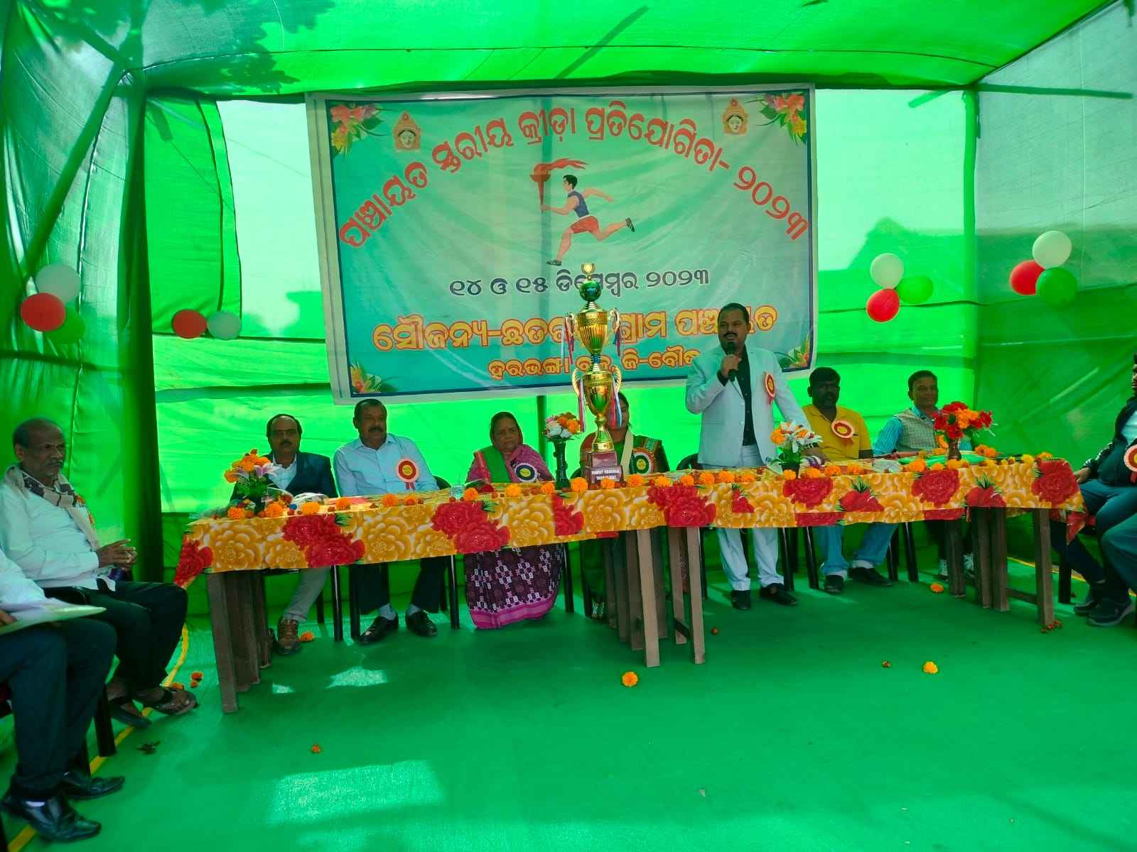 ବୌଦ୍ଧ(ଦୁର୍ଯ୍ଯୋଧନ ବିଶି): ହରଭଙ୍ଗା ବୌଦ୍ଧ ଜିଲ୍ଲା ହରଭଙ୍ଗା ବ୍ଲକ ଛତ୍ରଙ୍ଗ ନାରାୟଣ ଉଚ୍ଚ ବିଦ୍ୟାଳୟ ଖେଳପଡିଆ ଠାରେ ଦୁଇଦିନିଆ ଚତୁର୍ଥ ପଂଚାୟତସ୍ତରୀୟ କ୍ରୀଡା ପ୍ରତିଯୋଗୀତା ଆଜି ଉଦଘାଟିତ ହୋଇଯାଇଛି। ଗ୍ରାମ ଠାକୁରାଣୀ ପୀଠ ତ୍ରିନାଥ ମନ୍ଦିର ଓ ବାବାଚନ୍ଦ୍ର ଶେଖର ଶୈବପୀଠରୁ ମଶାଲ ଶୋଭାଯାତ୍ରା ରେ ଆସି ପଡିଆ ପରିକ୍ରମା କରି ମୁଖ୍ଯ ଅତିଥି ସମ୍ମାନୀତ ଅତିଥି ଭାବେ ଅନ୍ୟତମ ଅତିଥି ମାନଙ୍କ ଦ୍ଵାରା କ୍ରୀଡା ପତାକା ଉତ୍ତୋଳନ କରିଥିଲେ। ସରପଞ୍ଚ ବିନୋଦିନୀ ପ୍ରଧାନ ଙ୍କ ସଭାପତିତ୍ବରେ ଅନୁଷ୍ଠିତ ଉଦ୍ଘାଟନୀ ଉତ୍ସବରେ ମୁଖ୍ୟ ଅତିଥି ଭାବେ ଜିଲ୍ଲା ପରିଷଦ ଅଧ୍ୟକ୍ଷା ଶ୍ରୀମତୀ ପ୍ରଭାସିନି ଦାସ, ସମ୍ମାନିତ ଅତିଥି ଭାବେ ହରଭଙ୍ଗା ବ୍ଲକ ଉପାଧ୍ୟକ୍ଷ ସରୋଜ କୁମାର ପ୍ରଧାନ, ଅନ୍ୟତମ ଅତିଥି ଭାବେ ସମାଜସେବୀ ପ୍ରଦୀପ୍ତ କୁମାର ସାହୁ ଅନ୍ୟତମ ଅତିଥି ଭାବେ ଅବସରପ୍ରାପ୍ତ ପ୍ରଧାନ ଶିକ୍ଷକ ତଥା ଉପଦେଷ୍ଟା କମଳ ଲୋଚନ ସାହୁ, ଅବସରପ୍ରାପ୍ତ ଶିକ୍ଷକ ତ୍ରିଲୋଚନ ପ୍ରଧାନ ଓ ଏହି କ୍ରୀଡା ର ଆବାହକ ଶୁଶିଲ ପ୍ରଧାନ ପ୍ରମୁଖ ମଞ୍ଚାସୀନ ଥିଲେ ଶିକ୍ଷକ ସତ୍ଯ ନାରାୟଣ ସାହୁ ଅତିଥି ପରିଚୟ ପ୍ରଦାନ କରିଥିଲେ। ସଂପାଦକ ଜିତେନ୍ଦ୍ର କୁମାର ସାହୁ ବିବରଣୀ ପାଠ କରିଥିଲେ। ସରସ୍ଵତୀ ଶିଶୁ ମନ୍ଦିର ର ଛାତ୍ର ଛାତ୍ରୀ ମାନେ ସ୍ବାଗତ ସଂଗୀତ ଗାନ କରିଥିଲେ। ଅତିଥି ମାନଙ୍କୁ ଉପଢୌକନ ଓ ପୁଷ୍ପ ଗୁଚ୍ଛ ଦେଇ ସ୍ଵାଗତ ସମ୍ବର୍ଦ୍ଧନା କରା ଯାଇଥିଲା। ନାରାୟଣ ଉଚ୍ଚ ବିଦ୍ୟାଳୟ ର ଖେଳ ଶିକ୍ଷକ ନିରଞ୍ଜନ ସାହୁ ଖେଳ ପରିଚାଳନା କରିଥିଲେ। ଏହି ଚତୁର୍ଥ ପଂଚାୟତ ସ୍ତରୀୟ କ୍ରୀଡା ପ୍ରତିଯୋଗୀତା ରେ ପଂଚାୟତର ଛତରଙ୍ଗ, ଖରଭୂଇଁ, ବାଇଶିପଡା, କୁଟିଗାଡୁ, ଝାରଖମଣ, ଗୁଣ୍ଡୁରିସାହି, କଣ୍ଠିପଦର ଓ ଭାଲିଆଗୋରା ଆଦି ଗ୍ରାମର ପ୍ରାଥମିକ, ଉଚ୍ଚପ୍ରାଥମିକ, ଉଚ୍ଚ ବିଦ୍ୟାଳୟ ଓ ସରସ୍ଵତୀ ଶିଶୁ ମନ୍ଦିର ଆଦିର ପାଚଂ ଶହ ରୁ ଉର୍ଦ୍ଧ ଛାତ୍ରଛାତ୍ରୀ ମାନେ ଅଂଶଗ୍ରହଣ କରିଥିଲେ। ବିଭିନ୍ନ ବିଦ୍ୟାଳୟର ଗାଇଡ ଶିକ୍ଷକ ମାନେ ଖେଲ ପରିଚାଳନାରେ ସହଯୋଗ କରିଥିଲେ।ଏବଂ ଛତରଙ୍ଗ ତ୍ରିନାଥ ଯୁବକ ସଂଘର କର୍ମକର୍ତ୍ତା ସହଯୋଗ କରିଥିଲେ।