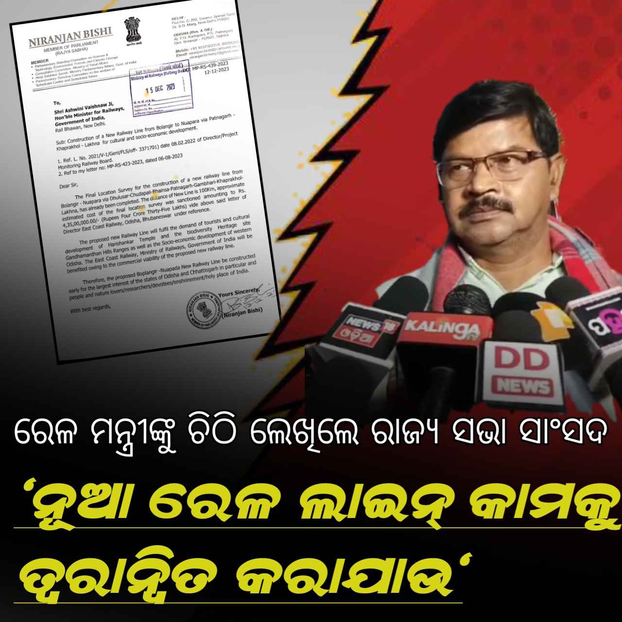 ଓଡ଼ିଶା ଏବଂ ଛତିଶଗଡ ରାଜ୍ୟ ଉପରେ ଏହାର ମହତ୍ବପୂର୍ଣ୍ଣ ପ୍ରଭାବ ରହିବା ସହିତ ବଲାଙ୍ଗିର-ନୁଆପଡା ନୂତନ ରେଳ ଲାଇନ ନିର୍ମାଣ କାର୍ଯ୍ୟ ଉପରେ ତ୍ୱରିତ କାର୍ଯ୍ୟାନୁଷ୍ଠାନ ପାଇଁ କେନ୍ଦ୍ର ସରକାର ଙ୍କ ସଞ୍ଚlର, ରେଲୱେ, ସୂଚନା ପ୍ରଯୁକ୍ତିବିଦ୍ୟା ମନ୍ତ୍ରୀ ଶ୍ରୀ ବୈଷ୍ଣବ ଙ୍କୁ ରାଜ୍ୟସଭା ସାଂସଦ ଶ୍ରୀ ବିଶି ଅନୁରୋଧ କରିଛନ୍ତି l