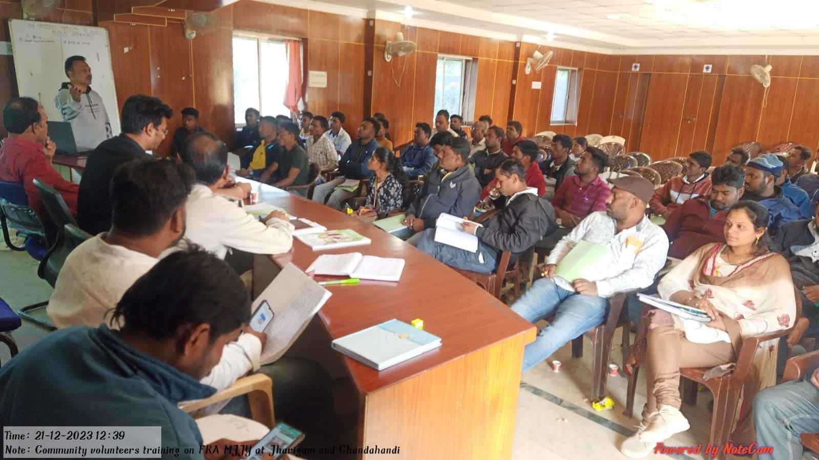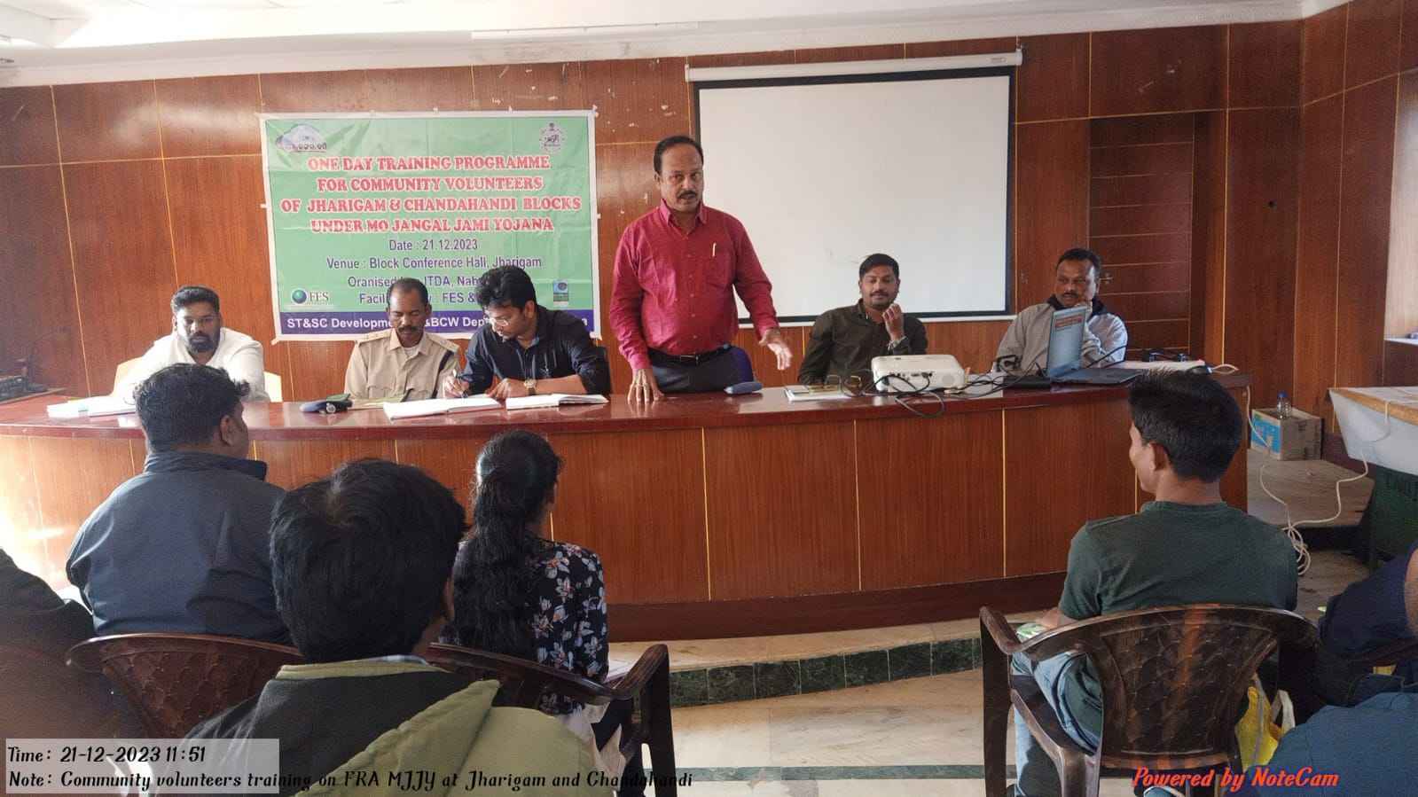 ନବରଙ୍ଗପୁର:(ମିହିର ଶଙ୍କର ପାତ୍ର): ଝରୀଗାଁ ତହସିଲ ଅନ୍ତର୍ଗତ ସମସ୍ତ ଗ୍ରାମ ଗୁଡିକରେ ଜଙ୍ଗଲ ଜମି ଅଧିକାର କାର୍ଯ୍ୟକ୍ରମକୁ ସୁଚାରୁ ରୂପେ କାର୍ଯ୍ୟକାରୀ କରାଯିବା ସକାଶେ ଝରୀଗାଁ ବ୍ଲକ କନଫେରେନ୍ସ ହଲ ଠାରେ ବ୍ଲକର ସମସ୍ତ କମ୍ୟୁନିଟି ଭଲୁନଟର, ଆର ଆଇ ଏବଂ ବନ ବିଭାଗ କର୍ମଚାରୀ ମାନଙ୍କର ମିଳିତ ସହଯୋଗରେ ଏକ ପ୍ରଶିକ୍ଷଣ କାର୍ଯ୍ୟକ୍ରମ କରାଯାଇଛି |ଏହି କାର୍ଯ୍ୟକ୍ରମରେ ଶଇମନ ନାୟକ ଡବ୍ଲୁ ଇ ଓ ନିହାର ରଞ୍ଜନ ବେହେରା, ରେଞ୍ଜର ଗୋବିନ୍ଦ ନାୟକ, ଏଫ ଆର ଏ କୋ ଓରଡିନେଟର ମୃତ୍ୟୁଞ୍ଜୟ ନାୟକ, ଆର ସି ଡି ସି ଶିବ ଶଙ୍କର ଦୋରା, ଦୁଷ୍ମନ୍ତ ଓଝା, ଏଫ ଇ ଏସ ବିଜୟ ଟମମ ପ୍ରମୁଖ ଉପସ୍ଥିତ ରହିଥିଲେ | ଉକ୍ତ କାର୍ଯ୍ୟକ୍ରମକୁ ଏଫ ଇ ଏସ କର୍ମକର୍ତା ମାନେ ପରିଚାଳନା କରିଥିଲେ |ଏହି ତାଲିମ ରେ ବ୍ୟକ୍ତିଗତ, ଗୋଷ୍ଠୀଗତ ଏବଂ ଗୋଷ୍ଠୀ ସମ୍ବଳର ଅଧିକାର ବିଷୟରେ ବିସ୍ତୃତ ଭାବେ ଆଲୋଚନା କରାଯିବା ସହିତ ଆଗାମୀ ଦିନରେ ରାଜ୍ୟ ସରକାର ମୋ ଜଙ୍ଗଲ ଜମି ଯୋଜନା ଏକ ନିର୍ଦ୍ଧିଷ୍ଟ ସମୟ ମଧ୍ୟରେ ସମାପନ କରିବା ସକାଶେ ଆଲୋଚନା କରାଯାଇଥିଲା | ଏହାର ସଫଳ ରୂପାୟନ ନିମନ୍ତେ ସମସ୍ତ ଉପସ୍ଥିତ ସରକାରୀ ତଥା ଵେସରକାରୀ କର୍ମକର୍ତା ମାନଙ୍କୁ ଦାୟିତ୍ୱ ପ୍ରଦାନ କରାଯାଇଛି |