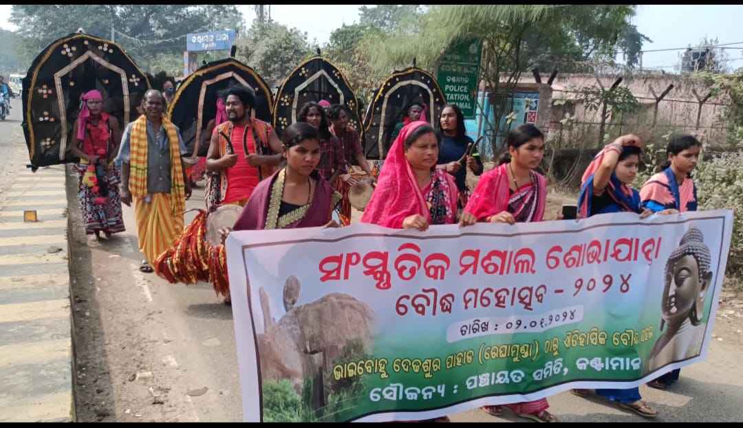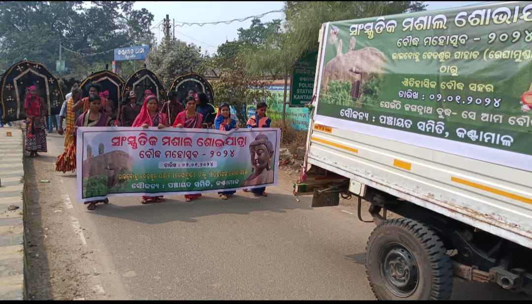 ବୌଦ୍ଧ ଜିଲ୍ଲା କଣ୍ଟାମାଳ ପଞ୍ଚାୟତ ସମିତି ପକ୍ଷରୁ ଆଜି ଏକ ସାଂସ୍କୃତିକ ମଶାଲ ଶୋଭାଯାତ୍ରା ବାହାରି ମଙ୍ଗଳବାର ଠାରୁ ଆରମ୍ଭ ହେଉଥିବା ବୌଦ୍ଧ ମହୋତ୍ସବ ରେ ଯୋଗଦେଇଛି l କଣ୍ଟାମାଳ ବିଡ଼ିଓ ଙ୍କ ନେତୃତ୍ୱରେ ବ୍ଲକର ରେଘାମୁଣ୍ଡା ଭାଇ ବୋହୁ ଦେଢଶୁର ସ୍ଥିତ ଶୈବ ମନ୍ଦିର ରୁ ପୁଜାର୍ଚନା ପରେ ମଶାଲ ସହ ସାଂସ୍କୃତିକ ଶୋଭାଯାତ୍ରା ବାହାରିଥିଲା l କଣ୍ଟାମାଳ ପଞ୍ଚାୟତ ସମିତି ଅଧ୍ୟକ୍ଷା ଶ୍ରୀମତୀ ସସ୍ମିତା ସେନାପତି ହାତରେ ସାଂସ୍କୃତିକ ମଶାଲ ଧରି ଶୋଭାଯାତ୍ରା ରେ ବାହାରି ଅମ୍ବଗାଁ, ଘଣ୍ଟାପଡା, କଣ୍ଟାମାଳ, ମନମୁଣ୍ଡା ହୋଇ ବୌଦ୍ଧ ପହଞ୍ଚିଥିଲେ l ଏହି ଶୋଭାଯାତ୍ରା ରେ ବ୍ଲକର ସମସ୍ତ କର୍ମଚାରୀ, ଆଇସିଡ଼ିଏସ ସୁପରଭାଇଜର, ଅଙ୍ଗନବାଡି କର୍ମୀ ପ୍ରମୁଖ ଯୋଗଦେଇଥିଲେ l