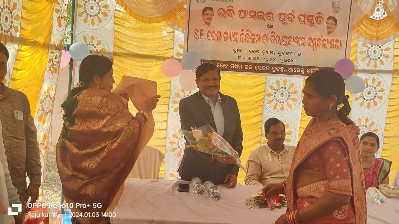 କେସିଙ୍ଗା ( କେଶବ ମେହେର)କଳାହାଣ୍ଡି ଜିଲ୍ଲାର ନର୍ଲା ବ୍ଲକ ଅନ୍ତର୍ଗତ ରେତ ଡ୍ୟାମ ଡିଭିଜନ ପକ୍ଷରୁ ରବି ଫସଲ ର ପୂର୍ବ ପ୍ରସ୍ତୁତି ଓ ଏସ ଇ,ରେତ ଡିଭିଜନ ଙ୍କ ବିଦାୟକାଳୀନ ସମ୍ବର୍ଦ୍ଧନା ସଭା ତା ୦୩/୦୧/୨୦୨୪ ରିଖ ବୁଧବାର ଦିନ ରେତ ଡ୍ୟlମ ଠାରେ ରେତ ମଧ୍ୟମ ଜଳ ସେଚନ ପ୍ରକଳ୍ପ ଆପେସ୍କ କମିଟି ଭବାନୀପାଟଣା ,ପକ୍ଷରୁ ଅନୁଷ୍ଠିତ।ଉକ୍ତ ସଭା କାର୍ଯ୍ୟ ପ୍ରକଳ୍ପ କମିଟି ସଭାନେତ୍ରୀ ଶ୍ରୀମତୀ ଚନ୍ଦ୍ରକାନ୍ତି ମେହେର ଙ୍କ ସଭାପତିତ୍ବରେ ସଭାକାର୍ଯ୍ୟ ଅନୁଷ୍ଠିତ ହୋଇଥିଲା।ଉକ୍ତ ସଭା କାର୍ଯ୍ୟ ର ମୁଖ୍ୟ ଅତିଥି ଭାବରେ ସି ସି ଇ ଶ୍ରୀ ସୁଜିତ୍ କୁମାର ମହାରଣା ଓ ନିମନ୍ତ୍ରିତ ଅତିଥି ପୂର୍ବତନ ଏସ ଇ ଶ୍ରୀ ଗିରିଜା ଶଙ୍କର ମିଶ୍ର,ସମ୍ମାନିତ ଅତିଥି ଏସ ଇ ନର୍ଲା ଶ୍ରୀମତୀ ଏଲିଶାବା ଡୁମ ଡୁମ,ଓ ସ୍ବାଗତ ଭାଷଣ ଦେଇଥିଲେ ଆପେଷ୍କ କମିଟି ସଂପାଦକ ଶ୍ରୀ ଶୂନ୍ୟ ମଙ୍ଗରାଜ, ଓ ସହଯୋଗ କରିଥିଲେ ସମାଜ ସେବୀ ଶ୍ରୀ ଟଙ୍କଧର ମେହେର ,ଏବଂ ସଭାକାର୍ଯ୍ୟ ରେ ଉପସ୍ଥିତ ଥିଲେ ଏସ ଡି ଓ ଶ୍ରୀ ଧିରୋଜ କୁମାର କହଁର ,ଏସ ଡି ଓ ଶ୍ରୀ ନରେନ୍ଦ୍ର ଛତ୍ରିଆ,ଏସ ଡି ଓ ଶ୍ରୀମତୀ ଜୟ ଶ୍ରୀ ଓଝା, ଏସ ଡି ଓ ବିଶ୍ୱ ଭୂଷଣ ହ୍ନାଶାଦା ଏସ ଡି ଓ ଶ୍ରୀ ପ୍ରଶାନ୍ତ କୁମାର ପଣ୍ଡା ,ଜେଇ ଶ୍ରୀ ହେମନ୍ତ କୁମାର ନାଏକ, ଜେଇ ଶ୍ରୀ ବିଦେଶୀ ନାହକ, ଜେଇ ଶ୍ରୀ ବାଳକୃଷ୍ଣ ମହାପାତ୍ର , ଜେଇ ଶ୍ରୀ ପ୍ରଦୀପ ମାଝୀ, ଜେଇ ଶ୍ରୀ ରେଙ୍ଗୋ ନାଏକ, ଜେଇ ଶ୍ରୀ ସତ୍ୟବ୍ରତ ତ୍ରିପାଠୀ ,ଓ ଉଣେଇଶ ଗୋଟି ପାଣି ପଞ୍ଚାୟତ ର କର୍ମ କର୍ତ୍ତା ଓ ଚାଷୀ ବୃନ୍ଦ ଏବଂ ବିଭାଗୀୟ ଅଧିକାରୀ ଓ ଜଳସମ୍ପଦ ବିଭାଗ କର୍ମଚାରୀ ଙ୍କ ଉପସ୍ଥିତିରେ ଚଳିତ ବର୍ଷ ର ରବି ଫସଲ ପାଇଁ ଜଳ ନିସ୍କାସନ ହେବ ପୁଙ୍ଖ ନୁ ପୁଙ୍ଖା ଭାବରେ ତର୍ଜମା କରି ଶାନ୍ତି ଶୃଙ୍ଖଳା ର ଶହ ସଭା କାର୍ଯ୍ୟ ହୋଇଥିଲା