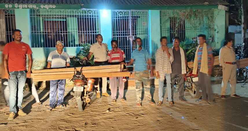 କଣ୍ଟାମାଳ(ଜୟ କୁମାର ମହାରଣାଙ୍କ ରିପୋର୍ଟ)ବୌଦ୍ଧ ବନଖଣ୍ଡ କଣ୍ଟାମାଳ ରେଞ୍ଜ ବରପଦର ସେକ୍ସନ ଲମ୍ବସରି ଅଞ୍ଚଳରେ ଚଢ଼ାଉ କରି ବିପୁଳ ପରିମାଣର ଚଉକାଠ ସହ ଘଟଣାରେ ତିନୋଟି ବାଇକ୍ କୁ ଜବତ କରିଥିବା ବେଳେ ଘଟଣାରେ ସଂପୃକ୍ତ ଥିବା ୩ କାଠ ମାଫିଆ ଫେରାର ଥିବା ବନ ବିଭାଗ ପକ୍ଷରୁ କୁହାଯାଇଛି। ସୂଚନା ଅନୁସାରେ ବିଶ୍ଵସ୍ତ ସୂତ୍ରରୁ ଖବର ପାଇବରପଦର ଫରେଷ୍ଟର ବୁଲି ବେହେରାଙ୍କ ନେତୃତ୍ୱରେ ବନ ବିଭାଗର ଏକ ଟିମ୍ ଲମ୍ବସରି ଅଞ୍ଚଳର ଦେମୁହାନିରେ ଗତକାଲି ରାତିରେ ପେଟ୍ରୋଲିଂ କରୁଥିଲେ । ଉକ୍ତ ରାସ୍ତାରେ ୩ ବାଇକ ରେ ତିନି ଜଣ ଚଉକାଠ ଧରି ଆସୁଥିବା ବେଳେ ବନ କର୍ମଚାରୀ ମାନେ ତାଙ୍କୁ ଅଟକାଇଥିଲେ | ବନ କର୍ମଚାରୀଙ୍କୁ ଦେଖି ମାଫିଆ ମାନେ ଗାଡ଼ି ଛାଡ଼ି ଘଟଣା ସ୍ଥଳରୁ ଫେରାର ମାରିଥିଲେ | ସେମାନଙ୍କ ନିକଟରୁ ୨୫ ଖଣ୍ଡ ଚଉକାଠ ଜବତ କରିଥିବା ବେଳେ ୩ ବାଇକ୍ କୁ ଜବତ କରିଛିl ଘଟଣାରେ ବ୍ୟବହୃତ ଗୋଟିଏ ହିରୋ ଏଚ ଏଫ୍ ଡିଲକ୍ସ , ହିରୋ ହୋଣ୍ଡା ଡିଲକ୍ସ ଓ ବାଜାଜ୍ ଡିଷ୍କଭର୍ ବାଇକ୍ ଜବତ ହୋଇଥିବା ବନ ବିଭାଗ ପକ୍ଷରୁ ସୂଚନା ମିଳିଛି | ଏହି ଚଢ଼ାଉରେ ଫରେଷ୍ଟର ବୁଲି ବେହେରା, ଫରେଷ୍ଟ ଗାର୍ଡ ସୁନିଲ ପ୍ରଧାନ , ତୋଫାନ ମହାକୁଡ, ଜୟକୃଷ୍ଣ ମହାକୁଡ, ପରମେଶ୍ବର ପ୍ରଧାନ ପ୍ରମୁଖ ସାମିଲ ଥିଲେ | ଏ ସମ୍ପର୍କରେ ବନ ବିଭାଗ ପକ୍ଷରୁ ଏକ ମାମଲା ରୁଜ୍ଜୁ କରାଯାଇ ଅଧିକ ତଦନ୍ତ ଜାରି ରହିଛି |