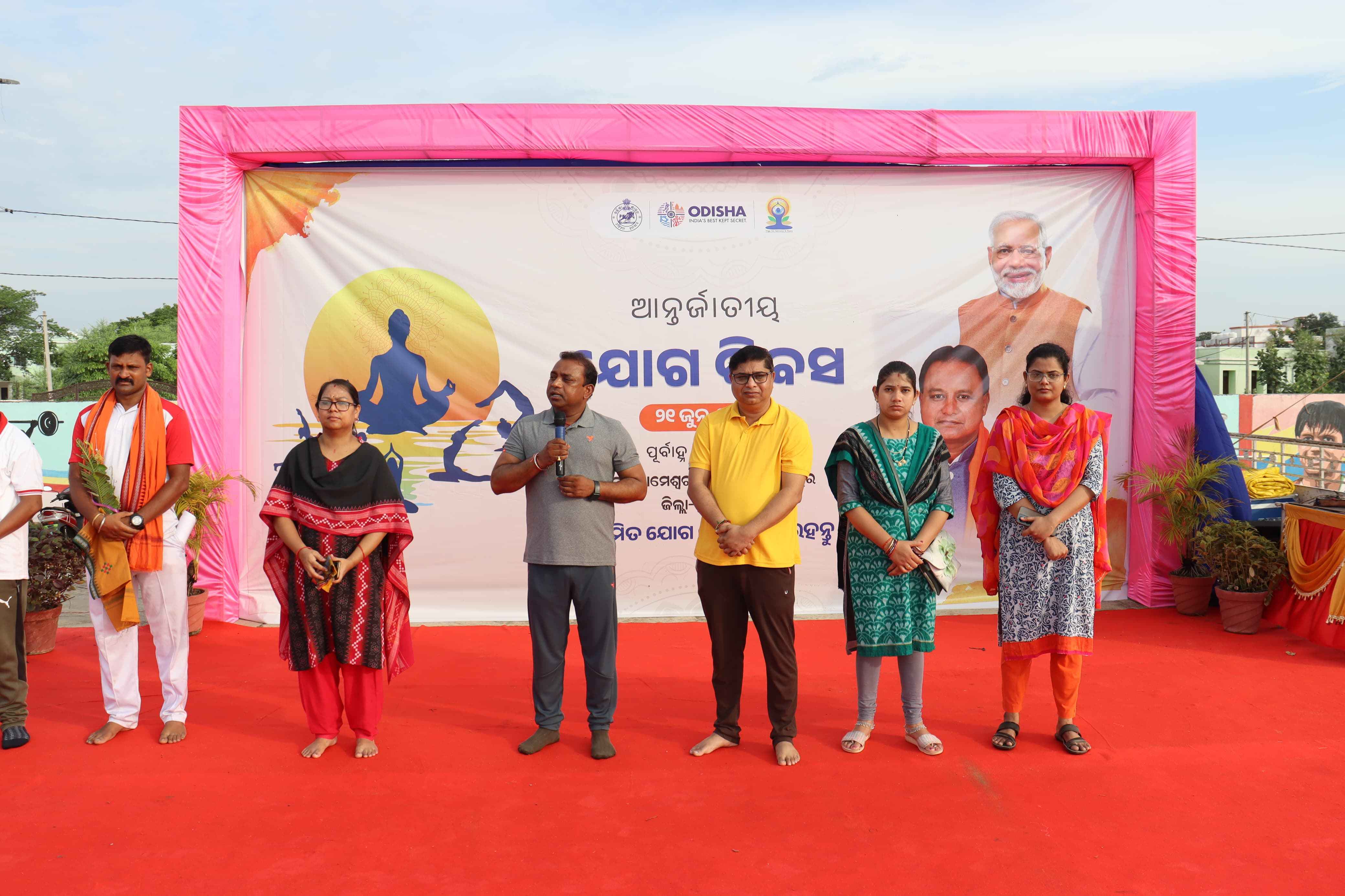 ସୁବର୍ଣ୍ଣପୁର, ମନୋରଞ୍ଜନ ତ୍ରିପାଠୀ )ସୁବର୍ଣ୍ଣପୁର ରାମେଶ୍ୱର ଷ୍ଟାଡିୟମ ଠାରେ ଜିଲ୍ଲା ପ୍ରଶାସନ ପକ୍ଷରୁ ବିଶ୍ବ ଯୋଗ ଦିବସ ପାଳିତ ହୋଇଯାଇଛି l ରାଜ୍ୟ କ୍ରୀଡା ଓ ଯୁବ ସେବା ବିଭାଗ ସୌଜନ୍ୟରେ ଜିଲ୍ଲା କ୍ରୀଡା ବିଭାଗ ଆନୁକୂଲ୍ୟରେ ଆୟୋଜିତ ଜ଼ିଲ୍ଲା ପ୍ରଶାସନ ର ଏହି ଅନ୍ତର୍ଜାତୀୟ ଯୋଗ ଦିବସ ପାଳନ ଅବସରରେ ବୀରମହାରାଜପୁର ବିଧାୟକ ଶ୍ରୀଯୁକ୍ତ ରଘୁନାଥ ଜଗଦଲା ମୁଖ୍ୟ ଅତିଥି ଭାବରେ ଯୋଗଦେଇ ଯୋଗ ଓ ପ୍ରାଣାୟାମ ଜୀବନକୁ ଶୃଙ୍ଖଳିତ କରିବା ସହ ମଣିଷ ର ଶରୀର ଓ ମନକୁ ସୁସ୍ଥରଖି ଏକ ବିକାଶମୁଖୀ ସମାଜ ଗଠନ ନିମନ୍ତେ ସକାରାତ୍ମକ ପ୍ରଭାବ ପକାଇଥାଏ ବୋଲି ବକ୍ତବ୍ୟ ରେ ଗୁରୁତ୍ୱାରୋପ କରିଥିଲେ l ପୁନଶ୍ଚ ଯୋଗାଭ୍ୟାସ ଓ ପ୍ରାଣାୟାମର ଗୁରୁତ୍ୱ ଉପରେ ଆଲୋକପାତ କରି ସାମ୍ପ୍ରତିକ ସ୍ଥିତିରେ ଏକ ଶୃଙ୍ଖଳିତ, ବ୍ୟବସ୍ଥିତ ତଥା ଅନୁଶାସିତ ଜୀବନ ବଂଚିବାରେ ଯୋଗ ଓ ପ୍ରାଣାୟାମର ଆବଶ୍ୟକତାକୁ ହୃଦୟଙ୍ଗମ ସହିତ ଆମେ ସମସ୍ତେ ନିୟମିତ ଭାବେ ନିର୍ଦ୍ଧିଷ୍ଟ କିଛି ସମୟ ଯୋଗ ଓ ପ୍ରାଣାୟାମ କରିବାକୁ ପରାମର୍ଶ ଦେଇଛନ୍ତି ମୁଖ୍ୟ ଅତିଥି ମାନ୍ୟବର ବିଧାୟକ ବୀରମହାରାଜପୁର l ଶିବିର ରେ ସୁବର୍ଣ୍ଣପୁର ଅତିରିକ୍ତ ଜିଲ୍ଲାପାଳ ଅଞ୍ଜଳିନା ପ୍ରଧାନ, ଅତିରିକ୍ତ ଜିଲ୍ଲାପାଳ ରାଜେନ୍ଦ୍ର ମାଝୀ,ସି ଡି ଓ ତଥା ନିର୍ବାହୀ ଅଧିକାରୀ ଜିଲ୍ଲା ପରିଷଦ ଅଶ୍ୱିନୀ ମେହେର ପ୍ରମୁଖ ସମ୍ମାନିତ ଅତିଥିଭାବେ ଯୋଗଦାନ କରିଥିବା ବେଳେ ଅନୁଷ୍ଠିତ ଶିବିରରେ ପତଞ୍ଜଳି ଯୋଗ ସମିତି ସୁବର୍ଣ୍ଣପୁର ଶାଖା, ଶ୍ରୀ ଗୋପାଳଜୀ ତଡିତ ମନ୍ତ୍ର ଶ୍ୱାସ ଯୋଗାଳୟ, ମାରୱାଡି ଯୁବାମଞ୍ଚ, ଜିଲ୍ଲା ସ୍ୱଚ୍ଛ ଭାରତ ସଙ୍ଘ, ଜିଲ୍ଲା ବାର ଏସୋସିଏସନ, ଜିଲ୍ଲା ରକ୍ତ ଦାତା ସଂଘ, ବରିଷ୍ଠ ନାଗରିକ ସଂଘ, ବୁଦ୍ଧିଜୀବୀ,ଈଶ୍ୱରୀୟ ପ୍ରଜାପିତା ବ୍ରହ୍ମlକୁମାରୀ, ଶ୍ରୀ ସତ୍ୟସାଇ ସେବାସଦନ, ଗାୟତ୍ରୀ ପରିବାର, ରାଷ୍ଟ୍ରୀୟ ସ୍ୱୟଂ ସେବକ ସଂଘ ,ଜିଲ୍ଲା ବଜରଙ୍ଗ ଦଳ, ରାମଧୁନ କ୍ଳବ, ବୁଢାରଜା ଯୁବକ ସଙ୍ଘ, ରେଆର, ଗ୍ରାମ୍ମୋ୍ଥାନ, ମହାନଦୀ ସାହିତ୍ୟ ସଂସଦ, ଜିଲ୍ଲା ଏଥେଲେଟିକ ସଙ୍ଘ, ଜିଲ୍ଲା କ୍ରିକେଟ ସଙ୍ଘ, କରାଟେ ଆସୋସିଏସନ, ସ୍ବିମିଙ୍ଗ ଏସୋସିଏସନ, ଟାଇକୋଣ୍ଡ ସଙ୍ଘ,ନାରୀଜାଗରଣ କେନ୍ଦ୍ର, ନାଟ୍ୟଚକ୍ର, ପଇଁରି, ଭୀମ ଭୋଇ କଳା ପରିଷଦ, ଜିଲ୍ଲା ବସ ସଙ୍ଘ, ଜିଲ୍ଲା ଟ୍ରକ ସଙ୍ଘ,ଜିଲ୍ଲା ଡ୍ରାଇଭର ସଙ୍ଘ, ଏସ ବି ଆଇ ଆର ଏସ ଇ ଟି ଆଇ, ବଣିକ ସଙ୍ଘ ପ୍ରଭୁତି ସଂଗଠନ,ଯୋଗ ସଂଗଠନ ଓ ବିଭିନ୍ନ ସ୍ବେଛାସେବୀ ସଂଗଠନର କାର୍ଯ୍ୟକର୍ତ୍ତା ଜିଲ୍ଲା ସ୍ତରୀୟ ଗଣ ମାଧ୍ୟମ ପ୍ରତିନିଧି ପ୍ରମୁଖ ସହିତ ଜିଲ୍ଲାର ବିଭିନ୍ନ ସ୍କୁଲ ର ଛାତ୍ର ଛାତ୍ରୀ ଯୋଗଦାନ କରି ଯୋଗ ପ୍ରଶିକ୍ଷକ ମନୋଜ ପଣ୍ଡା ଙ୍କ ଯୋଗମୁଦ୍ରାର ତାଳେ ତାଳେ ସଭିଏଁ ଯୋଗାସନ ଓ ପ୍ରାଣାୟାମ ଅଭ୍ୟାସ କରିଥିଲେ । ତେବେ ଦିନକୁ ଦିନ ଯୋଗର ପରିସର ଓ ଗୁରୁତ୍ୱ ବ୍ୟାପକ ହେଉଥିବା ବେଳେ,ଏ ବର୍ଷ ଯୋଗ ଦିବସର ଶୀର୍ଷକ " ନିଜ ପାଇଁ ଓ ସମାଜ ପାଇଁ ଯୋଗ " ରହିଛି l ଯୋଗର ମହତ୍ୱ ଓ ଗୁରୁତ୍ୱ କୁ ବ୍ୟାପକ କରାଯିବା ଲକ୍ଷ୍ୟରେ ଦିବସ ପାଳନ କୁ ଜିଲ୍ଲାର ସମସ୍ତ ବ୍ଲକ ସ୍ତରରେ ଓ ସହରାଞ୍ଚଳ ସ୍ତରରେ ପାଳନ କରାଯାଇଛି l ସେହିପରି ସହରର ବିଭିନ୍ନ ଅନୁଷ୍ଠାନ ସମେତ ଜିଲ୍ଲା ଶିକ୍ଷା ବିଭାଗ ତତ୍ୱାବଧାନରେ ବିଦ୍ୟାଳୟ, ବିଭିନ୍ନ ସରକାରୀ କାର୍ଯ୍ୟାଳୟ ମାନଙ୍କରେ ବିଶ୍ୱ ଯୋଗ ଦିବସକୁ ବେଶ ଉତ୍ସାହ ଓ ଉଦ୍ଦୀପନାର ସହିତ ପାଳନ 
