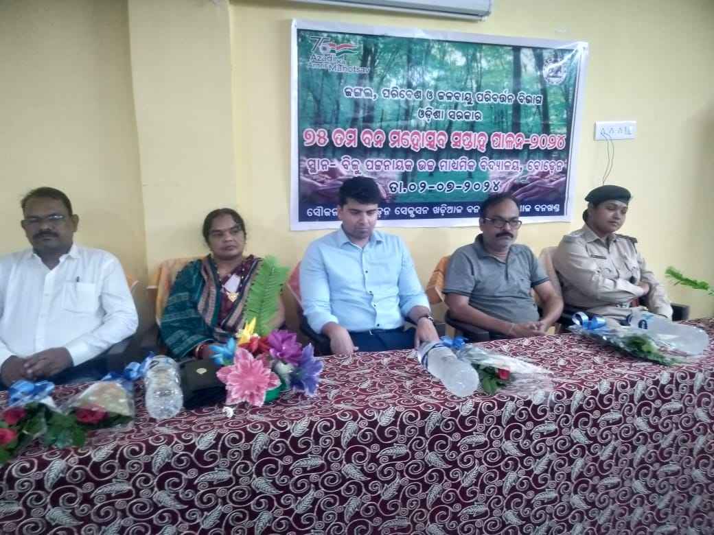ଜଙ୍ଗଲ ବୃଦ୍ଧି,ସନ୍ତୁଳିତ ପାଣିପାଗ ଓ ଉପଯୁକ୍ତ ଜଳବାୟୁ ନିମିତ୍ତ ବନମହୋତ୍ସବ ସହ ଜନସଚେତନତା ଅତ୍ୟନ୍ତ ଜରୁରୀ ।ତେଣୁ ଓଡ଼ିଶା ସରକାରଙ୍କ ଯୋଜନାନୁଯାୟୀ ବନମହୋତ୍ସବ ସପ୍ତାହ ପାଳନ ହେଉଥିବାବେଳେ ଆଜି ନୂଆପଡ଼ା ଜିଲ୍ଲା ବୋଡ଼େନ ବ୍ଳକ ସ୍ଥିତ ବିଜୁ ପଟ୍ଟନାୟକ ଉଚ୍ଚ ମାଧ୍ୟମିକ ବିଦ୍ୟାଳୟରେ ଖଡ଼ିଆଳ ବନଖଣ୍ଡ ଅଧିନରେ ଥିବା ବୋଡ଼େନ ସେକ୍ସନ ଦ୍ଵାରା ବିଦ୍ୟାଳୟରେ ଏକ୍ ପେଡ୍ ମାଁ କେ ନାମ୍ ଆଧାରରେ ବନମହୋତ୍ସବ ପାଳନ କାର୍ଯ୍ୟକ୍ରମର ସଭାରେ ଖରୀଆର ବନଖଣ୍ଡ ଅଧିକାରୀ ମହମ୍ମଦ ଅଜିଜ୍ ଖାନ (ଆଇ ଏଫ୍ ଏସ) ମୁଖ୍ୟ ଅତିଥି ଥିବା ବେଳେ ବୋଡ଼େନ ବି ଡି ଓ ପ୍ରିୟରଞ୍ଜନ କୁମାର ମୁଖ୍ୟ ବକ୍ତା , ବିଶିଷ୍ଟ ଅତିଥି ଭାବେ ବ୍ଲକ ଅଧ୍ୟକ୍ଷା ପ୍ରେମ ଶିଳା ନାଗ,ସମ୍ମାନିତ ଅତିଥି ରୂପେ ସ୍ଥାନୀୟ କଲେଜର ଅଧ୍ୟକ୍ଷ ହେମନ୍ତ କୁମାର ମୁଣ୍ଡ, ଖରୀଆର ରେଞ୍ଜର ସଂସ୍କୃତା ବଡ଼ନାୟକ,ଇଂରାଜୀ ଅଧ୍ୟାପକ ସାମୁଏଲ ଦାନି ମଞ୍ଚାସିନ ଥିଲେ ।