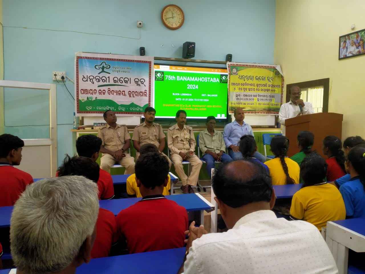 ପରେ ଲୋଇସିଂହା ବନାଞ୍ଚଳ ଅଧିକାରୀ ଶ୍ରୀ ପାଉଲ ହରପାଲ ତାଙ୍କ ବକ୍ତବ୍ୟ ରେ ଛାତ୍ରଛାତ୍ରୀ ମାନଙ୍କୁ ବୃକ୍ଷର ଆବଶ୍ୟକତା ତଥା ଜଳବାୟୁ ପରିବର୍ତ୍ତନ ,ମୃତ୍ତିକା ସଂରକ୍ଷଣ ,ପ୍ରାକୃତିକ ଦୁର୍ବିପାକ, ସୁସ୍ଥ ଓ ସ୍ୱଚ୍ଛ ପରିବେଶ, ଟାଙ୍ଗରା ଭୂମିରେ ବୃକ୍ଷ ରୋପଣ, ଆଜିକାର ଦିନରେ ବୃକ୍ଷରୋପଣ ସଠିକ ଭାବେ ନ ହେବାରୁ ସମାଜ ପ୍ରତି ଏହାର କୁ ପ୍ରଭାବ ପଡିବା ସହ ମଣିଷ କୁ ବିଭିନ୍ନ ସମସ୍ୟା ର ସମ୍ମୁଖୀନ ହେବାକୁ ପଡୁଛି l ଏହି ସମସ୍ୟା କୁ ଦୃଷ୍ଟି ଆଗରେ ରଖି ଯଶ୍ୱସୀ ପ୍ରଧାନମନ୍ତ୍ରୀ ମାଁ ପାଇଁ ଗଛଟିଏ ଲଗେଇବା ପାଇଁ ଜନସମାଜ କୁ ଆହ୍ବାନ ଦେଇଛନ୍ତି l ତେଣୁ ସମସ୍ତ ଛାତ୍ରଛାତ୍ରୀ ପ୍ରତିବର୍ଷ ଗୋଟାଏ ଲେଖାଏଁ ବୃକ୍ଷରୋପଣ କଲେ ଆମଦେଶ ସବୁଜିମା ଜଙ୍ଗଲମୟ ଦେଖାଯିବା ସହ ପରିବେଶ ର ସୁରକ୍ଷା ହୋଇପାରିବ ବୋଲି ପ୍ରକାଶ କରିଥିଲେ l ଶେଷରେ ବନବିଭାଗ ର ଅଧିକାରୀ, କର୍ମଚାରୀ ଏବଂ ବିଦ୍ୟାଳୟ ର ଅଧ୍ୟାପକ ଓ ଛାତ୍ରଛାତ୍ରୀ ମାନେ ସମସ୍ତେ ପରିବେଶ ର ସୁରକ୍ଷା ନିମନ୍ତେ ଗାଁ କୁ ଯାଇ ଗୋଟାଏ ଲେଖାଏଁ ବୃକ୍ଷ ଲଗାଇବା ପାଇଁ ଶପଥ ନେଇଥିଲେ