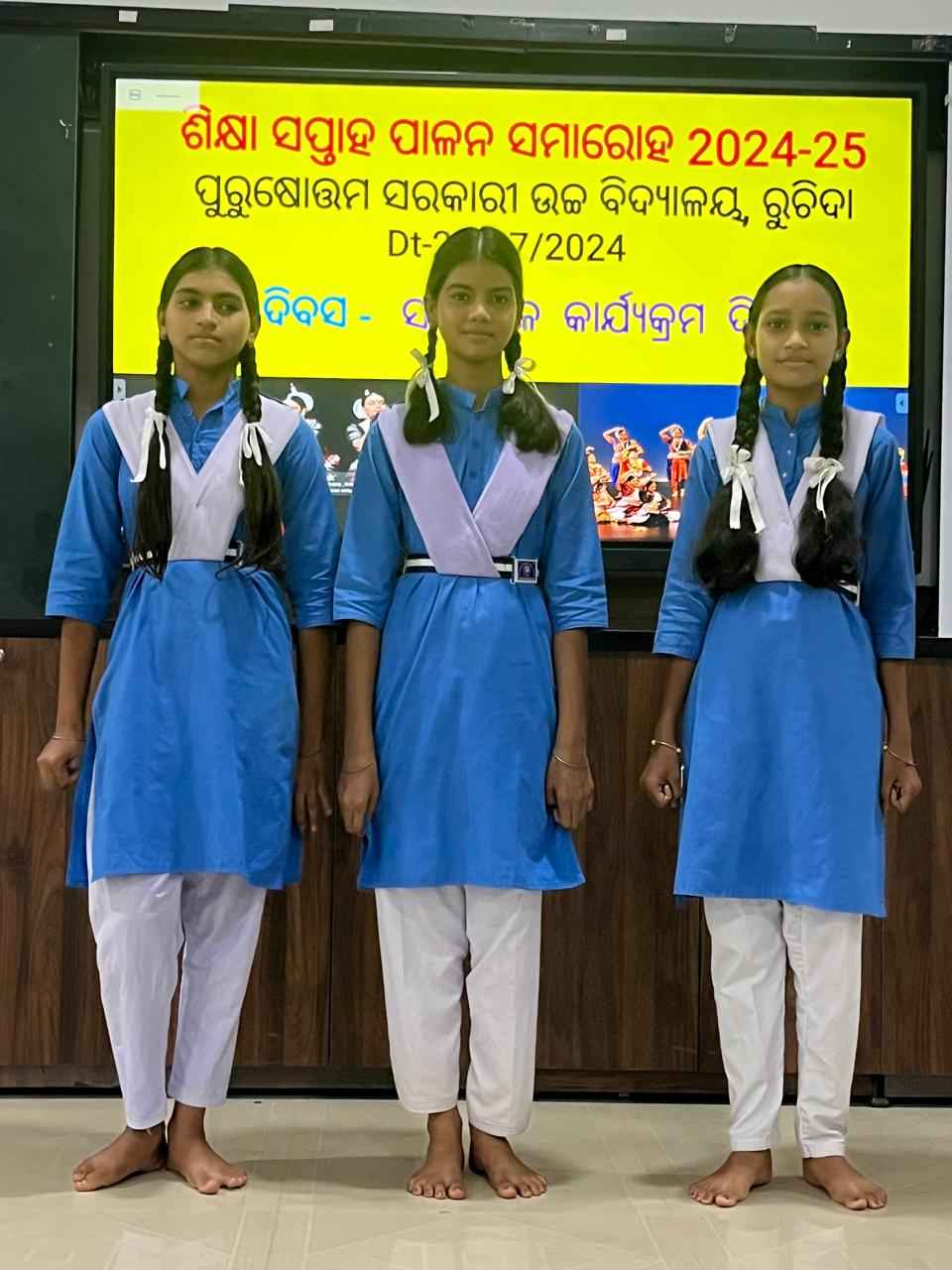 ବରଗଡ଼ (ପବିତ୍ର ମେହେର ): ବରଗଡ଼ ଜିଲ୍ଲା ଅମ୍ବାଭୋନା ବ୍ଲକ ଅନ୍ତର୍ଗତ ପୁରୁଷୋତ୍ତମ ସରକାରୀ ଉଚ୍ଚ ବିଦ୍ୟାଳୟ ରୁଚିଦାରେ ଶିକ୍ଷା ସପ୍ତାହ ପାଳନ ଅବସରରେ ସାଂସ୍କୃତିକ ଦିବସ ଅନୁଷ୍ଠିତ ହୋଇଯାଇଛି। ଏହି ଅବସରରେ ବିଦ୍ୟାଳୟର ପ୍ରଧାନ ଶିକ୍ଷକ ଅଜୟ ମେହେରଙ୍କ ପ୍ରତ୍ୟକ୍ଷ ତତ୍ତ୍ଵାବଧାନରେ ବିଦ୍ୟାଳୟ ପରିସରରେ ଛାତ୍ରଛାତ୍ରୀମାନେ ନୃତ୍ୟଗୀତ ଆଦି ସାଂସ୍କୃତିକ କାର୍ଯ୍ୟକ୍ରମ ପ୍ରଦର୍ଶନ କରିଥିଲେ।ମନୀଷା ମେହେର, ତ୍ରିବେଣୀ ଭୋଇ,ଧରିତ୍ରୀ ଭୋଇ, ମନ୍ଦାକିନୀ ଭୁଏ, ଭୋପେଶ ସାହୁ, ଅର୍ପିତା ମେହେର, ଜିତେଶ୍ୱରୀ ସୁନାଙ୍କ ଦ୍ବାରା ପ୍ରଦର୍ଶିତ ନୃତ୍ୟ ଓ ସଙ୍ଗୀତ ବେଶ୍ ଆକର୍ଷଣୀୟ ହୋଇଥିଲା।କାର୍ଯ୍ୟକ୍ରମ ପରିଚାଳନାରେ ଶିକ୍ଷକ ହରବଲ୍ଲଭ ପ୍ରଧାନ, ସୁବୋଧ ଭୋଇ, ପ୍ରଭାତ କୁମାର ନାୟକ, ବଳରାମ ରଣା, ତରଣୀସେନ୍ ପଧାନ ,ଶିକ୍ଷୟିତ୍ରୀ ରୀନା କୁମାରୀ ମେହେର,ମେନକା ସୁନା ଓ ତନୟା ଡନସନା,ସବିତା ଦେହେରୀ, ପୁଷ୍ପାଙ୍ଗିନୀ ଭୁଏ ଓ ବିନି ସାହୁ ସକ୍ରିୟ ସହଯୋଗ କରିଥିଲେ।