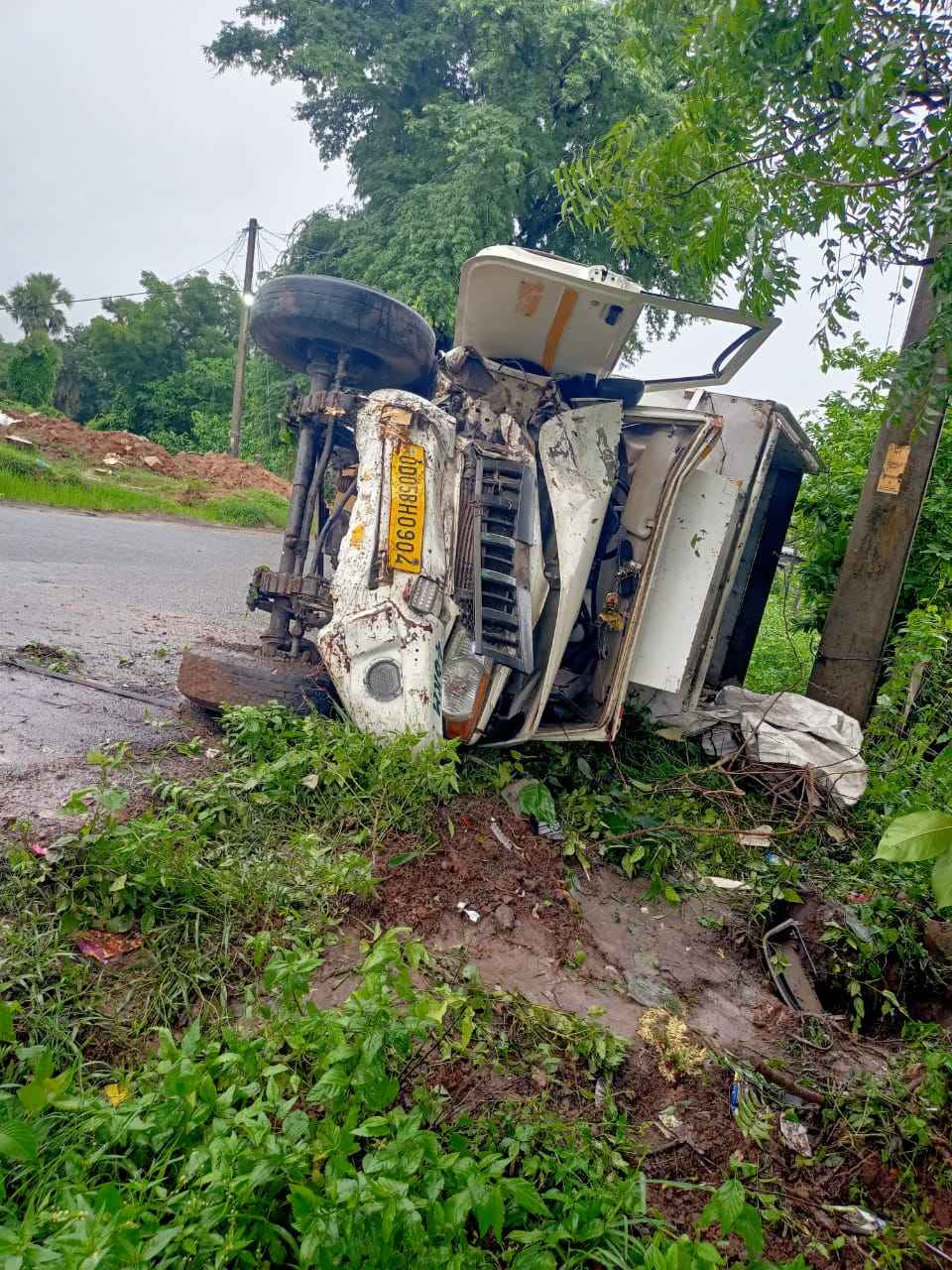 ନକଟିଦେଉଳ(କନ୍ଦର୍ପ ବେହେରା): ରାତି ଅଧରେ ପିକଅପ ଭ୍ୟାନ୍ ଗାଡ଼ିରେ କେନ୍ଦୁପତ୍ର ଚୋରା ଚାଲାଣ କରୁଥିବା ଖବର ପାଇ ବନ ବିଭାଗ ପିଛା କରିବାରୁ ଦ୍ରୁତ ଗତିରେ ପଳାଉ ଥିବା ଚୋରା କେନ୍ଦୁପତ୍ର ବୋଝେଇ ପିକଅପ ଭାରସାମ୍ୟ ହରାଇ ନାକଟିଦେଉଳ ଠାରେ ରାସ୍ତା ପାର୍ଶ୍ୱରେ ଥିବା ଏକ ଗଛରେ ଧକ୍କା ହୋଇ ରାସ୍ତା ଉପରେ ଓଲଟି ପଡ଼ିଥିଲା |