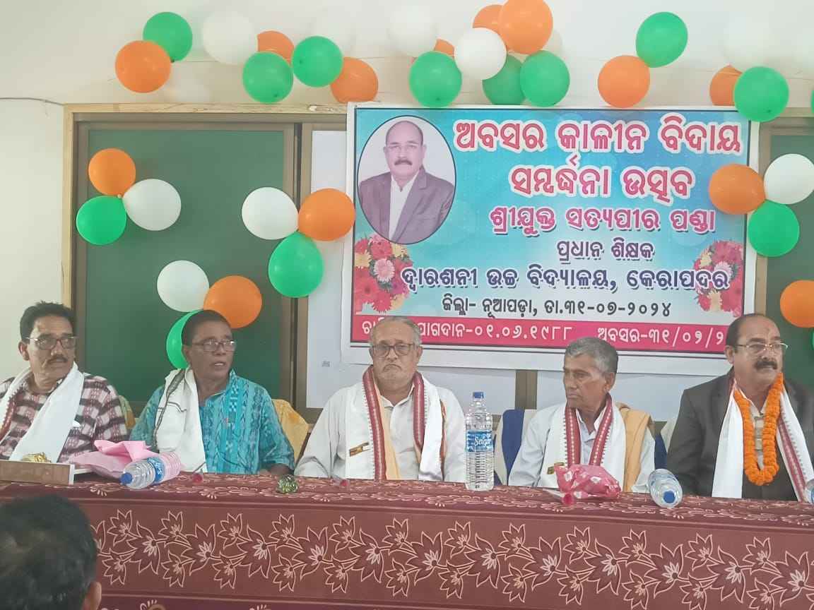 ନୂଆପଡ଼ା ଜିଲ୍ଲା ବୋଡ଼େନ ବ୍ଲକର କେରାପଦର ଗ୍ରାମରେ ତା ୨୪-୦୫-୧୯୮୮ ରେ ସ୍ଥାପିତ ହୋଇଥିଲା ଦ୍ୱାର୍ଶନି ହାଇ ସ୍କୁଲ ଆଉ ସେହି ସମୟରେ ବ୍ୟାଚଲର ଅଫ ଏଜୁକେଶନ ଡିଗ୍ରୀ ହାସଲ କରିଥିବା ଲୋକ ପରିଚିତ ଶ୍ରୀଯୁକ୍ତ ସତ୍ୟପିର ପଣ୍ଡାଙ୍କୁ ତା ୦୧-୦୬-୧୯୮୮ ଦିନ ଏହି ବିଦ୍ୟାଳୟର ପ୍ରଧାନ ଶିକ୍ଷକ ଦାୟୀତ୍ୱ ଅର୍ପଣ କରାଯାଇଥିଲା ।ଦୀର୍ଘ ୩୬ ବର୍ଷ ଶିକ୍ଷକତା ପରେ ଆଜି ସେ ଶିକ୍ଷା ବିଭାଗରୁ ଅବସର ଗ୍ରହଣ କରିଛନ୍ତି ।ଏହି ପରିପ୍ରେକ୍ଷୀରେ ଆୟୋଜିତ ସଭାରେ ନୂଆପଡ଼ା ଏ ଡି ଇ ଓ ସୁଧାଂଶୁ ଶେଖର ମିଶ୍ର ମୁଖ୍ୟ ଅତିଥି ରୂପେ ଅଳଙ୍କୃତ ହୋଇଥିବା ବେଳେ ସମ୍ମାନିତ ଅତିଥି ଭାବେ ବି ଇ ଓ ଋଦ୍ରେଶ୍ଵର ମେହେର,ଅବସରପ୍ରାପ୍ତ ବି ଇ ଓ ଇନ୍ଦ୍ର ମଣି ପାଣିଗ୍ରାହୀ ଓ ସରୋଜ କୁମାର ବେହେରା,ଅବସର ପ୍ରାପ୍ତ ଏ ବି ଇ ଓ ପ୍ରେମାନନ୍ଦ ନାଏକ, ଏ ବି ଇ ଓ ନେପାଲ ଚନ୍ଦ୍ର ଦେ ,ସ୍କୁଲ କମିଟି ସଭାପତି ଖଗେଶ୍ବର ମେହେର ଓ ଉପସଭାପତି ଅତିନ୍ଦ୍ର ଜିତ ସିଂ ମଲ୍ଲିକ,ଅବସରପ୍ରାପ୍ତ ପ୍ରଧାନ ଶିକ୍ଷକ ପ୍ରମୋଦ କୁମାର ଠାକୁର, ଟାନୱାଟ ହାଇ ସ୍କୁଲ ପ୍ରଧାନ ଶିକ୍ଷକ ବିନୋଦ କୁମାର ପାଢ଼ି ଏବଂ ଶିକ୍ଷାବିତ ଯୋଗେଶ୍ୱର ବୈଠାରୁ ମଞ୍ଚାସିନ ଥିଲେ ।