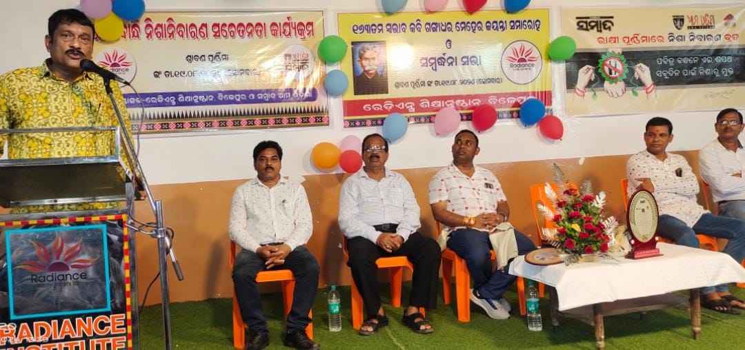 ବରଗଡ଼/ବିଜେପୁର:(ନିରଞ୍ଜନ ତ୍ରିପାଠୀ)-ବରଗଡ଼ ଜିଲ୍ଲା ବିଜେପୁର ସହର ସ୍ଥିତ ରେଡିଏନ୍ସ ଶିକ୍ଷାନୁଷ୍ଠାନରେ ଗଙ୍ଗାଧର ମେହେର ଜୟନ୍ତୀ ସମାରୋହ ଓ ସମ୍ବର୍ଦ୍ଧନା ସଭା ଅଧ୍ୟକ୍ଷ ପ୍ରଫେସର ଘନଶ୍ୟାମ ମେହେରଙ୍କ ଅଧ୍ୟକ୍ଷତାରେ ପାଳିତ ହୋଇଯାଇଛି । ପ୍ରଥମେ ସକାଳ ଆଠଟାରେ ରେଡିଏନ୍ସ ଅନୁଷ୍ଠାନ ଓ ଆମ ଓଡ଼ିଶା ସମ୍ବାଦ ବିଜେପୁର ର ମିଳିତ ଆନୁକୁଲ୍ୟରେ ରାକ୍ଷୀବାନ୍ଧି ନିଶା ନିବାରଣ ସଚେତନତା କାର୍ଯ୍ୟକ୍ରମ ଚେୟାରମେନ ଶ୍ରୀଯୁକ୍ତ ଅଜିତ କୁମାର ମେହେର ଓ ସମ୍ବାଦ ପ୍ରତିନିଧି ସୁନିଲ ମିଶ୍ର ଙ୍କ ତତ୍ଵାବଧାନରେ ଏହି ପଦଯାତ୍ରା ରେଡିଏନ୍ସଠାରୁ ପଡ଼ା ଛକ ପର୍ଯ୍ୟନ୍ତ ହୋଇଥିଲା। ଛାତ୍ରଛାତ୍ରୀଙ୍କ ମାନଙ୍କ ଦ୍ୱାରା ପଡ଼ାଛକ ଠାରେ ନିଆରା ରକ୍ଷାବନ୍ଧନ ଓ ନିଶା ନିବାରଣକୁ ନେଇ ଏକ ଛୋଟ ନାଟକ ପରିବେଷଣ କରିଥିଲେ। ଏହି ପଦଯାତ୍ରାରେ ରେଡିଏନ୍ସ ପରିବାର ଅଧ୍ୟକ୍ଷ ଶ୍ରୀଯୁକ୍ତ ଘନଶ୍ୟାମ ମେହେର, ଅନୁଷ୍ଠାନର ଏକାଡେମିକ୍ ଡାଇରେକ୍ଟର ଗୋବିନ୍ଦ ମେହେର, ଆଡମିନିଷ୍ଟ୍ରେଟିଭ୍ ଡାଇରେକ୍ଟର ନେତ୍ରମଣୀ ମେହେର, ଉପାଧ୍ୟକ୍ଷ ସଞ୍ଜୟ ବାରିକ,ସ୍କୁଲର ଅଧ୍ୟକ୍ଷା ଶ୍ରୀମତୀ ମୋହିନୀ ମେହେର,ସମସ୍ତ ଅଧ୍ୟାପକ ଅଧ୍ୟାପିକା, ଶିକ୍ଷକ ଶିକ୍ଷୟତ୍ରୀ, ଛାତ୍ର ଛାତ୍ରୀ ତଥା ଅନୁଷ୍ଠାନର ସମସ୍ତ କର୍ମଚାରି ଓ ଜନ ସାଧାରଣ ଉପସ୍ଥିତ ଥିଲେ।ପରବର୍ତ୍ତୀ ସମୟରେ ପ୍ରଥମ ପର୍ଯ୍ୟାୟରେ ରେଡିଏନ୍ସ ଅନୁଷ୍ଠାନରେ ଗଙ୍ଗାଧର ମେହେର ଜୟନ୍ତୀ ସମାରୋହ ଓ ସମ୍ବର୍ଦ୍ଧନା ସଭା ଅଧ୍ୟକ୍ଷ ପ୍ରଫେସର ଘନଶ୍ୟାମ ମେହେରଙ୍କ ଅଧ୍ୟକ୍ଷତାରେ ପାଳିତ ହୋଇଯାଇଛି । ଉକ୍ତ ସଭାରେ ଚେୟାରମେନ ଶ୍ରୀ ମେହେର, ସମ୍ମାନୀତ ଅତିଥି ସୁଶାନ୍ତ କୁମାର ମିଶ୍ର, ଖଗେଶ୍ୱର ସାହିତ୍ୟ ସଂସଦର ସଦସ୍ୟ ଶ୍ରୀଯୁକ୍ତ ମୋହନ ସିଂ କଣ୍ଢେଇ, ଅଶୋକ କୁମାର ପୂଜାରୀ,ଡାଇରେକ୍ଟର ଗୋବିନ୍ଦ ମେହେର, ମୁଖ୍ୟ ବକ୍ତା ଓଡ଼ିଆ ଅଧ୍ୟାପକ ଶ୍ରୀ ପ୍ରହଲ୍ଲାଦ ମେହେର, ମୁଖ୍ୟ ଅତିଥି ତହସିଲଦାର କର୍ଣ୍ଣ ସୁନା ମଞ୍ଚାଶୀନ ଥିଲେ। ଓଡିଆ ଅଧ୍ୟାପକ ପ୍ରଫୁଲ୍ଲ ପଧାନ ସଂଯୋଜକ ଥିବାବେଳେ ଉପାଧ୍ୟକ୍ଷ ଶ୍ରୀ ବାରିକ ଅତିଥି ପରିଚୟ ପ୍ରଦାନ କରିଥିଲେ। ଚେୟାରମେନ ଶ୍ରୀ ମେହେର ଗଙ୍ଗାଧର ମେହେରଙ୍କ ସାହିତ୍ୟରେ ଓଡ଼ିଆ ଅସ୍ମିତାର ଗୁରୁତ୍ଵକୁ କହିଥିବା ବେଳେ ମୁଖ୍ୟବକ୍ତା ଗଙ୍ଗଧରୀୟ କାବ୍ୟରେ ଥିବା ନୈତିକତାକୁ ଆଲୋକପାତ କରିଥିଲେ। ଅଧ୍ୟକ୍ଷ ପ୍ରଫେସର ମେହେର ଗଙ୍ଗାଧରଙ୍କ କାବ୍ୟ ପ୍ରକୃତି ଓ ବାସ୍ତବତାକୁ ନେଇ ଆଲୋଚନା କରିଥଲେ ଓ ମୁଖ୍ୟ ଅତିଥି ସୁନା ନିଶା ନିବାରଣ ଉପରେ ମତ ରଖିଥିଲେ।ଦ୍ବିତୀୟ ପର୍ଯ୍ୟାୟରେ ରେଡିଏନ୍ସ ଅନୁଷ୍ଠାନରେ ସମ୍ବର୍ଦ୍ଧନା ସଭା ଚେୟାରମେନ ମେହେରଙ୍କ ଅଧ୍ୟକ୍ଷତାରେ ଅନୁଷ୍ଠିତ ହୋଇଥିଲା। ଏହି ସଭାରେ ମୁଖ୍ୟ ଅତିଥି ବରଗଡ଼ ସାଂସଦ ଶ୍ରୀଯୁକ୍ତ ପ୍ରଦୀପ ପୁରୋହିତ ଥିବା ବେଳେ ଅଧ୍ୟକ୍ଷ ମେହେର,ଏକାଡେମିକ୍ ଡାଇରେକ୍ଟର ଗୋବିନ୍ଦ ମେହେର,ଆଡମିନିଷ୍ଟ୍ରେଟିଭ୍ ଡାଇରେକ୍ଟର ନେତ୍ରମଣୀ ମେହେର ମଞ୍ଚାଶୀନ ଥିବା ବେଳେ ସୁଶାନ୍ତ କୁମାର ମିଶ୍ର ଉଦ୍ଦେଶ୍ୟ ଜ୍ଞାପନ କରିଥିଲେ। ମୁଖ୍ୟ ଅତିଥି ସାଂସଦ ଶ୍ରୀଯୁକ୍ତ ପ୍ରଦୀପ ପୁରୋହିତ ରେଡିଏନ୍ସ ଅନୁଷ୍ଠାନ ପ୍ରକୃତି ବିହାର ଓ ଚେୟାରମେନ ମେହେରଙ୍କ ଅଭିଭାଷଣକୁ ପ୍ରଶଂସା କରିଥଲେ। ଜୀବନରେ କିଛି ଅସମ୍ଭବ ନୁହେଁ ବୋଲି ପ୍ରଧାମନ୍ତ୍ରୀ ମୋଦିଙ୍କ ଉଦାହରଣ ଦେଇଥିଲେ ତତ୍ ସଙ୍ଗେ ଗନ୍ଧମାର