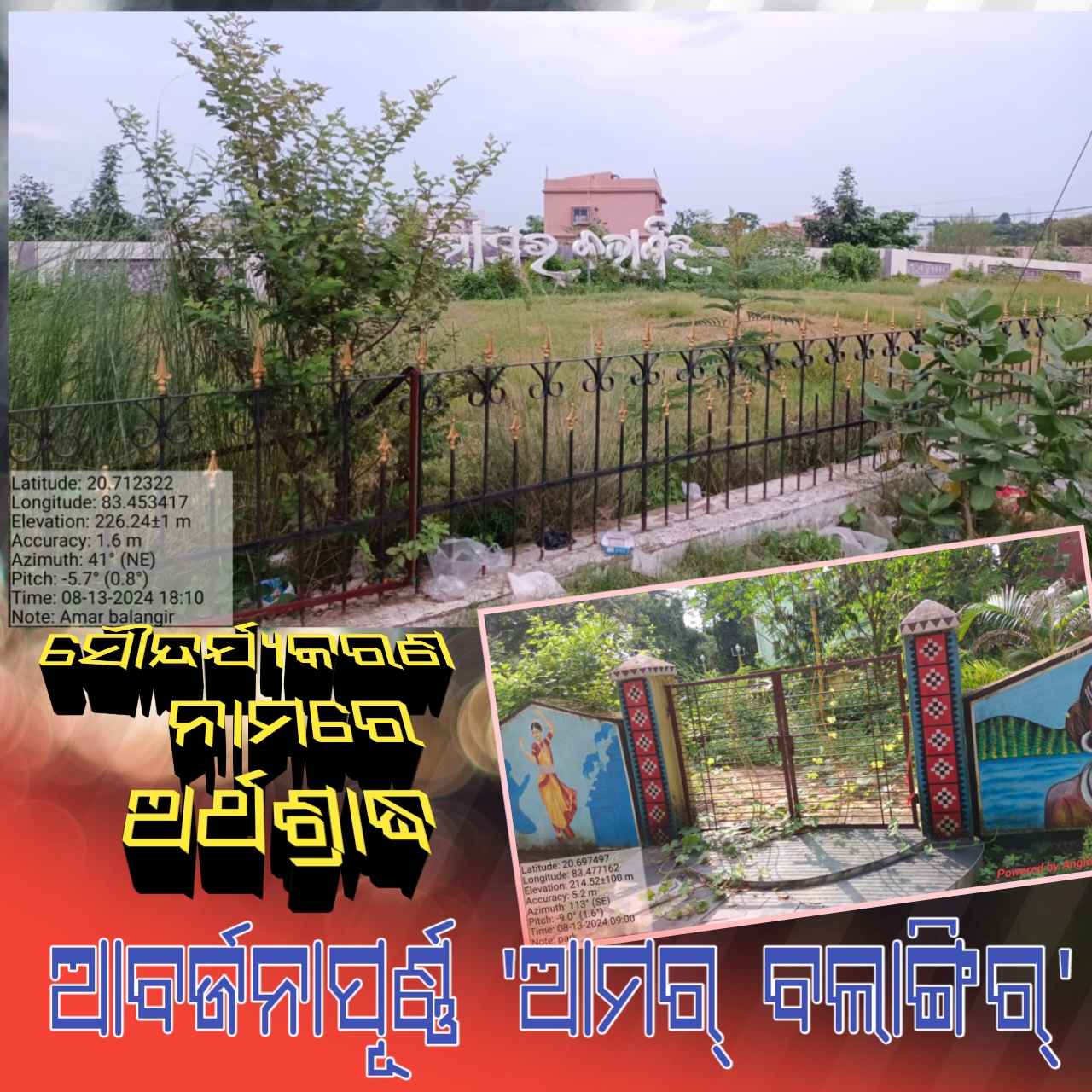 ପୂର୍ବ ସରକାର ସୌନ୍ଦର୍ଯ୍ୟକରଣ କରିବା ପାଇଁ ମୁଖ୍ୟମନ୍ତ୍ରୀ କର୍ମତତ୍ପର ଅଭିଯାନରେ ବଲାଙ୍ଗିର ପୌର ପରିଷଦକୁ କୋଟି କୋଟି ଟଙ୍କା ପ୍ରଦାନ କରିଛନ୍ତି I କିନ୍ତୁ ପୌର ପରିଷଦ ସୌନ୍ଦର୍ଯ୍ୟକରଣ ନାମରେ ବଲାଙ୍ଗିରକୁ ଅସୁନ୍ଦର କରିବାରେ ଲାଗିରହିଥିବା ଅଭିଯୋଗ ହେଉଛି I ଏହି ଯୋଜନାରେ ତିଆରି ହୋଇଥିବା ବିଭିନ୍ନ ସ୍ଥାନରେ କେତେକ ପାର୍କ ବର୍ତ୍ତମାନ ରକ୍ଷଣା ବେକ୍ଷଣା ଅଭାବରୁ ପରିତ୍ୟକ୍ତ ଅବସ୍ଥାରେ ପଡିରହିଛି I ଉଦାହରଣ ସ୍ବରୂପ ବଲାଙ୍ଗିର ଉପ ଜିଲ୍ଲାପାଳଙ୍କ କାର୍ଯ୍ୟାଳୟ ସମ୍ମୁଖରେ କିଛିମାସ ପୂର୍ବରୁ ଏକ ଛୋଟ ଜାଗାରେ ବସିବା ପାଇଁ କିଛି ବେଞ୍ଚ, କିଛି ଫୁଲଗଛ ଏବଂ ଚାରିପଟେ ବାଡଦେଇ ଏକ ସୁନ୍ଦର ବଗିଚା ତିଆରି ହୋଇଥିଲା, କିନ୍ତୁ ସେହି ବଗିଚାକୁ ଦେଖାରେଖା କରିବା ବା ଯତ୍ନ ନେବାପାଇଁ କେହି ନଥିବାରୁ ସେଠାରେ ଏବେ ଅନାବନା ଗଛ ସହ ଲଟା ବୁଦା ଚାରି ପଟେ ମାଡି ଗଲାଣି I ସେହି ବଗିଚାର ଗେଟ୍ ରେ ମଧ୍ୟ ଏକ ତାଲା ଝୁଲୁଥିବାର ଦେଖାଯାଉଛି I ସେହିପରି ବଲାଙ୍ଗିର ଭୀମଭୋଇ ମେଡିକାଲ କଲେଜ ମୁଖ୍ୟ ଗେଟ୍ ସମ୍ମୁଖରେ ଆମର ବଲାଙ୍ଗିର ନାମରେ ପୌର ପରିଷଦ ପକ୍ଷରୁ ତା.୨୦/୦୬/୨୦୨୧ ରେ ତତ୍କାଳୀନ ବିଧାୟକ ନରସିଂହ ମିଶ୍ର, ଜିଲ୍ଲାପାଳ ଚଞ୍ଚଳ ରାଣାଙ୍କ ଉଦଘାଟିତ ରାସ୍ତା କଡରେ ଏକ ଛୋଟିଆ ବଗିଚାର ଅବସ୍ଥା ମଧ୍ୟ ସମାନ ।ବଗିଚା ଭିତରେ ଅନା ବନା ଗଛ ଗୁଡିକ ବଡ ବଡ ହୋଇଗଲାଣି I ଏହା ଉପରେ ପୌରପରିଷଦର ଧ୍ୟାନ ଥିବାପରି ଜଣା ପଡୁନାହିଁ I ଏହିପରି ସହର ମଧ୍ୟରେ ଆଉ ଦୁଇ ତିନୋଟି ସ୍ଥାନରେ ସୌନ୍ଦର୍ଯ୍ୟକରଣ ନାମର ଲକ୍ଷାଧିକ ଟଙ୍କା ଖର୍ଚ୍ଚକରି ପାର୍କ ନିର୍ମାଣକରି ପୌରପରିଷଦ ଏହାର ରକ୍ଷଣାବେକ୍ଷଣ ଦିଗରେ ଆଉ ଧ୍ୟାନ ଦେଉନଥିବାରୁ ଲକ୍ଷାଧିକ ଟଙ୍କା ପାଣିରେ ପଡୁଛି I ସୌନ୍ଦର୍ଯ୍ୟକରଣ ନାମରେ ଲକ୍ଷାଧିକ ଟଙ୍କା ବାଟମାରଣା ହେଉଥିବା ଅଭିଯୋଗ ହେଉଛି I ଏଥି ପ୍ରତି ଜିଲ୍ଲାପାଳ ଧ୍ୟାନ ଦେବାପାଇଁ ଦାବି ହେଉଛି I