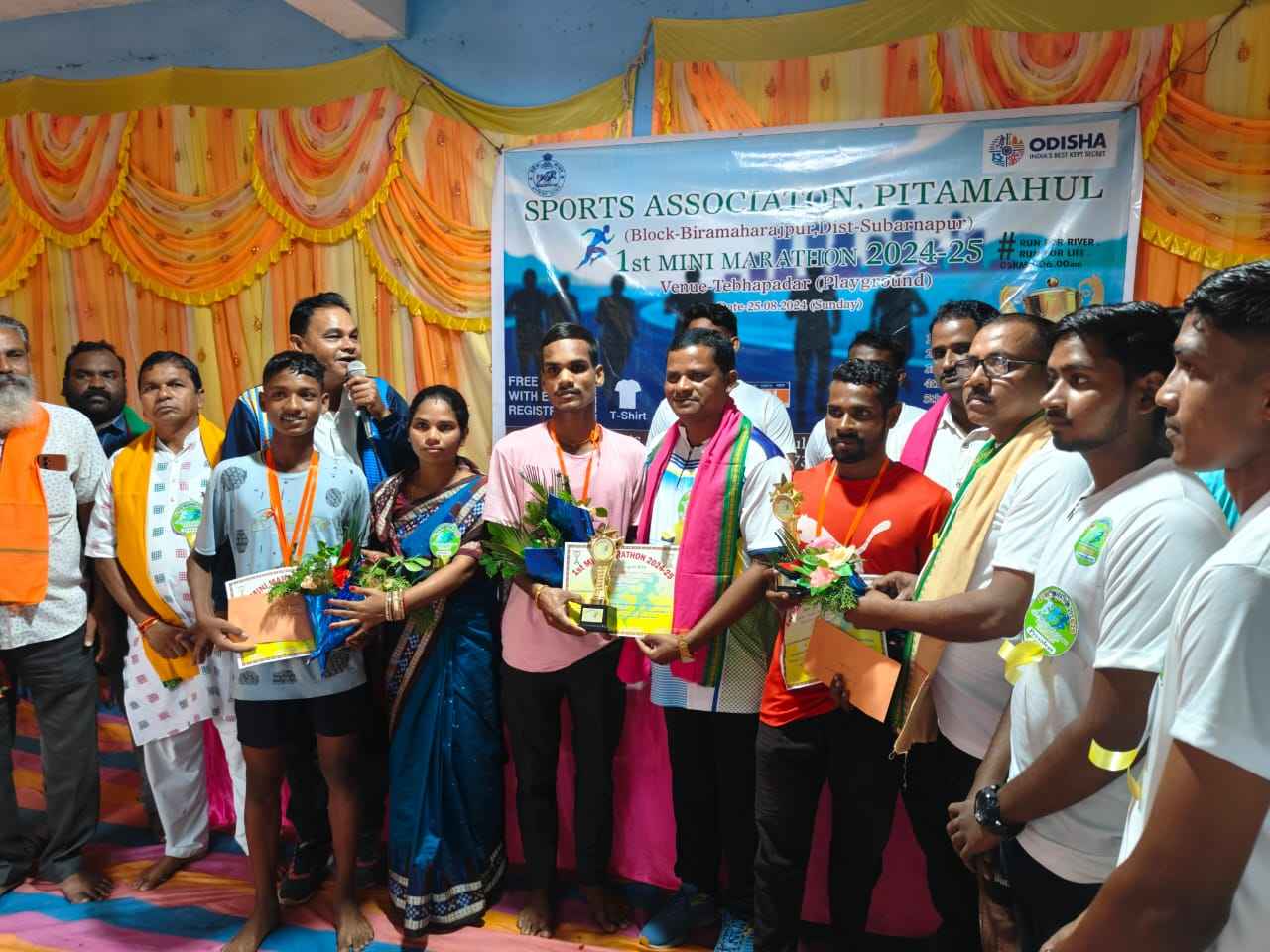 ବୀରମହାରାଜପୁର,( ବିନୋଦ ପାଣ୍ଡେ ): ସୁବର୍ଣ୍ଣପୁର ଜିଲ୍ଲା ବୀରମହାରାଜପୁର ବ୍ଲକ ଅନ୍ତର୍ଗତ ପିତାମହୁଲ ସ୍ପୋର୍ଟ୍ସ ଆସୋସିଏସନ୍ ଆନୁକୂଲ୍ୟରେ ରବିବାର ପ୍ରଥମ ମିନିମାରାଥନ ଅନୁଷ୍ଠିତ ହୋଇଥିଲା। ସେଥିର ୪୦ ଜଣ ବିଭିନ୍ନ ଜିଲ୍ଲାରୁ ଭାଗ ନେଇଥିଲେ। ଏଥିରେ ଗଞ୍ଜାମ ଜିଲ୍ଲାର ସରୋଜ ବେହେରା ପ୍ରଥମ ସ୍ଥାନ, ସମ୍ବଲପୁର ଜିଲ୍ଲାର ଆକାଶ ମିର୍ଦ୍ଧା ଦ୍ବିତୀୟ ସ୍ଥାନ, ସୋନପୁର ଜିଲ୍ଲାର ଜୁଣେଶ ନନ୍ଦ ତୃତୀୟ ସ୍ଥାନ, କଲାହାଣ୍ଡି ଜିଲ୍ଲାର ନେତ୍ରାନନ୍ଦ ସବର ଚତୁର୍ଥ ସ୍ଥାନ, ବୌଦ୍ଧ ଜିଲ୍ଲାର ରିଙ୍କୁ ବିଶୋଇ ପଞ୍ଚମ ସ୍ଥାନ ଅଧିକାର କରିଥିଲେ। ଏହି ଅବସର ସ୍ଥାନୀୟ ବ୍ଳକ ଉପାଧ୍ୟକ୍ଷ ନାରାୟଣ ଲୁହା ମୁଖ୍ୟ ଅତିଥି ଭାବେ ଯୋଗଦେଇ ଥିବା ବେଳେ ସୁବଳୟା ଥାନା ଅଧିକାରୀ ସୁଶାନ୍ତ କୁମାର ପଧାନ, ପିତାମହୁଳ ସରପଞ୍ଚ ଆକସ୍ମିତା ବଢିଆ ସମ୍ମାନିତ ଅତିଥି ଭାବେ ଯୋଗଦେଇ। ମଧୁସୂଦନ ପଣ୍ଡା ,ଶ୍ରୀକାନ୍ତ କର୍ମୀ, ଦିବ୍ୟଲୋଚନ ଗଡୁଆ ,କୁଶଧର ମହାକୁର, ଭୀଷ୍ମ ଦନ୍ତା, ଶରତ କୁମାର ତାଣ୍ଡିଆ, ମହେନ୍ଦ୍ର ମହାଲିକ, ବିଶ୍ଵନାଥ ତାଣ୍ଡିଆ, ପ୍ରଦୀପ ବଢିଆ ପ୍ରମୁଖ ଅତିଥି ଭାବେ ଯୋଗଦେଇ ଥିଲେ। ଏହି କାର୍ଯ୍ୟକ୍ରମ ରେ ବିଭିନ୍ନ ବିଦ୍ୟାଳୟ ର ଖେଳ ଶିକ୍ଷକ ଶ୍ରୀକାନ୍ତ ନାଏକ, ବିପ୍ର ଚରଣ ପେରା ଓ ବୁଲୁ ଚାନ୍ଦ ଏହି ମାରାଥନ ଦୌଡ଼ ରେ ଜେଆରସି ପରାମର୍ଶ ଦାତା ଚନ୍ଦ୍ରମଣି ବାଘ ସହଯୋଗ କରିବା ସହିତ ପୁରସ୍କାର ବିତରଣ ସଭାରେ ସଂଯୋଜନl କରିଥିଲେ। ଏହି କାର୍ଯ୍ୟକ୍ରମ ରେ ପିତାମହୁଲ ସ୍ପୋର୍ଟ୍ସ ଆସୋସିଏସନ୍ ର ସଭାପତି ମୀନକେତନ ଗଡୁଆ , ସଂପାଦକ ମିଳନ ଗର୍ଡିଆ ,ପ୍ରଦୀପ ତାଣ୍ଡିଆ ,ଅଭିଳାଷ ପଣ୍ଡା ,ରୁଦ୍ର ମହାକୁର ,ଆଶିଷ ଖେତୀ, ଘନଶ୍ୟାମ କର୍ମୀ ,ଆର୍ତ୍ତ ତ୍ରାଣ ମାଝୀ, ସିପୁନ ରାଉଳ, ଭଜମନ କଅଁର, ସୁମନ ମଳିକ, ହେମନ୍ତ ସେଠି, ରଞ୍ଜିତ ତାଣ୍ଡିଆ ସହଯୋଗ କରିଥିଲେ।