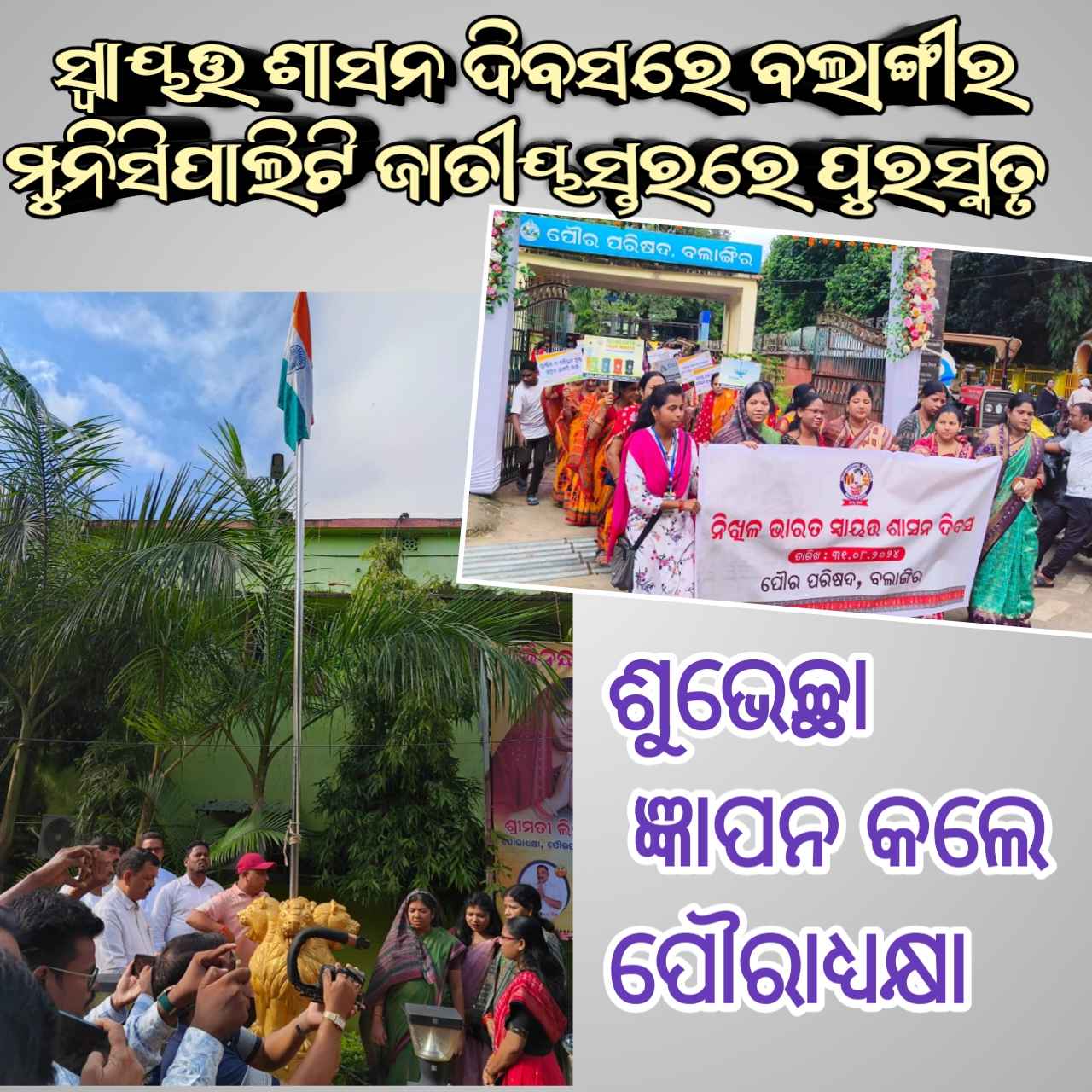 ବଲାଙ୍ଗୀର(ପ୍ରେରଣା ଖବର): ଆଜି ହେଉଛି ନିଖିଳ ଭାରତ ସ୍ୱାୟତ୍ତ ଶାସନ ଦିବସ । ବଲାଙ୍ଗିର ମ୍ୟୁନିସିପାଲଟି କାର୍ଯ୍ୟାଳୟ ଠାରେ ସ୍ୱାୟତ୍ତ ଶାସନ ଦିବସ ପାଳିତ ହୋଇ ଯାଇଛି । ଏହି ଅବସରରେ ଜାତୀୟ ପତାକା ଉତ୍ତୋଳନ କରଯାଇଥିଲା । ପୌରଧ୍ୟକ୍ଷା ଲିକା ସାହୁ ମୁଖ୍ୟ ଅତିଥି ଭାବରେ ଯୋଗଦେଇ ପତାକା ଉତ୍ତୋଳନ କରିଥିଲେ । ବଲାଙ୍ଗିର ସହରକୁ ସ୍ୱଚ୍ଛ, ନିର୍ମଳ କରିବା ସହିତ ଉନ୍ନତି ପଥରେ ଆଗେଇ ନେବାକୁ ସମସ୍ତେ ଶପଥ ନେଇଥିଲେ । ବଲାଙ୍ଗିର ମ୍ୟୁନିସିପାଲଟିକୁ 'ପିଏମ ସେବା ନିଧି ସମ୍ମାନ' ମିଳିଥିବାରୁ ସମସ୍ତଙ୍କୁ ଶୁଭେଚ୍ଛା ଜଣାଇବା ସହିତ ଆଗାମୀ ଦିନରେ ମଧ୍ୟ ଏଭଳି ସମସ୍ତେ ମିଳିମିଶି କାମ କରିବାକୁ ଆହ୍ବାନ କରିଥିଲେ । ପରେ ପରେ ମ୍ୟୁନିସିପାଲଟି କାର୍ଯ୍ୟାଳୟରୁ ଏକ ସଚେତନତା ଶୋଭାଯାତ୍ରା ବାହାରି ସହର ପରିକ୍ରମା କରିଥିଲା । ମ୍ୟୁନିସିପାଲଟି କାର୍ଯ୍ୟନିର୍ବାହୀ ଅଧିକାରୀ, ଉପପୌରଧ୍ୟକ୍ଷା ଗାୟତ୍ରୀ ଭୋଇ, ସମସ୍ତ ନିର୍ବାଚିତ କାଉନସିଲର, ମ୍ୟୁନିସିପାଲଟିର ଅନ୍ୟ ଅଧିକାରୀ, କର୍ମଚାରୀ ମାନେ ଶୋଭାଯାତ୍ରାରେ ସାମିଲ ହୋଇଥିଲେ। ସହରକୁ ସ୍ୱଚ୍ଛ ଓ ସୁନ୍ଦର ରଖିବାକୁ ସଚେତନତା ବାର୍ତ୍ତା ଦିଆଯାଇଥିଲା। ସେହିଭଳି ବଲାଙ୍ଗିର ଜିଲ୍ଲାପାଳଙ୍କ କାର୍ଯ୍ୟାଳୟ ଠାରେ ଥିବା ଓସ୍ୱାନ ହଲ ଠାରେ ଏକ ବୈଠକର ଆୟୋଜନ ହୋଇଥିଲା । ଏଥିରେ ଆଭାସୀ ମାଧ୍ୟମରେ ଓଡ଼ିଶାର ମୁଖ୍ୟମନ୍ତ୍ରୀ ମୋହନ ମାଝୀ ଯୋଗଦେଇଥିଲେ। ବଲାଙ୍ଗିର ମ୍ୟୁନିସିପାଲଟି ପିଏମ ସେବା ନିଧି ସମ୍ମାନ ପାଇଥିବାରୁ ସେମାନଙ୍କୁ ଶୁଭେଚ୍ଛା ଓ ଅଭିନନ୍ଦନ ଜଣାଇଥିଲେ । ଆଗାମୀ ଦିନରେ ମଧ୍ୟ ସମସ୍ତେ ମିଳିମିଶି କାମ କରିବାକୁ ଆହ୍ବାନ କରିଥିଲେ। ସ୍ୱାୟତ୍ତ ଶାସନ ଅବସରରେ ଟାଉନ ବାଳକ ଉଚ୍ଚବିଦ୍ୟାଳୟ ଖେଳ ପଡ଼ିଆରେ ମ୍ୟୁନିସିପାଲଟି କର୍ମଚାରୀଙ୍କ ମଧ୍ୟରେ ଏକ ବନ୍ଧୁତ୍ବପୂର୍ଣ୍ଣ କ୍ରିକେଟ ମ୍ୟାଚ୍ ଅନୁଷ୍ଠିତ ହୋଇଥିଲା ।