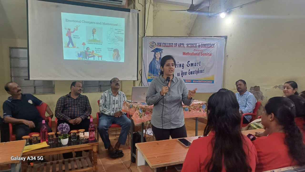 ବାଲାଙ୍ଗୀର(ପ୍ରେରଣା ଖବର): ଜେଏସଏମ କଲେଜ ଅଫ୍ ଆର୍ଟ,ସାଇନ୍ସ ଏବଂ ବାଣିଜ୍ୟ ଠାରେ "ସ୍ମାର୍ଟଫୋନ୍ ପରି ସ୍ମାର୍ଟ ହେବା"ପ୍ରସଙ୍ଗ ଉପରେ ଛାତ୍ର ଛାତ୍ରୀ ଏବଂ ଅଧ୍ୟାପିକାଙ୍କୁ ନେଇ ଏକ ଅନ୍ତର୍ନିହିତ ସେମିନାର ଆୟୋଜନ କରାଯାଇ ବ୍ୟକ୍ତିଗତ ବିକାଶ ପ୍ରତି ଛାତ୍ର ଛାତ୍ରୀ ଏବଂ ଅଧ୍ୟାପିକାଙ୍କୁ ଉତ୍ସାହ ପ୍ରଦାନ କରାଯାଇଥିଲା।ଏହି କାର୍ଯ୍ୟକ୍ରମରେ କୁମାରୀ ନିହାରିକା ସିଙ୍ଗି ସମ୍ମନିତା ବକ୍ତା ତଥା ମୁଖ୍ୟ ଅତିଥି ଭାବରେ ଯୋଗ ଦେଇଥିଲେ।କଲେଜର ପ୍ରଧାନ ଶିକ୍ଷକ ଡ. ଦିବ୍ୟ କିଶୋର ପ୍ରଧାନ, ନିର୍ଦ୍ଦେଶକ ଶ୍ରୀ ପିତବାସ ପଣ୍ଡା ଓ ମୁଖ୍ୟ ଉପଦେଷ୍ଟା ମନରଞ୍ଜନ ସହୁ ଉପସ୍ଥିତ ରହି ବିଷୟ ଉପରେ ସମ୍ୟକ୍ ଧାରଣା ଦେଇଥିଲେ। ଜୀବନଶୈଳୀ ପରିଚାଳନା ଏବଂ ଉତ୍ପାଦକତା ବୃଦ୍ଧିରେ ପାରଦର୍ଶୀତା ପାଇଁ ଜଣାଶୁଣା କୁମାରୀ ସିଙ୍ଗି ଆଧୁନିକ ସ୍ମାର୍ଟଫୋନ୍ ତୁଳନାରେ ଦକ୍ଷତା ଏବଂ ବୁଦ୍ଧି ସ୍ତର ହାସଲ କରିବାକୁ ଛାତ୍ର ଛାତ୍ରୀ ତଥା ଶିକ୍ଷକ ଶିକ୍ଷ୍ୟୟତ୍ରୀମାନେ କିପରି ନିଜ ଜୀବନକୁ ଯଥାସମ୍ଭବ ସିଦ୍ଧ, ପ୍ରଭାବଶାଳୀ ଓ କାର୍ଯ୍ୟକ୍ଷମ କରିପାରିବେ ସେ ସମ୍ବନ୍ଧରେ ଏକ ଉତ୍ସାହଜନକ ବକ୍ତବ୍ୟ ଉପସ୍ଥାପନ କରିଥିଲେ। ତାଙ୍କ ବାର୍ତ୍ତାରେ ଏକ ସନ୍ତୁଳିତ ଜୀବନଶୈଳୀ ଗ୍ରହଣ କରିବା ଏବଂ ବ୍ୟକ୍ତିଗତ ତଥା ବୃତ୍ତିଗତ ଅଭିବୃଦ୍ଧି ପାଇଁ ଉତ୍ପାଦନକାରୀ ଅଭ୍ୟାସ ଗଠନ କରିବା ଉପରେ ଗୁରୁତ୍ୱାରୋପ କରିଥିଲେ ଯାହାକି ଅନେକଙ୍କୁ ଉତ୍ସାହ ପ୍ରଦାନ କରିଥିଲା।
