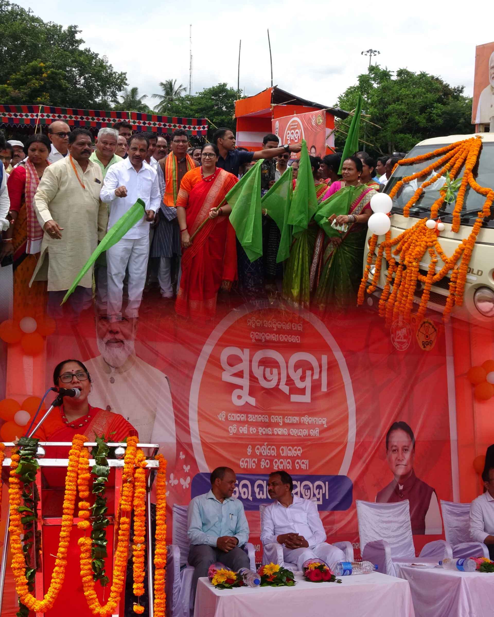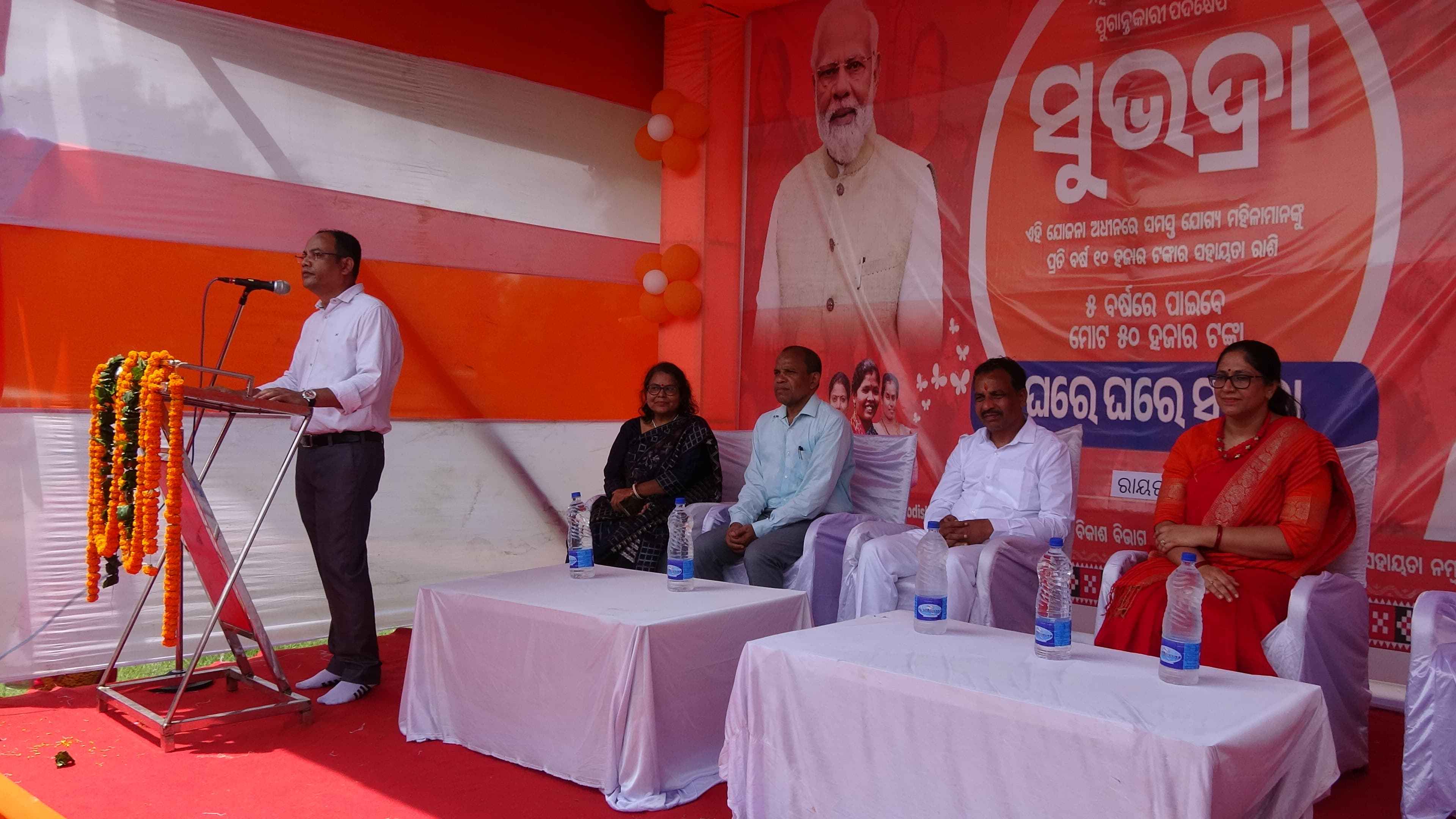 ରାୟଗଡ(ସୁପ୍ରିୟା ଷଡଙ୍ଗୀ): ଆଜି ମାନ୍ୟବର ବାଣିଜ୍ୟ ଓ ପରିବହନ ଏବଂ ଇସ୍ପାତ ଓ ଖଣୀ ମନ୍ତ୍ରୀ ଶ୍ରୀଯୁକ୍ତ ବିଭୁତି ଭୂଷଣ ଜେନା ରାୟଗଡା ଜିଲ୍ଲା ଗସ୍ତ କରି ଆଜି ସ୍ଥାନୀୟ ଗୋବିନ୍ଦ ଚନ୍ଦ୍ର ଉଚ୍ଚ ବିଦ୍ୟାଳୟ ପଡ଼ିଆ ଠାରେ ସୁଭଦ୍ରା ରଥକୁ ଶୁଭାରମ୍ଭ କରିବା ସହିତ ମହିଳା ମାନଙ୍କୁ ସମ୍ବୋଦିତ କରିଥିଲେ l ଏହି କାର୍ଯ୍ୟକ୍ରମରେ ଜିଲ୍ଲାପାଳ ପାରୁଲ ପତାୱରୀ, ଅତିରିକ୍ତ ଜିଲ୍ଲାପାଳ ଭାସ୍କର ରଇତ, ଜିଲ୍ଲା ମୁଖ୍ୟ ବିକାଶ ଅଧିକାରୀ ନିହାର ରଞ୍ଜନ କହଁର, ଏବଂ ଉପଜିଲ୍ଲାପାଳ ରୟାଗଡ଼ ଶ୍ରୀମତୀ କଲ୍ୟାଣୀ ସଂଘମିତ୍ରl ଦେଵୀ ଉପସ୍ଥିତରେ ପ୍ରଚାର ପତ୍ର ଉନ୍ମୋଚନ କରିବା ସହିତ ହିତାଧିକାରୀଙ୍କୁ ସ୍ୱୀକାରକ୍ତି ପ୍ରଦାନ କରିଥିଲେ l ଜିଲ୍ଲାରେ ୬ଗୋଟି ରଥକୁ ଆଜି ମାନ୍ୟବର ମନ୍ତ୍ରୀ ଶ୍ରୀ ଜେନା ପତାକା ଦେଖାଇ ଶୁଭାରମ୍ଭ କରିଛନ୍ତି l ପ୍ରତ୍ୟେକ ରଥ ଦୁଇଟି ବ୍ଲକ ଆଜିଠାରୁ ପରୀକ୍ରମା କରିବ ଏବଂ ବ୍ଲକର ବିଭିନ୍ନ ଗ୍ରାମ ପଂଚାୟତ ର ପ୍ରତ୍ୟେକ ଗ୍ରାମକୁ ଯାଇ ସୁଭଦ୍ରା ଯୋଜନା ବିଷୟରେ ଲୋକଙ୍କୁ ସଚେତନତା କରିବ l ନୂତନ ସରକାର ସୁଭଦ୍ରା ଯୋଜନାକୁ କାର୍ଯ୍ୟକାରିବାକୁ ଯାଇ ଆଜି ଠାରୁ ସଚେତନ ବାର୍ତ୍ତା ପ୍ରଚାର କରାଯିବ l ଏହି ରଥ