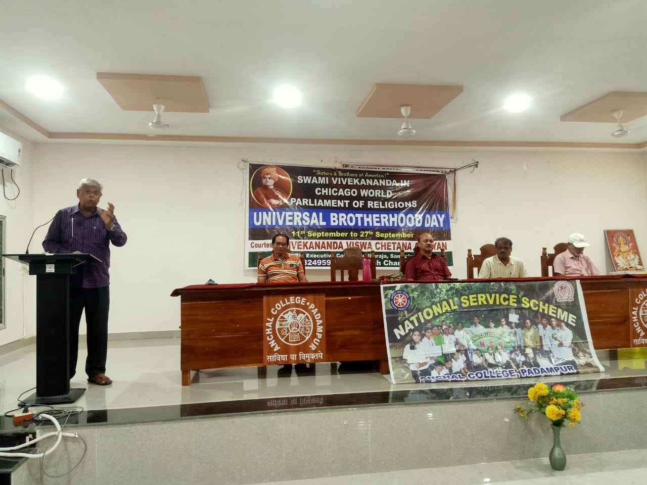 ବରଗଡ଼:(ନିରଞ୍ଜନ ତ୍ରିପାଠୀ)-ବରଗଡ ଜିଲ୍ଲା ଅଞ୍ଚଳ ମହାବିଦ୍ୟାଳୟ ପଦ୍ମପୁର ସ୍ଥିତ ସମ୍ମିଳନୀ କକ୍ଷରେ ଅଧ୍ୟକ୍ଷ ଲଳିତ ମୋହନ ପଣ୍ଡାଙ୍କ ସଭାପତିତ୍ବରେ ବିଶ୍ଵ ଭାତୃତ୍ବ ଦିବସ ଉପରେ ଏକ ଆଲୋଚନାଚକ୍ର ଅନୁଷ୍ଠିତ ହୋଇଅଛି। ଏହି କାର୍ଯ୍ୟକ୍ରମରେ ଶ୍ରୀ ପଣ୍ଡା ସଭାର ଉଦ୍ଦେଶ୍ୟ ଜ୍ଞାପନ ସହିତ ଅତିଥି ପରିଚୟ ପ୍ରଦାନ କରିଥିଲେ। ଏହା ପରେ ମୁଖ୍ୟ ଅତିଥି ଉମେଶ ଚନ୍ଦ୍ର ପଣ୍ଡା ନିଜ ଅଭିଭାଷଣରେ ଭାଗବତ ଗୀତାର ଶ୍ଲୋକ, ବେଦାନ୍ତ, କର୍ମ ,ଧର୍ମ,ଜ୍ଞାନ, ଭକ୍ତି ଯୋଗ ଇତ୍ୟାଦି ଉପରେ ଉଦାହରଣ ଦେଇ କିପରି ଗୋଟିଏ ଶିଶୁ ନିଜ ପାଖରେ ଥିବା ଅନ୍ତର୍ନିହିତ ଗୁଣ ଗୁଡ଼ିକ ଚିହ୍ନି ପାରିବ ସେହି ଦିଗରେ ମାର୍ଗଦର୍ଶନ କରିଥିଲେ। ସେ ନିଜ ବକ୍ତବ୍ୟରେ ସ୍ଵାମୀ ବିବେକାନନ୍ଦ ଏବଂ ଶଙ୍କରାଚାର୍ଯ୍ୟଙ୍କ ନୀତିବାଣୀ ଉପରେ ମଧ୍ୟ ପରିଚର୍ଚ୍ଚା କରିଥିଲେ। ଏହା ପରେ କଲେଜର ଇଂରାଜୀ ପ୍ରାଧ୍ୟାପକ ଖଗେଶ୍ବର ଦାଶ ନିଜ ଅଭିଭାଷଣରେ ବିବେକାନନ୍ଦଙ୍କ କେତେକ ସ୍ମରଣୀୟ କୃତିତ୍ୱ ଉପରେ ଆଲୋକପାତ କରିଥିଲେ। ଶେଷରେ ଆଇ.କ୍ୟୁ.ଏ.ସି. ର ସଂଯୋଜକ ନବକୃଷ୍ଣ ମିଶ୍ର ଧନ୍ୟବାଦ ଅର୍ପଣ କରିଥିଲେ। ଏହି ସଭାର ସଂଯୋଜନା କରିଥିଲେ ଓଡ଼ିଆ ବିଭାଗର ମୁଖ୍ୟ ଡଃ ସରୋଜ କୁମାର ନାଏକ। ଏହି ସଭାରେ ଡଃ ତୁଷାର କାନ୍ତ ସାହୁ, ଡଃ ପ୍ରଦୀପ କୁମାର ପଣ୍ଡା, ସଞ୍ଜୟ ତିଗା, ଭୁବନେଶ୍ଵର ବରିହା, ପ୍ରଶାନ୍ତ ସିଦାର, ଡ.ଭେଙ୍କଟେଶ୍ ମେହେର, ବାଲଗୋପାଳ ମେହେର, ଅନନ୍ତ ମଲ୍ଲିକ,ଶ୍ରୀମତୀ ଶର୍ମିଲା ପଣ୍ଡା, ଶ୍ରୀମତୀ ମୋନାଲିସା ସ୍ୱାଇଁ, ଡଃ ମମତମୟୀ ଗୁରୁ, ସୁରେଶ୍ୱରୀ ପାଣ୍ଡେ, ସସ୍ମିତା ମେହେରଙ୍କ ସମେତ ସମସ୍ତ ଅଧ୍ୟାପକ ଅଧ୍ୟାପିକା, କର୍ମଚାରୀ ଓ ଛାତ୍ରଛାତ୍ରୀ ଉପସ୍ଥିତ ଥିଲେ।