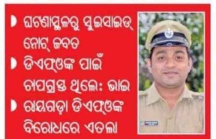 ରାୟଗଡା(ସୁପ୍ରିୟା ଷଡଙ୍ଗୀ): ରାୟଗଡା ବନତତ୍ୱ ବନଖଣ୍ଡ ଡିଭିଜନ ଅଧୀନରେ ରାୟଗଡା, କଳାହାଣ୍ଡି, କୋରାପୁଟ ଓ ବାଳଙ୍ଗୀର ଅଧୀନରେ, ୪ଗୋଟି ଜ଼ିଲ୍ଲା ଆସୁଅଛି l ବନତତ୍ୱ ବନଖଣ୍ଡ ରାୟଗଡା ଡିଭିଜନ ଦ୍ୱାରା ପରିଚାଳିତ କଳାହାଣ୍ଡି ଜ଼ିଲ୍ଲା ର ଜାରିଙ୍ଗ ହାଇଟେକ ନର୍ସରୀ ରିସର୍ଚ୍ଚସେଣ୍ଟର ରେ କାର୍ଯ୍ୟରତ ଫୋରେଷ୍ଟର ସଂଜୟ ନାୟକ (୩୩) ଆତ୍ମହତ୍ୟା କରିଥିବାର ଜଣାପଡିଛି l ଗତ ବୁଧୁବାର ଦିନ ଭବାନୀପାଟଣା ଫୋରେଷ୍ଟ କଲୋନୀ ର କ୍ଵାଟର୍ସ ରୁ ସଞ୍ଜୟ ନାୟକ ଙ୍କ ଝୁଲନ୍ତା ଅବସ୍ଥାରେ ମୃତଦେହ ଉଦ୍ଧାର କରାଯାଇଛି l ବାରମ୍ବାର ପିସି ନିମନ୍ତେ ରାୟଗଡା ଡ଼ିଏଫଓ ଚାପ ପକାଇବାରୁ ସେ ଆତ୍ମହତ୍ୟା କରିଥିବା ପରିବାର ପକ୍ଷରୁ ଅଭିଯୋଗ ହୋଇଛି l ଏହି ସଂକ୍ରାନ୍ତ ରେ ମୃତ ସଂଜୟଙ୍କ ଭାଇ ରବିନାରାୟଣ ନାୟକ ଥାନାରେ ଲିଖିତ ଅଭିଯୋଗ କରିଛନ୍ତି l ଟାଉନ ଥାନା ପୋଲିସ ଘଟଣା ସ୍ଥଳରୁ ଏକ ସୂଈସାଇଡ ନୋଟ ଜବତ କରିଛି ଯାହାକୁ ସିଲ କରି କଳାହାଣ୍ଡି ପୋଲିସ ଆରକ୍ଷୀ ଅଧକ୍ଷ ଙ୍କୁ ଜିମା ଦିଆଯାଇଥିବା ର ଜଣାପଡିଛି l ଘଟଣାରୁ ପ୍ରକାଶ ଯେ ମୃତ ସଞ୍ଜୟ ଙ୍କ ନିଜ ପୈତୃକ ଘର ରାୟଗଡା ଜ଼ିଲ୍ଲା ରାୟଗଡା ସହର ର ବ୍ରାହ୍ମଣ ସାହିରେ ପୋଲିସ ଠାରୁ ସଞ୍ଜୟ ଙ୍କ ମୃତ ଖବର ପାଇଁ ସଞ୍ଜୟ ଙ୍କ ମା ହେମଲତା ନାୟକ, ସମ୍ପର୍କୀୟ ଭାଇ ପ୍ରତାପ ନାୟକ ଓ ମାମୁଁ ସନ୍ତୋଷ ନାୟକ ଭବାନୀପାଟଣାରେ ପହଁଞ୍ଚଥିଲେ ଇ ଶବ ଚି଼ହ୍ନଟ କରିଥିଲେ l ଶବ ବ୍ୟବଛେଦ ପରେ ପରିବାର ବର୍ଗଙ୍କୁ ପୋଲିସ ଶବ ହସ୍ତାନ୍ତର କରିଥିଲେ l ମୃତ ସଞ୍ଜୟ ଙ୍କ ଭାଇ ରବିନାରାୟଣ ସୂଈସାଇଡ ନୋଟ ପଢି ଥିବା ପ୍ରକାଶ କରିଛନ୍ତି l ସେ ପୁଣି ଅଭିଯୋଗ କରିଛନ୍ତି ଯେ ସଞ୍ଜୟ ଗତ ୪ବର୍ଷ ଧରି ଜାରିଙ୍ଗ ରିସର୍ଚ୍ଚ ସେଣ୍ଟର ରେ କାମ କରୁଥିଲେ l ମୋର ଭାଇକୁ ରାୟଗଡା ଡ଼ିଏଫଓ ବାରମ୍ବାର ପିସି ପାଇଁ ଚାପ ପକାଉଥିଲେ l ଗତ ବର୍ଷ ୭ ଲକ୍ଷ ଟଙ୍କା ପିସି ମାଗିଥିଲେ l ଏହି ବର୍ଷ ସଞ୍ଜୟ ଡ଼ିଏଫଓ ଙ୍କୁ ୨.୫୦ ଲକ୍ଷ ଟଙ୍କା ସହିତ ଏକ ଏ ସି କିଣି ଦେଇଥିଲେ l ଏକ ମନ୍ଦିର ନିମନ୍ତେ ୪୦ ହଜାର ଟଙ୍କା ଡୋନେସନ ଦେଇଥିଲେ ଓ ଡ଼ିଏଫଓ ଙ୍କ ଘରେ ଏକ ବୋରୱେଲ ଖୋଳାଇ ଥିଲେ