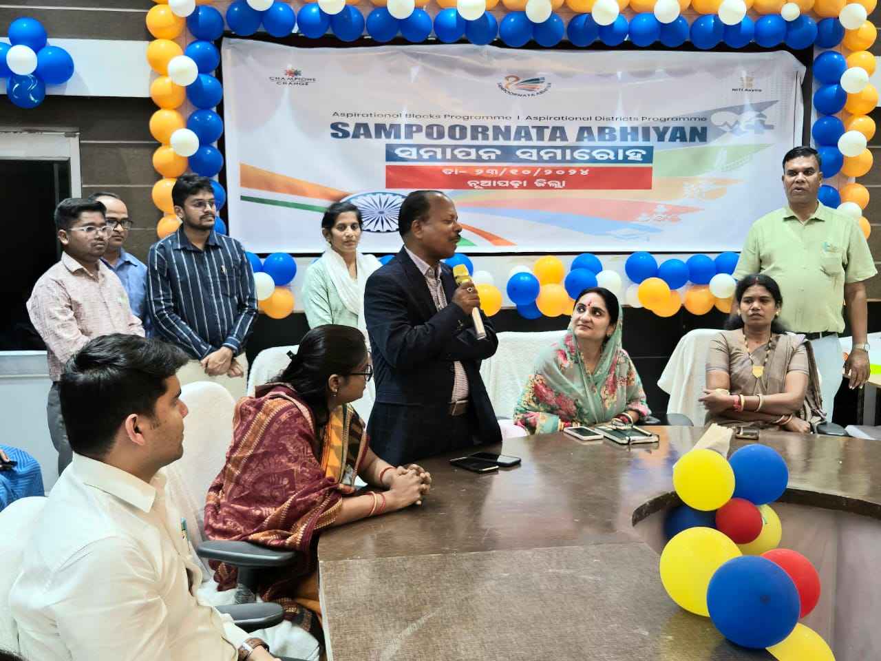 ଜିଲ୍ଳା ପ୍ରଶାସନ ଏବଂ ପିରାମଲ୍ ଫାଉଣ୍ଡେସନ ର ମିଳିତ ସହଯୋଗରେ କେନ୍ଦ୍ର ସରକାରଙ୍କ ଆକାଂକ୍ଷି ନୂଆପଡା ଜିଲ୍ଲା ରେ ସମ୍ପୂର୍ଣତା ଅଭିଯାନ ର ଉଦଯାପନୀ ଉତ୍ସବ ଅନୁଷ୍ଠିତ ହୋଇଯାଇଛି l ଜିଲ୍ଲାପାଳ ମଧୁସୂଦନ ଦାଶଙ୍କ ଅଧ୍ୟକ୍ଷତାରେ ଅନୁଷ୍ଠିତ ଏହି ବୈଠକରେ ଲୋକସଭା ସାଂସଦ ମାଳବିକା ଦେବୀ ମୁଖ୍ୟ ଅତିଥି ଭାବେ ଯୋଗଦେଇଥିଲେ l ସାମାଜିକ ତଥା ଅର୍ଥନୈତିକ କ୍ଷେତ୍ରରେ ପଛୁଆ ଜିଲ୍ଲାକୁ ମୁଖ୍ୟ ସ୍ରୋତ କୁ ଆଣିବା ପାଇଁ କେନ୍ଦ୍ର ନିତୀ ଆୟୋଗ ଙ୍କ ଏହା ଏକ ମହତ୍ତ୍ୱାକାଙ୍କ୍ଷି ଯୋଜନା ଅଟେ l ଏହାର ସଫଳତା ପାରାମିଟର ରେ ସ୍ୱାସ୍ଥ୍ୟ, ପରିବାର କଲ୍ୟାଣ, ଶିକ୍ଷା, ପୋଷଣ, ପୃଷ୍ଟିକର ଖାଦ୍ୟ ଯୋଗାଣ, ମୃତ୍ତିକା ସଂରକ୍ଷଣ, ବିଦ୍ୟାଳୟ ମାନଂକରେ ବିଦ୍ୟୁତ୍ ଯୋଗାଣ, ମାଗଣା ପାଠ୍ୟ ପୁସ୍ତକ ଯୋଗାଣ ଇତ୍ୟାଦି ବିଷୟ ରେ ଜିଲ୍ଲାରେ ଶତ ପ୍ରତିଶତ ସଫଳତା ହାସଲ କରି ପୁରସ୍କାର ପାଇବା ପାଇଁ ମନୋନୟନ ପ୍ରକ୍ରିୟାକୁ ଆବେଦନ କରିଛି l ବିଗତ ଦିନରେ ମଧ୍ଯ ପରିଷ୍କାର ପରିଚ୍ଛନ୍ନତା କ୍ଷେତ୍ରରେ ଜିଲ୍ଲା ଏବଂ ଏହାର ଏକ ପଞ୍ଚାୟତ ରାଜ୍ୟରେ ପ୍ରଥମ ପୁରସ୍କାର ରେ ସମ୍ମାନିତ ହୋଇଥିବାରୁ ସାଂସଦ ଖୁସି ବ୍ୟକ୍ତ କରିଥିଲେ l ବିଭିନ୍ନ କ୍ଷେତ୍ରରେ ନୂଆପଡ଼ା ଜିଲ୍ଲା ପ୍ରଥମ ହୋଇ ସୁନାମ ଆଣୁଥିବାରୁ ଏହି ବିଜୟ ଧାରାକୁ ଅବ୍ୟାହତ ରଖିବା ପାଇଁ ଆହ୍ବାନ କରିଛନ୍ତି।