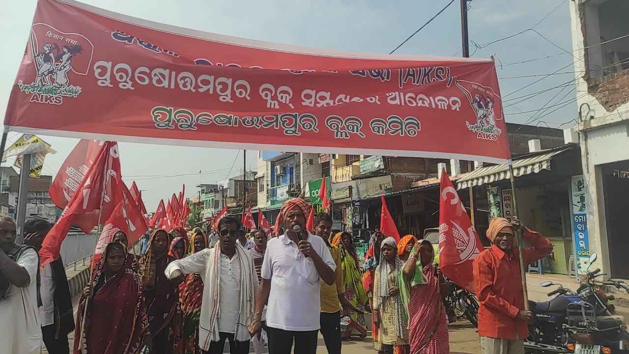 ଗଞ୍ଜାମ ଜିଲ୍ଲା ପୁରୁଷୋତ୍ତମପୁର ବ୍ଲକର ଅଖିଳ ଭାରତ କୃଷକ ସଭାପକ୍ଷରୁ ବ୍ଲକ ସଭାପତି ସତ୍ୟ ନାରାୟଣ ମହାପାତ୍ରଙ୍କ ନେତୃତ୍ୱରେ ପୁରୁଷୋତ୍ତମପୁର କାଲି ମନ୍ଦିର ଛକ ଠାରୁ ପୁରୁଷୋତ୍ତମପୁର ବ୍ଲକ ଓ ଏନଏସି ଅଞ୍ଚଳରସର୍ବ ସାଧାରଣ ଲୋକମାନଙ୍କର ବିଭିନ୍ନ ଅସୁବିଧାକୁ ନେଇ କାଳୀ ମନ୍ଦିର