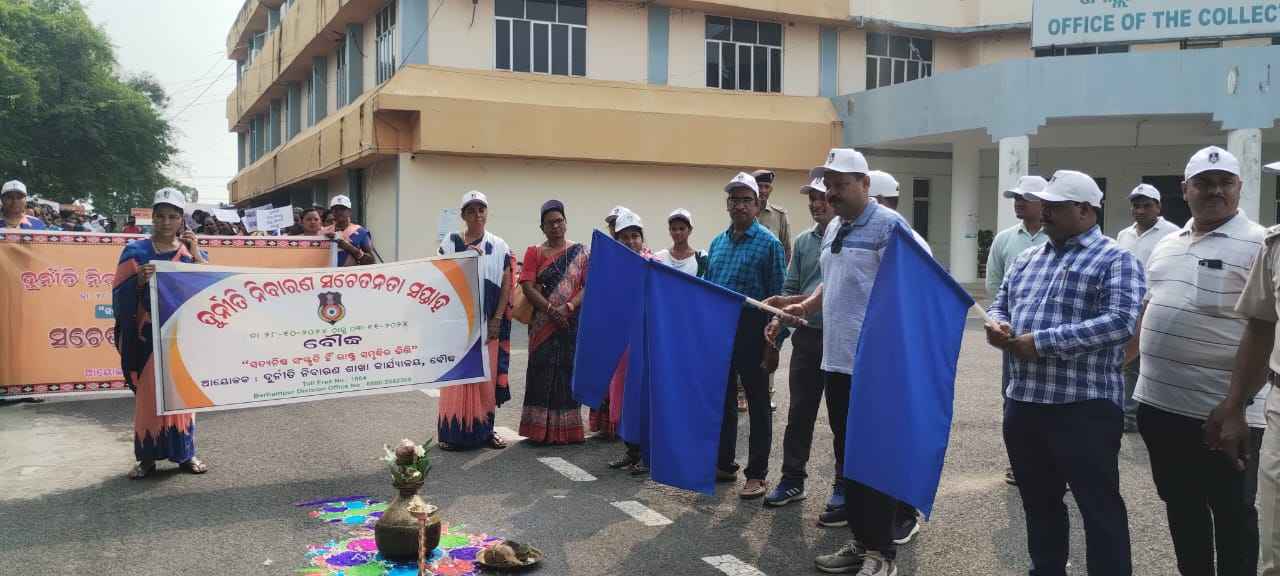 ବୌଦ୍ଧ(ଦୁର୍ଯ୍ଯୋଧନ ବିଶି): ଜ଼ିଲ୍ଲା ଦୁର୍ନୀତି ନିବାରଣ ଶାଖl ଏବଂ ଜ଼ିଲ୍ଲା ପ୍ରଶାସନ ପକ୍ଷ ରୁ ଦୁର୍ନୀତି ନିବାରଣ ସପ୍ତାହ ଉପଲକ୍ଷେ ଏକ ସଚେତନତା ରା଼ଲି ଅନୁଷ୍ଠିତ ହୋଇଯାଇଛି l ଏହି ରା଼ଲି କୁ ଜ଼ିଲ୍ଲାପାଳ ଶ୍ରୀଯୁକ୍ତ ସୁବ୍ରତ କୁମାର ପଣ୍ଡା ପତାକା ଦେଖାଇ ଆନୁଷ୍ଠାନିକ ଭାବେ ଶୁଭ ଉଦଘାଟନ କରିଥିଲେ l ଏହି ଶୋଭାଯାତ୍ରା ଜ଼ିଲ୍ଲାପାଳ ଙ୍କ କାର୍ଯ୍ୟାଳୟ ରୁ ବାହାରି ୱାରଲେ ସ ଛକ, ବାଘଗୁଡା ଛକ ଦେଇ ଦୁର୍ନୀତି ନିବାରଣ କାର୍ଯ୍ୟାଳୟ ରେ ପହଂଚି ଥିଲା l ଏହି କାର୍ଯ୍ୟକ୍ରମ ରେ ଡ଼ି. ଏସ. ପି. ଆନନ୍ଦ କୁମାର ଡୁଙ୍ଗଡୁଙ୍ଗ, ଉପ ଆରକ୍ଷୀ ଅଧିକ୍ଷକ, ଦୁର୍ନୀତି ନିବାରଣ ଶାଖl, ବୌଦ୍ଧ ସୁରେଶ କୁମାର କଁହର, ଇନସ୍ପେକ୍ଟର ଜଗବନ୍ଧୁ ଅଙ୍ଗାରିଆ, ଜ଼ିଲ୍ଲା ସମାଜ ମଙ୍ଗଳ ଅଧିକାରୀ ଲୋଚନ ପୃଷ୍ଟି,ଜ଼ିଲ୍ଲା ସୂଚନା ଓ ଲୋକ ସମ୍ପର୍କ ଅଧିକାରୀ ରିତାକାନ୍ତି ବଳିୟାର ସିଂହ,ଡ଼ି. ପି ସି. ମିଶନ ଶକ୍ତି ତଥା ଡ଼ି. ପି. ଏମ., ଓ. ଏଲ. ଏମ. ରଶ୍ମି ରଞ୍ଜନ ସେଠୀ, ଭିଜିଲାନ୍ସ ଏବଂ ମିଶନ ଶକ୍ତି କାର୍ଯ୍ୟାଳୟ ର ସମସ୍ତ କର୍ମଚାରୀ, ସ୍ୱୟଂ ସହାୟକ ଗୋଷ୍ଠୀ ଏବଂ ମିଶନଶକ୍ତି ର ଶତl ଧି କ ସଦସ୍ୟା, ବୌଦ୍ଧ ବ୍ଲକ ସ୍ତରୀୟ ମିଶନ ଶକ୍ତି ର କର୍ମକର୍ତ୍ତା, ବୌଦ୍ଧ ପଂଚାୟତ ମହାବିଦ୍ୟାଳୟ ର ଏନ. ସି. ସି. କ୍ୟାଡେଟ ଏବଂ ଛାତ୍ରଛାତ୍ରୀ, ଡ଼ାଏଟ ର ଛାତ୍ରଛାତ୍ରୀ ପ୍ଲା କାର୍ଡ, ବ୍ୟାନର ଧରି ବୌଦ୍ଧ ସହର ପରିକ୍ରମା କରି ଦୁର୍ନୀତି ବିରୁଦ୍ଧରେ ସଚେତନତା ର ବାର୍ତ୍ତା ପ୍ରଚାର କରିଥିଲେ l ଏକ ସଚେତନତା ରଥ, ପି ସି ଆର ଭ୍ୟାନ, ଆମ୍ବୁଲାନ୍ସ ଟିମ ଏବଂ ଗାଡି ମଧ୍ଯ ରା଼ଲି ରେ ସାମିଲ ଥିଲେ l ଜ଼ିଲ୍ଲାପାଳ ଶ୍ରୀଯୁକ୍ତ ପଣ୍ଡା ଙ୍କ ସମେତ ସମସ୍ତ ଅଧିକାରୀ ଏବଂ କର୍ମଚାରୀ ମଧ୍ୟ ଶୋଭାଯାତ୍ରା ରେ ଯାଇ ଦୁର୍ନୀତି ନିବାରଣ କାର୍ଯ୍ୟାଳୟ ରେ ପହଂଚି ଥିଲେ l