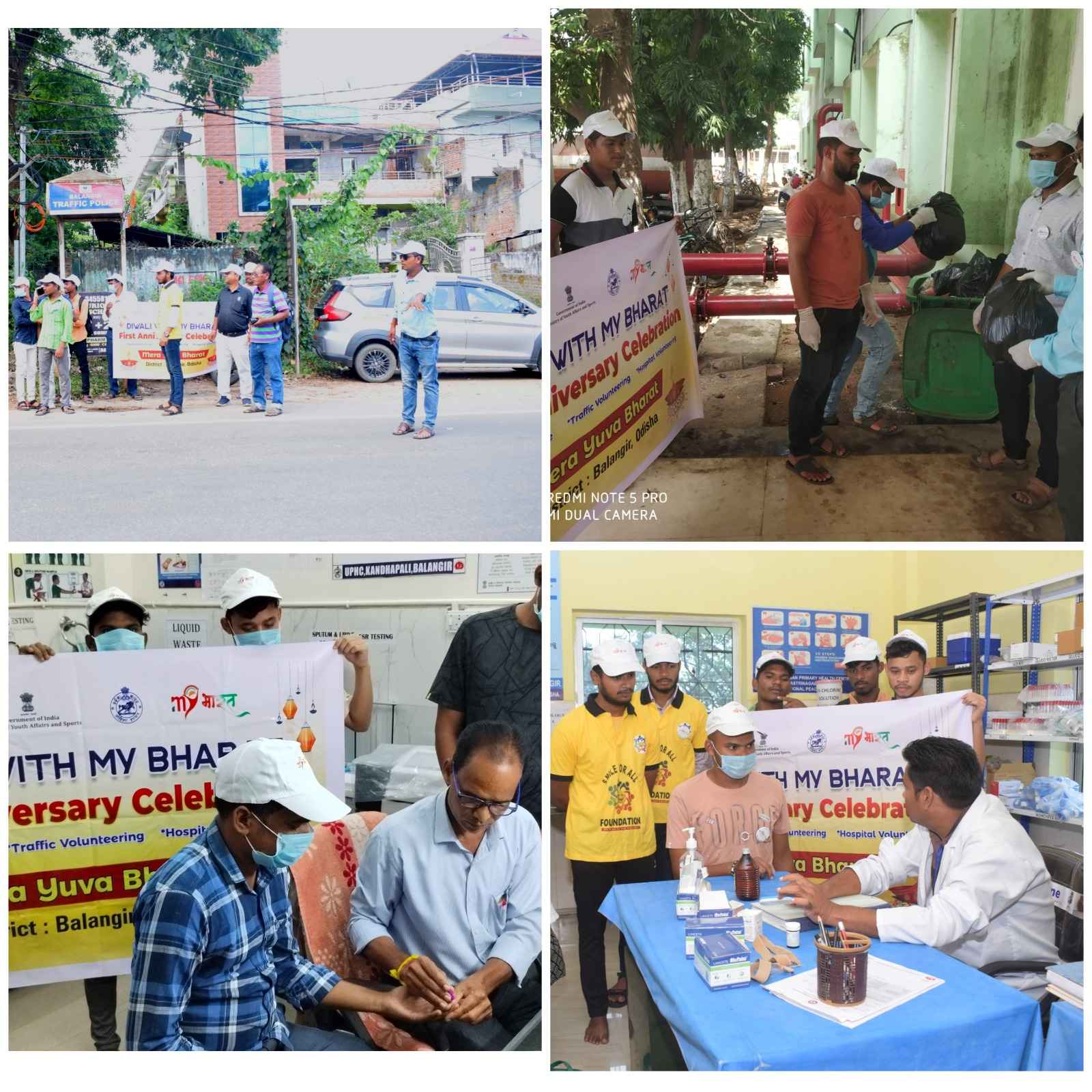 କେନ୍ଦ୍ର ସରକାରଙ୍କ ଯୁବବ୍ୟାପାର ଓ ଖେଳମନ୍ତ୍ରଣାଳୟ ଦ୍ବାରା ପ୍ରାୟୋଜିତ ମେରା ଯୁବା ଭାରତକୁ ପୁରିଛି ଗୋଟିଏ ବର୍ଷ। ଗତ ବର୍ଷ ମେରା ଯୁବା ଭାରତ କାର୍ଯ୍ୟକ୍ରମକୁ ପ୍ରଧାନମନ୍ତ୍ରୀ ନରେନ୍ଦ୍ର ମୋଦୀ ଲୌଲମାନବ ସର୍ଦ୍ଧାର ବଲ୍ଲଭ ଭାଇ ପଟେଲଙ୍କ ଜନ୍ମତିଥିରେ ଶୁଭାରମ୍ଭ କରିଥିଲେ। ଭାରତର ଯୁବ ବର୍ଗଙ୍କୁ ଦେଶ ସେବାରେ ନିୟୋଜିତ ହେବା ପାଇଁ ପ୍ରଧାନମନ୍ତ୍ରୀ ନରେନ୍ଦ୍ର ମୋଦୀ ଆହ୍ବାନ ଦେଇଥିଲେ। ଏହି ଯୋଜନା ଅନୁଯାୟୀ ମାଇଁ ଭାରତ ପୋର୍ଟାଲରେ ସବୁ ସରକାରୀ ବିଭାଗର ସୂଚନା ରହିବ। ଏହି କ୍ରମରେ ଚଳିତ ବର୍ଷ ମଧ୍ୟ ୨୮ ଅକ୍ଟୋବର ରୁ ୩୦ ଅକ୍ଟୋବର ପର୍ଯ୍ୟାନ୍ତ ସବୁ ଜିଲ୍ଲାରେ କାର୍ଯ୍ୟକ୍ରମ ଅନୁଷ୍ଠିତ ହୋଇଛି। ବଲାଙ୍ଗିର ଜିଲ୍ଲାର ସଦର ମହକୁମାରେ ମଧ୍ୟ ସ୍ବଛ୍ଛତା,ଟ୍ରାପିକ ନିୟନ୍ତ୍ରଣ ଓ ଆଶୁ ଚିକିତ୍ସା ପଦ୍ଧତି ଉପରେ ନିଜେ ପ୍ରଶିକ୍ଷିତ ହେବା ସହ ଜନସାଧାରଣଙ୍କୁ ସଚେତନ କରିଛନ୍ତି ଯୁବବର୍ଗ। ବଲାଙ୍ଗିରରେ ମଧ୍ୟ ଆଜି ମେରା ଯୁବା ଭାରତର ସ୍ବେଛ୍ଛାସେବୀମାନେ ଭୀମଭୋଇ ମେଡିକାଲ କଲେଜରେ ସଫେଇ ଅଭିଯାନ କରିଥିଲେ। ମେଡିକାଲର ଓପିଡି ସାମ୍ନାରେ ଆବର୍ଜନାକୁ ସଫା କରିଥିଲେ। ଆରଟିଓ ଛକରେ ଟ୍ରାଫିକ ନିୟନ୍ତଣ କରିବା ସହ ଟ୍ରାଫିକ ନିୟମ ମାନି ଗାଡି ଚଲାଇବାକୁ ଗାଡିଚାଳକଙ୍କୁ ସଚେତନ କରିଥିଲେ ସ୍ବେଛ୍ଛାସେବୀ। ଶେଷରେ ବଲାଙ୍ଗିର ସହରାଞ୍ଚଳ ସ୍ବାସ୍ଥ୍ୟକେନ୍ଦ୍ରରେ ରୋଗୀଙ୍କୁ ସେବା ଯୋଗାଇଥିଲେ। ଜଣେ ଯୁବକ ସାଧାରଣ ରୋଗୀକୁ କିପରି ପ୍ରାଥମିକ ଚିକିତ୍ସା ଯଥା ଡ୍ରେସିଂ,ବ୍ଲଡପ୍ରେସର ମାପିବା ଆଦି ଉପରେ ଶଖିବା ସହ ଲୋକଙ୍କୁ ସଚେତନ କରାଇଥିଲେ। ମେରା ଯୁବା ଭାରତ କାର୍ଯ୍ୟକ୍ରମକୁ ସଂଯୋଜନା କରିଥିଲେ ବଲାଙ୍ଗିର ଜିଲ୍ଲାର ପ୍ରୋଗ୍ରାମ ସୁପରଭାଇଜର ବିପିନ ବିହାରୀ ଜେନା। ଆଗକୁ ଆହୁରି ଯୁବକ ଏହି କାର୍ଯ୍ୟକ୍ରମରେ ସାଭିଲ ହେବାକୁ ନିବେଦନ କରିଥିଲେ ବିପିନ ବିହାରୀ ଜେନା।