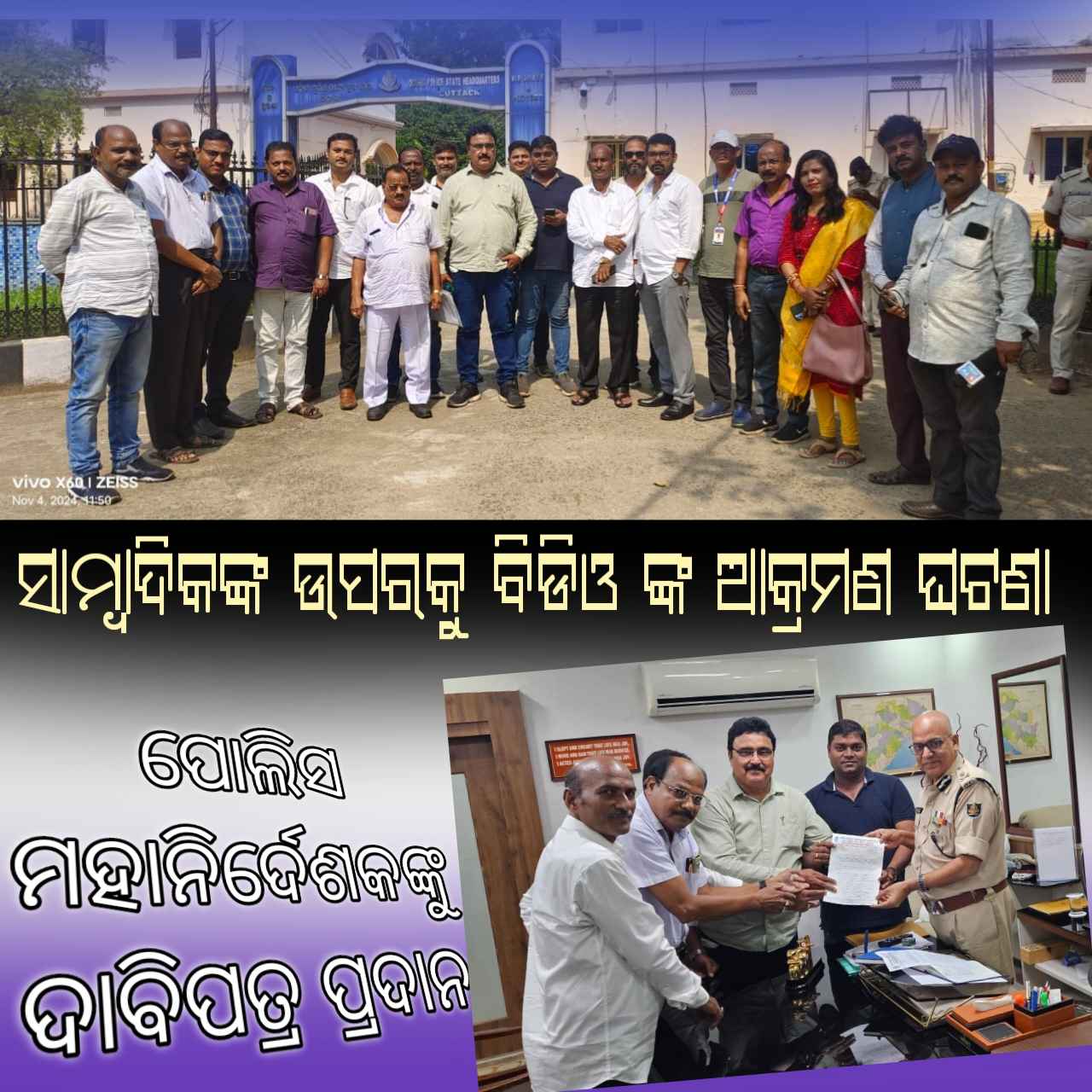 ଭୁବନେଶ୍ବର/କଟକ(ପ୍ରେରଣାଖବର): "ଏସୟୁଜେ ଓଡ଼ିଶା" ସୁବର୍ଣ୍ଣପୁର ଜିଲ୍ଲା ସଭାପତି ତଥା ନିଉଜ-୭ ଜିଲ୍ଲା ପ୍ରତିନିଧି ସାମ୍ବାଦିକ ଧିରେନ୍ଦ୍ର ଦାନୀଙ୍କୁ ମରଣାନ୍ତକ ଆକ୍ରମଣ କରିଥିବା ବିଡ଼ିଓ ସୌମ୍ୟରଞ୍ଜନ ସ୍ୱାଇଁ ଙ୍କୁ ତୁରନ୍ତ ଗିରଫ କରିବା, ଆଇନ ଉଲ୍ଲଂଘନ କରି ଆକ୍ରମଣର ଶୀକାର ଅଭିଯୋଗକାରୀ ଶ୍ରୀ ଦାନୀ ଙ୍କୁ ରାତି ଅଧରେ ସ୍ଥାନୀୟ ପୋଲିସ ଗିରଫ କରିବା ଘଟଣାରେ ଆଇନଗତ କାର୍ଯ୍ୟାନୁଷ୍ଠାନ ଗ୍ରହଣ କରିବା ଦାବିରେ ଆଜି କଟକସ୍ଥିତ ରାଜ୍ୟ ପୋଲିସ ମୁଖ୍ୟାଳୟରେ ପୋଲିସ ମହାନିର୍ଦ୍ଦେଶକଙ୍କୁ ଦାବିପତ୍ର ପ୍ରଦାନ ଏବଂ ଅତିରିକ୍ତ ଡିଜିପି