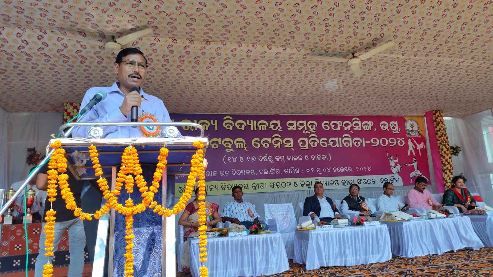 ମନୋବୃତ୍ତିକୁ ଆଗକୁ ବଢ଼ଇବା ପାଇଁ ପ୍ରେରଣା ଦେଇଥିଲେ l ସଭାର ସଭାପତି ଧ୍ରୁବ ଚରଣ ବେହେରା କହିଥିଲେ ଯେ ଆବେଗ ଓ ଶ୍ରଦ୍ଧା ଦ୍ଵାରା କ୍ରୀଡାକୁ ଆଗକୁ ନିଆଯାଇ ପାରିବ । ରାଜ୍ୟ କ୍ରୀଡ଼ା ଉପନିର୍ଦେଶକ ଜ୍ୟୋତି ପ୍ରସାଦ ପରିଡା ପ୍ରତିଯୋଗିତାର ଉଦ୍ଦେଶ୍ୟ ଓ ବିବରଣୀ ପ୍ରଦାନ କରିଥିଲେ l ଜାତୀୟ କ୍ରୀଡା ପ୍ରତିଯୋଗିତାର ଆଗାମୀ ଦିନର ସୂଚୀର ସୂଚନା ଦେଇଥିଲେ । ଅତିରିକ୍ତ ଜିଲ୍ଲା ମାଜିଷ୍ଟ୍ରେଟ ବିଜୟାନନ୍ଦ ସେଠୀ ସମ୍ୱାନୀତ ଅତିଥି ଭାବେ ଯୋଗଦେଇ କହିଥିଲେ ଆଜି କ୍ରୀଡ଼ାକୁ ବୃତ୍ତି ଭାବରେ ଗ୍ରହଣ କରାଯାଇ ପାରେ । ଅତିରିକ୍ତ ଜିଲ୍ଲା ଶିକ୍ଷା ଅଧିକାରୀ କେଶବ ମେହେର ଏବଂ ସମ୍ବଲପୁର ଜିଲ୍ଲା କ୍ରୀଡା ଅଧିକାରୀ ସୁଜାତା ପଟ୍ଟନାୟକ ସମ୍ୱାନିତ ଅତିଥି ଭାବରେ ଯୋଗ ଦେଇଥିଲେ। ପୃଥ୍ୱୀରାଜ ହାଇସ୍କୁଲର ପ୍ରଧାନଶିକ୍ଷକ ସନ୍ତୋଷିନୀ ସେଠୀ ସ୍ଵାଗତ ସମ୍ଭାଷଣ ଦେଇଥିଲେ। ବଲାଙ୍ଗିର ଜିଲ୍ଲା କ୍ରୀଡା ଅଧିକାରୀ ପ୍ରଦୀପ କୁମାର ପାତ୍ର ଆଜିର ସଭାରେ ଧନ୍ୟବାଦ୍ ଅର୍ପଣ କରିଥିବା ବେଳେ ହେମନ୍ତ ପ୍ରଧାନ ମଞ୍ଚ ପରିଚାଳନା କରିଥିଲେ l ଏଇ ରାଜ୍ୟସ୍ତରୀୟ ପ୍ରତିଯୋଗିତାର ଫେନ୍ସିଂ ପ୍ରତିଯୋଗିତାରେରେ ବଲାଙ୍ଗୀର ଦଳ ଚାମ୍ପିଅନ, ଊଷୁ ପ୍ରତିଯୋଗିତାରେ କେନ୍ଦୁଝର, ଥାଙ୍ଗ ଟା ରେ ବଲାଙ୍ଗିର ଏବଂ ଟେବଲ୍ ଟେନିସରେ ୧୪ ବର୍ଷରୁ କମ ବାଳକରେ କଟକ,