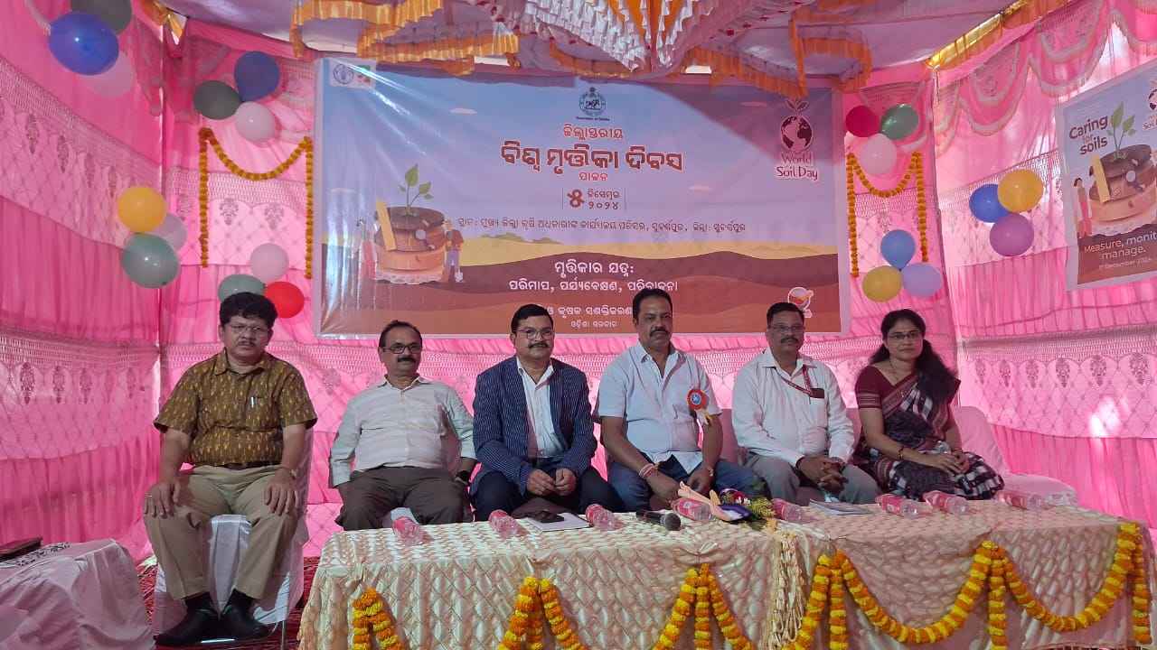 ସୁବର୍ଣ୍ଣପୁର ଠାରେ ଜିଲ୍ଲା ମୁଖ୍ୟ କୃଷି ଅଧିକାରୀଙ୍କ କାର୍ଯ୍ୟ।ଳୟ ପରିସରରେ ଜିଲ୍ଲା କୃଷି ଓ କୃଷକ ସଶକ୍ତିକରଣ ବିଭାଗ ଦ୍ୱାରା ଜିଲ୍ଲାସ୍ତରୀୟ ବିଶ୍ଵ ମୃତ୍ତିକା ଦିବସ ପାଳନ ଅନୁଷ୍ଠିତ ହୋଇଯାଇଛି । କୃଷି ଜିଲ୍ଲା ଅଧିକାରୀ ବୀରମହାରାଜପୁର ଶ୍ରୀ ଧୀରେନ୍ଦ୍ର ସିଂ ବରିହା ଙ୍କ ସଭାପତିତ୍ୱରେ ଅନୁଷ୍ଠିତ କାର୍ଯ୍ୟକ୍ରମରେ ସୋନପୁର ବ୍ଲକ ଅଧ୍ୟକ୍ଷ ପ୍ରହ୍ଲାଦ କୁମାର ନାଏକ ମୁଖ୍ୟ ଅତିଥି ଭାବେ ଯୋଗଦେଇଥିବା ବେଳେ ସମ୍ମାନିତ ଅତିଥି ଭାବେ ଜିଲ୍ଲା ସୂଚନା ଓ ଲୋକ ସମ୍ପର୍କ ଅଧିକାରୀ ଅଶ୍ୱିନୀ କୁମାର ଭୋଇ, ସହକାରୀ ନିର୍ଦେଶକ ଉଦ୍ୟାନ ବିଭାଗ ଶ୍ରୀ ହୃଷିକେଶ ଦାସ, ମାର୍କ୍ଫେଡ ଅଧିକାରୀ ଗଣେଶ୍ୱର ମହାପାତ୍ର, ପାରାଦ୍ୱୀପ ପସଫେଟ ଲିମିଟେଡ଼ ଏରିଆ ମ୍ୟାନେଜର ସୁନୀଲ ସାହୁ,କୃଷି ଜିଲ୍ଲା ଅଧିକାରୀ ସୋନପୁର ଘନଶ୍ୟାମ ଦେହୁରୀ, କୃଷି ଜିଲ୍ଲା ଅଧିକାରୀ ଡୁଙ୍ଗୁରିପାଲି ବିପିନ ଉଦଗାତା, ଓ ବକ୍ତା ଭାବେ ଜିଲ୍ଲା କୃଷି ବିଜ୍ଞାନ ଗବେଷଣା କେନ୍ଦ୍ର ମୁଖ୍ୟ ବୈଜ୍ଞାନିକ ଡ଼ଃ ବିଶ୍ୱରଂଜନ ପଟ୍ଟନାୟକ ଯୋଗଦେଇଥିଲେ । କାର୍ଯ୍ୟକ୍ରମ ପ୍ରାରମ୍ଭରେ କୃଷି ଜିଲ୍ଲା ଅଧିକାରୀ ଶ୍ରୀ ଧୀରେନ୍ଦ୍ର ସିଂ ବରିହା ଉପସ୍ଥିତ ସମସ୍ତଙ୍କୁ ସ୍ଵାଗତ ଜଣାଇବା ସହିତ ବିଶ୍ୱ ମୃତ୍ତିକା ଦିବସ ପାଳନର ତାତ୍ପର୍ଯ୍ୟ, ଆଭିମୁଖ୍ୟ ଉପରେ ଆଲୋକପାତ କରିଥିଲେ । ଚଳିତ ବର୍ଷ ର ଶୀର୍ଷକ ମୃତ୍ତିକାର ଯତ୍ନ : ପରିମାପ, ପର୍ଯ୍ୟବେକ୍ଷକ, ପରିଚାଳନା ପରିପ୍ରେକ୍ଷୀରେ ମୁଖ୍ୟବକ୍ତା କୃଷି ବିଜ୍ଞାନ ଗବେଷଣା କେନ୍ଦ୍ର ମୁଖ୍ୟ ବୈଜ୍ଞାନିକ ଡ଼ଃ ପଟ୍ଟନାୟକ ବକ୍ତବ୍ୟରେ ମାଟିକୁ ମା ସହିତ ତୁଳନା କରି ଭବିଷ୍ୟତ ପାଇଁ ମାଟିର ଗୁଣାତ୍ମକମାନକୁ ବଜାୟ ରଖିବା ସହିତ, ମାଟିର ଆବଶ୍ୟକ ଯତ୍ନ ଏବଂ ଦାୟିତ୍ଵ ଉପରେ ଗୁରୁତ୍ଵାରୋପ କରିଥିଲେ । ମୁଖ୍ୟ ଅତିଥି ଶ୍ରୀଯୁକ୍ତ ନାଏକ ବକ୍ତବ୍ୟରେ ମାଟିର ଉପଯୁକ୍ତ ପରିଚାଳନା ଓ ମାଟିରେ ପରୀକ୍ଷା ଭିତ୍ତିରେ ସାରା ପ୍ରୟୋଗ ଉପରେ ଗୁରୁତ୍ଵ ଆରୋପ କରି ମାଟି ର ଆବଶ୍ୟକ ଯତ୍ନ ନେବାକୁ ପରାମର୍ଶ ଦେଇଥିଲେ । ବିଶ୍ଵ ମୃତ୍ତିକା ଦିବସ ଉପଲକ୍ଷେ ଶିକ୍ଷା ବିଭାଗ ସହଯୋଗରେ " ମୃତ୍ତିକାର ଯତ୍ନ : ପରିମାପ, ପର୍ଯ୍ୟବେକ୍ଷକ, ପରିଚାଳନା " ଶୀର୍ଷକ ଉପରେ ଅନୁଷ୍ଠିତ ହୋଇଥିବା ବିଦ୍ୟାଳୟ ସ୍ତରୀୟ କନିଷ୍ଠ ଓ ବରିଷ୍ଠ ବିଭାଗରେ ପୋଷ୍ଟର ପ୍ରତିଯୋଗିତାରେ ପ୍ରଥମ, ଦ୍ଵିତୀୟ, ତୃତୀୟ ସ୍ଥାନ ଅଧିକାର କରିଥିବା କୃତୀ ଛାତ୍ର ଛାତ୍ରୀଙ୍କୁ ଟ୍ରଫି ଏବଂ ମାନପତ୍ର ପ୍ରଦାନ ପୂର୍ବକ ସମ୍ବର୍ଦ୍ଧିତ କରାଯାଇଥିଲା । ସେହିପରି ୨୦ ଜଣ ଚାଷୀଙ୍କୁ ତାଙ୍କ ନମୁନା ମାଟି ପରୀକ୍ଷା ଭିତ୍ତିରେ ମୃତ୍ତିକା ସ୍ୱାସ୍ଥ୍ୟ କାର୍ଡ ପ୍ରଦାନ କରାଯାଇଥିଲା । ଏହି କାର୍ଯ୍ୟକ୍ରମରେ କୃଷି ଏବଂ ଆନୁଷଙ୍ଗିକ ବିଭାଗ ଯଥା ଉଦ୍ୟାନ କୃଷି,ମୃତ୍ତିକା ସଂରକ୍ଷଣ, କୃଷି ବିଜ୍ଞାନ କେନ୍ଦ୍ର (ସୋନପୁର ) , ପ୍ରାଣୀ ସମ୍ପଦ ବିଭାଗ , ମତ୍ସ୍ୟ ବିଭାଗ ଦ୍ଵାରା କାର୍ଯ୍ୟକାରୀ ବିଭିନ୍ନ ଯୋଜନା ସମ୍ପର୍କରେ ଚାଷିମାନଙ୍କୁ ଅବଗତ କରିଥିଲେ । ପାରାଦ୍ଵୀପ ଫସଫେଟ ଲିମିଟେଡ , ମିଳେଟ ମିସନ ଏବଂ ମୃତ୍ତିକା ପରୀକ୍ଷାଗାର ଦ୍ଵାରା ଖୋଲାଯାଇଥିବା ଷ୍ଟଲ ରେ ମୃତ୍ତିକା ପରିଚାଳନା ସମ୍ପର୍କିତ ବିଭିନ୍ନ ପ୍ରକାର ଜୈବିକ ଉତ୍ପାଦ ମାଣ୍ଡିଆ, ଯୁଆର, ସୁଆଁ, କୁ୍ଦୋ ତଥା ନାନୋ ଡ଼ିଏପି, ନାନୋ ୟୁରିଆ ପ୍ରଭୁତି ପ୍ରଦର୍ଶିତ କରାଯାଇଥିବା ବେଳେ ମୋବାଇଲ 