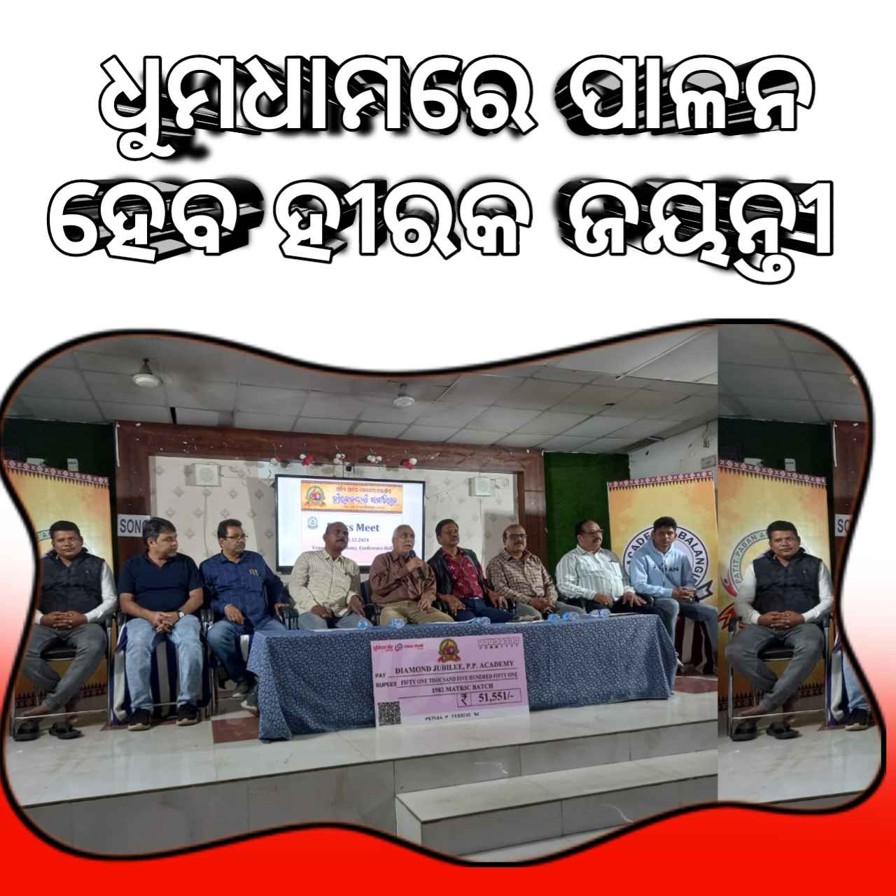 ବଲାଙ୍ଗୀର(ପ୍ରେରଣା ଖବର): ଆସନ୍ତା ଡିସେମ୍ବର ୨୧ ଓ ୨୨ ତାରିଖ ଦୁଇ ଦିନ ଧରି ସ୍ଥାନୀୟ ପି.ପି. ଏକାଡେମୀର ହୀରକ ଜୟନ୍ତୀ ପାଳନ ହେବ l ଏଥିପାଇଁ ସ୍କୁଲର ଆଲୁମିନି ସଂଘ ପକ୍ଷରୁ ଏକ ସାମ୍ବାଦିକ ସମ୍ମିଳନୀ ଅନୁଷ୍ଠିତ ହୋଇଥିଲା l ହୀରକ ଜୟନ୍ତୀ କମିଟି ସଭାପତି ଶଶୀଭୂଷଣ ପୁରୋହିତଙ୍କ ସଭାପତିତ୍ବରେ ଜୟନ୍ତୀ ପାଳନର ଅଗ୍ରଗତି ସଂପର୍କରେ କମିଟି ପକ୍ଷରୁ ସୂଚନା ଦିଆଯାଇଥିଲା l ମହାମହିମ ରାଜ୍ୟପାଳ, ବାଚସ୍ପତି, ପୂର୍ବତନ ମୁଖ୍ୟମନ୍ତ୍ରୀ, କେନ୍ଦ୍ର ଓ ରାଜ୍ଯ ଶିକ୍ଷା ମନ୍ତ୍ରୀ, ସ୍ଵତନ୍ତ୍ର ସଚିବ ନିହାର ଦାସ, ଲେଖିକା ଡ.ପ୍ରତିଭା ରାୟ ପ୍ରମୁଖଙ୍କୁ ଅତିଥି ପାଇଁ ନିମନ୍ତ୍ରଣ କରାଯାଇଛି ବୋଲି ଆଲୁମିନି କମିଟି ସଭାପତି ଅଫତlବ ହୁସେନ୍ କହିଥିଲେ l ଏହି ଅବସରରେ ଏକ ସ୍ମରଣିକା ପ୍ରକାଶ ପାଉଛି l ସ୍ମରଣିକର ସଂଯୋଜକ ମନୋରଞ୍ଜନ ସାହୁ ସ୍ମରଣିକାର ଅଗ୍ରଗତି ଓ ଗୁଣାତ୍ମକ ଲେଖା ଉପରେ ସୂଚନା ଦେଇଥିଲେ l ଆଜିର ସାମ୍ବାଦିକ ସମ୍ମିଳନୀରେ ପ୍ରଧାନଶିକ୍ଷକ ସିନୁସୁନ୍ଦର ପାଢୀ ଛାତ୍ରଛାତ୍ରୀ ମାନଙ୍କ ମଧ୍ୟରେ ବିଭିନ୍ନ୍ ପ୍ରତିଯୋଗିତା ଅନୁଷ୍ଠିତ ହୋଇଥିଲା ବୋଲି ସୂଚନା ଦେଇଥିଲେ l ଜୁବୁଲି କମିଟିର ଉପସଭାପତି ହେମନ୍ତ ପଣ୍ଡା, କୋଷାଧ୍ୟକ୍ଷ ଦତ୍ତାନନ୍ଦ ପଣ୍ଡା, ସ୍ମରଣିକା କମିଟିର ମୁଖ୍ୟ ସମ୍ପାଦକ ଅଖିଳ ଚଂଦ୍ର ହୋତା, ଯୁଗ୍ମ ସମ୍ପାଦକ ରଘୁନନ୍ଦନ ସିଂହ, କମିଟିର ସମ୍ପାଦକ ପ୍ରଦୀପ ସାହୁ, ନାସିର ଖାନ୍ ଓ ଲକ୍ଷ୍ମଣ ଅଗ୍ରୱାଲ ମଞ୍ଚାସୀନ ଥିଲେ l
