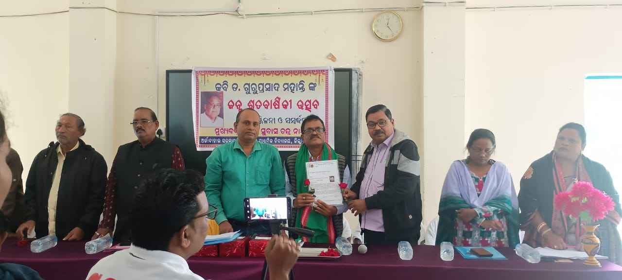 ସମ୍ବଲପୁର- କୁଚିଣ୍ଡା:( ସଂଜୀବ ପାଣିଗ୍ରାହୀ) :ଯଶସ୍ଵୀ ଓ ଚର୍ଚ୍ଚିତ କବି ଗୁରୁ ପ୍ରସାଦ ମହାନ୍ତି ଙ୍କ ଜନ୍ମ ଶତବାର୍ଷିକୀ ଉତ୍ସବକୁ ଆଜି ସମ୍ବଲପୁର ଜିଲ୍ଲା କୁଚିଣ୍ଡା ଉପଖଣ୍ଡ ର ଅଗ୍ରଣୀ ସରକାରୀ ମହିଳା କନିଷ୍ଠ ମହା ବିଦ୍ୟାଳୟ ଅର୍ଡା ବାହାଲ ର ସଭା କକ୍ଷରେ ସମାରୋହର ସହ ପାଳିତ ହୋଇ ଯାଇଛି । ଅନୁଷ୍ଠାନ ର ଅଧ୍ୟକ୍ଷ ରଞ୍ଜନ ନାଏକ ଙ୍କ ସଭାପତିତ୍ବରେ ଆୟୋଜିତ ଏହି ଉତ୍ସବରେ ବିଶିଷ୍ଟ ସାହିତ୍ୟିକ ତଥା ଅବସର ପ୍ରାପ୍ତ ଅଧ୍ୟକ୍ଷ ସୁବାସ ଚନ୍ଦ୍ର ନାୟକ ମୁଖ୍ୟବକ୍ତା ଭାବରେ ଯୋଗ ଦେଇ କବି ଗୁରୁ ପ୍ରସାଦ କମ ସଂଖ୍ୟକ ପୁସ୍ତକ ରଚନା କରିଥିଲେ ପ୍ରାଚ୍ୟ ଓ ପାଶ୍ଚାତ୍ୟରେ ସମ୍ମିଶ୍ରଣ ରେ ଲେଖିଥିବା ପ୍ରଭାବ ଶାଳୀ ଲେଖା ପାଇଁ ଯୁଗ ସ୍ରଷ୍ଟା ସଦୃଶ୍ୟ ସ୍ମରଣୀୟ ବୋଲି ବକ୍ତବ୍ୟ ପ୍ରଦାନ କରିଥିଲେ ।ସେ ତାଙ୍କ ବକ୍ତବ୍ୟରେ କବି ରଚିତ କବିତାରେ ଥିବା ଚିତ୍ର ,ଚିତ୍ର କଳ୍ପ ଓ ମୀଥ ଗୁଡ଼ିକ ଉପସ୍ଥାପନା କରିଥିଲେ । ଉତ୍ସବରେ ସମ୍ମାନିତ ଅତିଥି ଭାବରେ ବରିଷ୍ଠ ଓକିଲ ଓ ସାହିତ୍ୟିକ ହୃଦାନନ୍ଦ ଶର୍ମା , ଶିକ୍ଷାବିତ୍ ଓ କବି ଚତୃଭୂଜ ସାହୁ, ନାରୀ କବୀ ରଜନୀ ପଟେଲ, ରେବତୀ ନାୟକ, ଅବସର ପ୍ରାପ୍ତ ପ୍ରଧାନ ଶିକ୍ଷକ ବସନ୍ତ ଚୌଧୁରୀ, ହେମନ୍ତ କୁମାର ପୃଷେଟ, ପ୍ରମୋଦ କୁମାର ନାୟକ,ବନମାଳୀ ନାମଦେଓ,ବିଶ୍ଵନାଥ ସାହୁ, ସରୋଜ କୁମାର ସେନାପତି, ସାମାଜିକ କର୍ମୀ ପଦ୍ମିନୀ ବଂକରା ପ୍ରମୁଖ ଯୋଗ ଦେଇ ସ୍ବରଚିତ କବିତା ମାଧ୍ୟମରେ କବି ମହାନ୍ତିଙ୍କୁ ଶ୍ରଦ୍ଧା ସୁମନ ଜ୍ଞାପନ କରିଥିଲେ ।ଏହି ଅବସରରେ କବି ଗୁରୁ ପ୍ରସାଦ ଙ୍କ ଶୈଳୀରେ କବିତା ଲେଖି ଚର୍ଚ୍ଚିତ ହୋଇଥିବା କବି ସୁବାସ ନାୟକଙ୍କୁ ମାନପତ୍ର ଓ ଉପଢ଼ୌକନ ଦେଇ "କବି ଗୁରୁ ପ୍ରସାଦ ମହାନ୍ତି ସ୍ମୁତି ସମ୍ମାନ" ରେ ସମ୍ମାନିତ କରାଯାଇଥିଲା । ମାନପତ୍ର କୁ କବି ନମଦେଓ ପାଠ କରିଥିଲେ । କବି ହେମନ୍ତ ପୃଶେଟ ଙ୍କ" କବିତା ମାଧୁରୀ", କବି ବିଶ୍ଵନାଥ ସାହୁ ଙ୍କ " ମା ଚୈତ୍ରସ୍ୱରୀ " ଓ ଅନ୍ୟ ଏକ ସଂକଳନ" ବିଷ୍ଣୁ ଙ୍କ ଦୁରଭାସ ନମ୍ବର"କୁ ଅତିଥି ଗଣ ଶୁଭ ଉନ୍ମୋଚନ କରିଥିଲେ ।ପ୍ରାରମ୍ଭରେ ଅଡ଼ୁଆ ଅଧ୍ୟାପକ ଉଦୟ ଚନ୍ଦ୍ର ପାଣିଗ୍ରାହୀ ସ୍ଵାଗତ ଭାଷଣ ସହ ଅତିଥି ପରିଚୟ ଓ ବିଷୟ ପ୍ରବେଶ କରିଥିଲେ ।ଦ୍ଵିତୀୟ ଅଧିବେଶନ ରେ ଅର୍ଦ୍ଧ ଶତାଧିକ କବି ଙ୍କ କବିତାକୁ ରଜନୀ ପଟେଲ, ଉଦୟ ପାଣିଗ୍ରାହୀ ଓ ସୁଶ୍ରୀ ପଦ୍ମିନୀ ବାଙ୍କରା ସଂଯୋଜନା କରିଥିବା ବେଳେ ଶେଷରେ ରସାୟନ ବିଭାଗ ଅଧ୍ୟାପକ ଗୁରୁଜନ ଖୁଣ୍ଟିଆ ଧନ୍ୟବାଦ୍ ଅର୍ପଣ କରିଥିଲେ ।