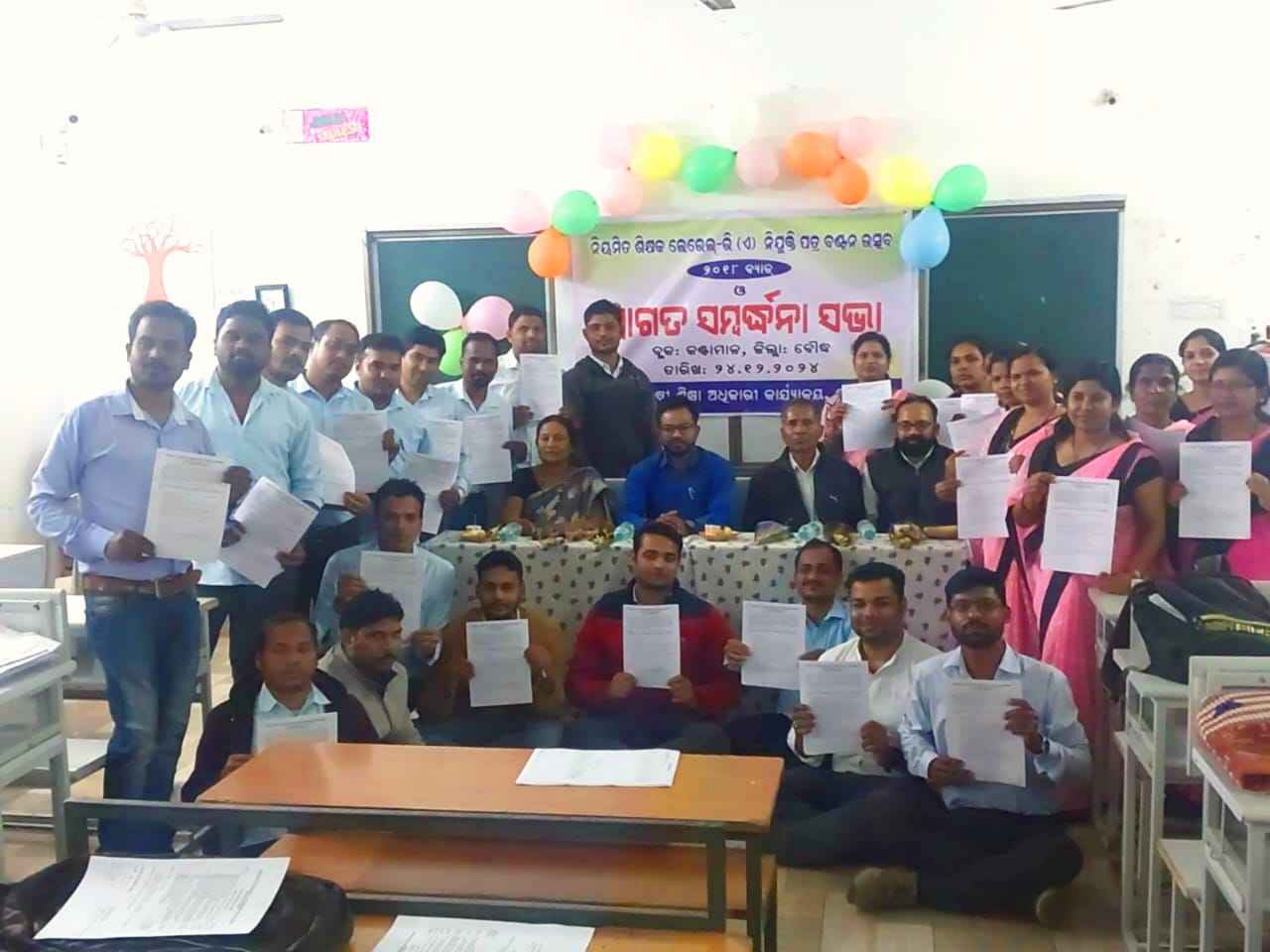 କଣ୍ଟାମାଳ(ଜୟ କୁମାର ମହାରଣା): ବୌଦ୍ଧ ଜିଲ୍ଲା କଣ୍ଟାମାଳ ବ୍ଲକ ର ୨୬ ଜଣ କନିଷ୍ଠ ଶିକ୍ଷକ 6 ବର୍ଷ ଠିକା ରେ କାମ କରିବା ପରେ ୨୧୧୨୨୪ ଜିଲ୍ଲା ଶିକ୍ଷା ଅଧିକାରୀଙ୍କ ନିର୍ଦେଶ ଆଧାରରେ କଣ୍ଟାମାଳ ଗୋଷ୍ଠୀ ଶିକ୍ଷା ଅଧିକାରୀ ସନୋଜ କୁମାର ସେଠି ଙ୍କ ଦ୍ୱାରା ନିୟମିତ ନିଯୁକ୍ତି ପତ୍ର ଗ୍ରହଣ କରିଛନ୍ତି l ଏଥି ପାଇଁ କନିଷ୍ଠ ଶିକ୍ଷକ ସଂଘ ତରଫରୁ ସଭାପତି ପ୍ରଣବ କୁ ବାଘ, ସମ୍ପାଦକ ଶିବନାଥ ପଣ୍ଡା କୋଷାଧକ୍ଷ ଦେବପ୍ରସାଦ ସାହୁ, ସହସମ୍ପାଦିକା ଭାଗ୍ୟଶ୍ରୀ ବିଶ୍ୱାଳ,ସୁଷମା ମାଝୀ, ରାଜୀବ ସାହୁ, ଦୁଷ୍ମନ୍ତ ସାହୁ ତଥା ଅନ୍ୟାନ୍ୟ ଶିକ୍ଷକ ଜିଲ୍ଲାପାଳ, ଜିଲ୍ଲା ଶିକ୍ଷା ଅଧିକାରୀ ଓ ଗୋଷ୍ଠୀ ଶିକ୍ଷା ଅଧିକାରୀ ଙ୍କୁ ଅଶେଷ ଧନ୍ୟବାଦ ଜ୍ଞାପନ କରି, ଆଗାମୀ ଦିନରେ ଶିକ୍ଷା ରେ ଉନ୍ନତି ରେ ନିଜକୁ ସାମିଲ କରି ନିଜର ଦାୟିତ୍ୱ ସୁଚାରୁ ରୂପେ ସମ୍ପାଦନ କରିବେ ବୋଲି କହିଛନ୍ତି |ଏହି ଅବସରରେ କଣ୍ଟାମାଳ ହାଇସ୍କୁଲ ଠାରେ ଏକ ସଭାରେ ଗୋଷ୍ଠୀ ଶିକ୍ଷା ଅଧିକାରୀ ସନୋଜ କୁମାର ସେଠି,ବି ଆର ସି ସି ଦୁର୍ଗା ଚରଣ ପ୍ରଧାନ, ଏବିଇଓ ଲକ୍ଷ୍ମୀ ମଲିକ, ବରିଷ୍ଠ କିରାଣୀ ସୁଦାମ ମିଶ୍ର ଯୋଗଦେଇ ନୂତନ ଭାବେ ନିୟମିତ ହୋଇଥିବା ଶିକ୍ଷକ ମାନଙ୍କୁ ଶୁଭେଚ୍ଛା ଜଣାଇବା ସହିତ ନିଷ୍ଠାପର ଭାବେ କାର୍ଯ୍ୟ କରିବାକୁ ବିଇଓ ଶ୍ରୀ ସେଠି କହିଥିଲେ |