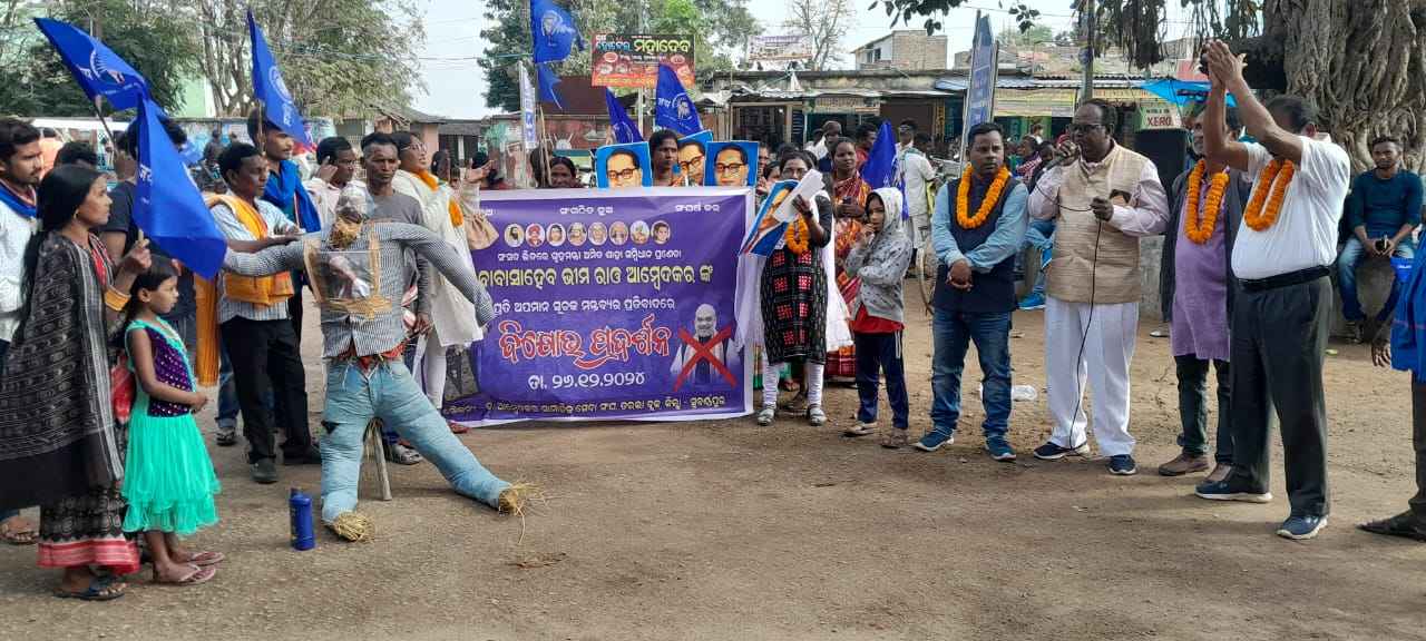 ତରଭା(କପିଳାସ ସେଠ୍)କେନ୍ଦ୍ରଗୃହ ମନ୍ତ୍ରୀ ଅମିତ ଶାହ ସାଂସଦ ଭବନ ରେ ସମ୍ମିଧାନ ପ୍ରଣେତା ବାବାସାହେବ ଡ଼ଃ ଆମ୍ବେଦକରଙ୍କ ପ୍ରତି ଅପମାନ ଜନକ ମନ୍ତବ୍ୟ ବିରୋଧ ରେ ଅନୁସୂଚିତ ଜାତି, ଜନଜାତି, ପଛୁଆ ବର୍ଗ ଓ ସଂଖ୍ୟା ଲଘୁ ସମୁନ୍ନୟ ସମିତି ଓଡିଶା ତରଭା ଶାଖା ପକ୍ଷରୁ ଆଜି ତରଭା ବ୍ଲକ ସମ୍ମୁଖରେ ଅମିତ ଶାହ ଙ୍କ କୁଶ ପୁତ୍ତଳିକା ଦାହ କରାଯିବା ସହ ଦେଶର ଉପରାଷ୍ଟ୍ରପତି ଙ୍କଉଦେଶ୍ୟରେ ତରଭାବିଡ଼ିଓ ଗଙ୍ଗାରାମ ବୁଡ଼େକ ଙ୍କୁ ୨ ଦଫା ଦାବୀପତ୍ର ପ୍ରଦାନ କରାଯାଇଥିଲା I ତରଭା ବ୍ଲକ ର ବିଭିନ୍ନ ଅଂଚଳ ରୁ ଆସିଥିବା ଏହି ସମ୍ପ୍ରଦାୟ ବ୍ୟକ୍ତି, ନେତା ସଂଗଠକ ଏକତ୍ରିତ ହୋଇ ବାବା ସାହେବ ଆମ୍ବେଦକରଙ୍କ ପ୍ରତିମୂର୍ତ୍ତିରେ ପୁଷ୍ପମାଲ୍ୟା ଅର୍ପଣ କରାଯାଇ ବିଭିନ୍ନ ଅମିତ ଶାହ ବିରୋଧ ସ୍ଲୋଗାନ ଦେବା ସହ ମତ ରଖିଥିଲେ ଓ କୁଶ ପୁତ୍ତଲିକା ଦାହ କରିଥିଲେ Iଦାବୀ ପତ୍ର ପ୍ରଦାନ ଓ କୁଶ ପୁତ୍ତଳିକା ଦାହ ସମୟରେ ତରଭା ବ୍ଲକ ଆମ୍ବେଦକର ସାମାଜିକ ସେବା ସଂଘ ର ସଭାପତି ବୈକୁଣ୍ଠଶ୍ୱର ବାରିକଙ୍କ ନେତୃତ୍ୱ ନେଇ ଥିଲେ I ଜିଲ୍ଲା ଏସ ସି ଏସଟି ମିଳିତ ସଂଘ ସଭାପତି ଅଚୁତ ଛତର, ବିନିକା ବ୍ଲକ ଏସ ସି ଏସଟି ସଂଘ ସଭାପତି ମହେନ୍ଦ୍ର ସୁନା ବିଏମପୁର ଭୀମ ଆର୍ମି ସଭାପତି ପ୍ରଦୀପ ଜାଲ, ପଶ୍ଚିମ ଓଡିଶା ନାରୀ ସଂଗଠନ ଏସ ସି ଏସ ଟି ସଭାପତି ମନୀଷା ଦୀପ, ଓ ବାସନ୍ତୀ ମହାନନ୍ଦଙ୍କ ସହ ପ୍ରକାଶ ହରିପାଳ, କୁଶଳେଶ୍ୱର ସୁନା, ନକୁଳ ନନ୍ଦ,ରତ୍ନା ତାଣ୍ଡି, ସୁଶୀଳ ମଲ୍ଲିକ ପ୍ରମୁଖ ଶତାଧିକ ସଭ୍ୟ ଉପସ୍ଥିତ ଥିଲେ I