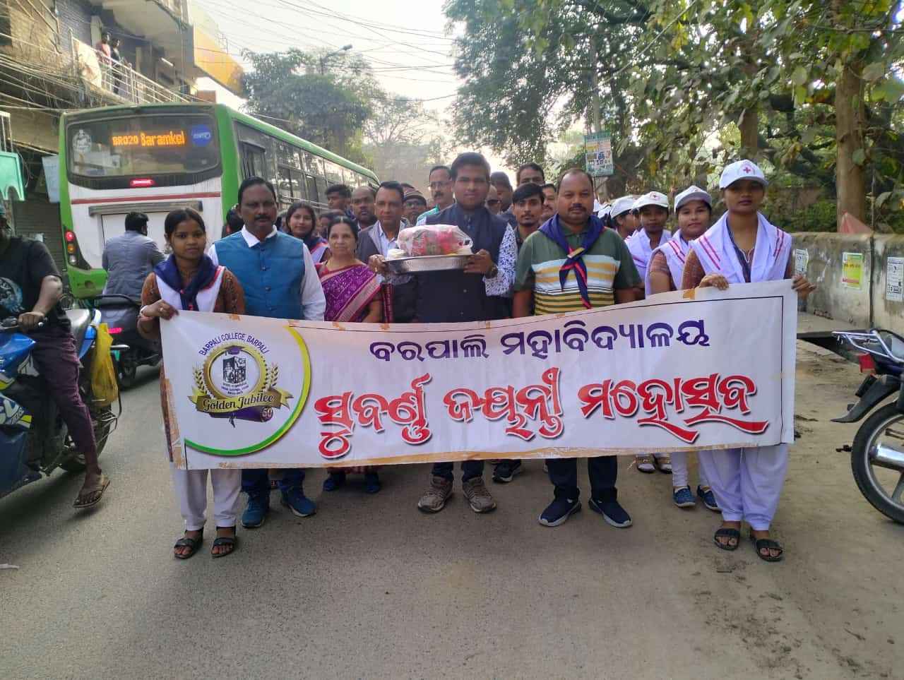 ବରପାଲି ମହାବିଦ୍ୟାଳୟର ତ୍ରିଦିବସୀୟ ସୁବର୍ଣ୍ଣ ଜୟନ୍ତୀ ସମାରୋହ ମହାଆଡ଼ମ୍ବରରେ ଉଦଘାଟିତ ହୋଇଯାଇଛି । ସକାଳ ଆଠଟାରେ ଏକ ଶୋଭାଯାତ୍ରା ବାହାରି ପ୍ରଥମେ ସମଲେଶ୍ଵରୀ ମନ୍ଦିର ଦେଇ ଗଙ୍ଗାଧରଙ୍କ ପୂର୍ଣ୍ଣାବୟବ ପ୍ରତିମୂର୍ତ୍ତି, ଗାନ୍ଧୀଛକସ୍ଥିତ ମହାତ୍ମା ଗାନ୍ଧୀଙ୍କ ଆବକ୍ଷ ପ୍ରତିମୂର୍ତ୍ତିରେ ପୁଷ୍ପମାଲ୍ୟ ଦେଇ ମହାବିଦ୍ୟାଳୟକୁ ପ୍ରତ୍ୟାବର୍ତ୍ତନ କରିଥିଲା । ଏହାର ପ୍ରଥମ ଅଧିବେଶନରେ ମହାବିଦ୍ୟାଳୟର ଅଧ୍ୟକ୍ଷା ସୁଶ୍ରୀ ଜୟନ୍ତୀ ଦାଶ, ସୁବର୍ଣ୍ଣ ଜୟନ୍ତୀ ସମାରୋହ କମିଟୀର ସଭାପତି ଡ. ରବୀନ୍ଦ୍ର ଗଡତିଆ ଏବଂ ସମ୍ପାଦକ ଅଧ୍ୟାପକ ସୁବଳ ମେହେର ମଞ୍ଚ ମଣ୍ଡନ କରିଥିଲେ । ଏଥିରେ ଆଇ. ଆଇ. ଏମ୍ ସମ୍ବଲପୁରର ନିର୍ଦ୍ଦେଶକ ପ୍ରଫେସର ଡ. ମହାଦେବ ଜୟସ୍ଵାଲ ବିଶିଷ୍ଟ ଅତିଥି ଭାବରେ ଯୋଗଦେଇ ଛାତ୍ରଛାତ୍ରୀଙ୍କୁ ଶିକ୍ଷାର ଉପଯୋଗିତା ସମ୍ପର୍କରେ ସାରଗର୍ଭକ ବକ୍ତବ୍ୟ ଦେଇଥିଲେ । ସମ୍ମାନିତ ଅତିଥି ଭାବରେ ଶ୍ରୀମତୀ ରୀନା ଥଇତ, ଅଧ୍ୟକ୍ଷା, ପଞ୍ଚାୟତ ସମିତି, ବରପାଲି ଯୋଗଦେଇଥିବାବେଳେ ଅନ୍ୟତମ ଅତିଥି ଭାବରେ ଶ୍ରୀଯୁକ୍ତ ଦିନେଶ ଗହୀର, ଅଧ୍ୟକ୍ଷ, ବିଜ୍ଞାପିତ ଅଞ୍ଚଳ ପରିଷଦ, ବରପାଲି ଯୋଗଦେଇ ପଚାଶ ବର୍ଷରେ ପାଦ ଥାପିଥିବା ବରପାଲି ମହାବିଦ୍ୟାଳୟର ସୁଦୀର୍ଘ ଇତିହାସ ସମ୍ପର୍କରେ ବକ୍ତବ୍ୟ ରଖିଥିଲେ । ଏ ଅବସରରେ ବରପାଲି ଅଞ୍ଚଳର ସୁଯୋଗ୍ୟ ସନ୍ତାନ ବିଶିଷ୍ଟ ବାନ୍ଧଶିଳ୍ପୀ ପଦ୍ମଶ୍ରୀ କୁଞ୍ଜବିହାରୀ ମେହେରଙ୍କୁ ମରଣୋତ୍ତର ଭାବେ ଏବଂ ବିଶିଷ୍ଟ ଶବ୍ଦନୃତ୍ୟ ଗୁରୁ ପଦ୍ମଶ୍ରୀ ଭାଗବତ ପଧାନଙ୍କୁ ମାନପତ୍ର ଓ ଉପଢୌକନ ଦେଇ ସମ୍ମାନିତ କରାଯାଇଥିଲା । ଏହା ସହିତ ସ୍ଵାଧୀନତା ସଂଗ୍ରାମୀ ଭାଗିରଥୀ ପଟ୍ଟନାୟକଙ୍କ ପରିବାର ତଥା ରତ୍ନପ୍ରସୂ ସେବତୀ ସାହୁ ଓ ସୁରୁ ସାହୁଙ୍କ ପରିବାରକୁ ସମ୍ବର୍ଦ୍ଧିତ କରାଯାଇଥିଲା । ଏଥିରେ ଅଧ୍ୟାପକ ସରୋଜ ଦାଶ ସଂଯୋଜନା କରିଥିବାବେଳେ ଶ୍ରୀଯୁକ୍ତ ସୁଦାମ ସାହୁ ଧନ୍ୟବାଦ ଅର୍ପଣ କରିଥିଲେ । ସହଯୋଗ କରିଥିଲେ ଅଧ୍ୟାପକ ଉତ୍ତର କୁମାର ଗଡତିଆ, ଡ. ସମ୍ବିତା ପ୍ରଧାନ, ଡ. ବିଶ୍ଵନାଥ ସାହୁ, ମନିଷା ଦାଶ ଏବଂ ସୁଧୀର ଗଡତିଆ ପ୍ରମୁଖ ।