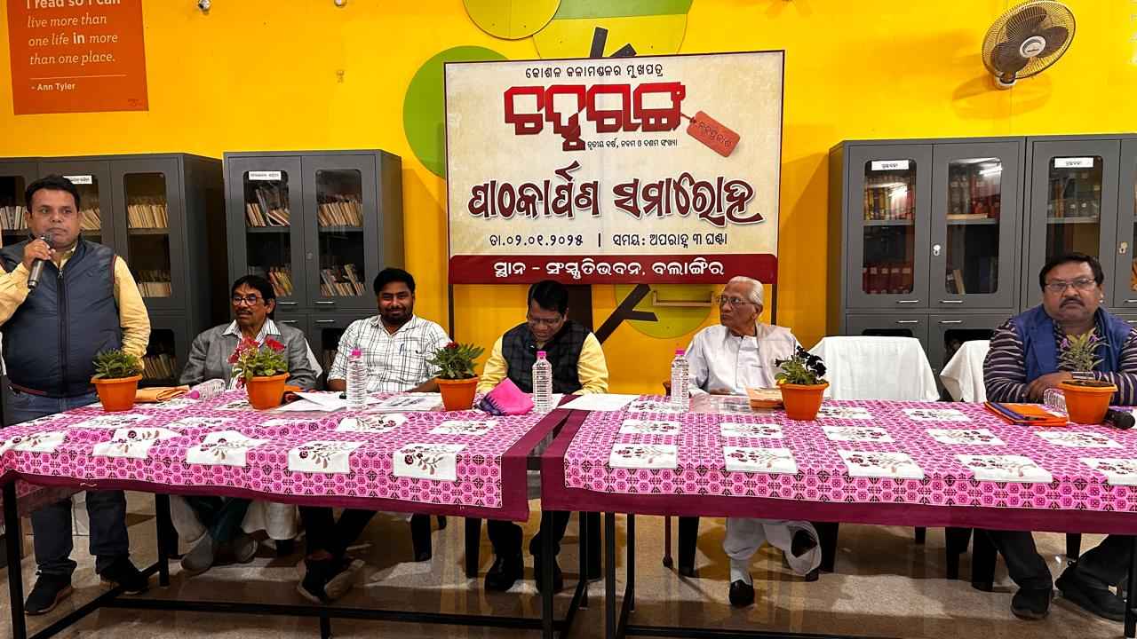 ବଲାଙ୍ଗୀର : ଜିଲ୍ଲା ସଂସ୍କୃତି ଭବନଠାରେ ଆୟୋଜିତ ଚତୁରଙ୍ଗ ନବପ୍ରକାଶର ୯ମ ଓ ୧୦ମ ସଂଖ୍ୟାର ପାଠକାର୍ପଣ ସମାରୋହ, କୋଶଳ କଳାମଣ୍ଡଳ ପରିଚାଳନା ସମିତି ସଦସ୍ୟ ପ୍ରଫେସର ମଧୁସୂଦନ ପତିଙ୍କ ସଭାପତିତ୍ୱରେ ଅନୁଷ୍ଠିତ ହୋଇଛି । ଏଥିରେ ବଲାଙ୍ଗୀର ଅତିରିକ୍ତ ଜିଲ୍ଲାପାଳ ଡକ୍ଟର ବିଜୟାନନ୍ଦ ସେଠୀ ମୁଖ୍ୟ ଅତିଥି ଭାବରେ ଯୋଗ ଦେଇ ମହତ ଉଦ୍ଦେଶ୍ୟ ନେଇ ଆରମ୍ଭ ହୋଇଥିବା ଚତୁରଙ୍ଗ ର ପ୍ରକାଶନ ପାଇଁ ସମସ୍ତେ ଏକନିଷ୍ଠ ଭାବରେ କାମ କରିବାକୁ ଆହ୍ଵାନ ଦେଇଥିଲେ । ସାଂପ୍ରତିକ ପରିବେଶ ପାଠକୀୟତାର ବିପରୀତମୁଖୀ ହେଉଥିବାରୁ ଚତୁରଙ୍ଗ କୁ ବିଭିନ୍ନ କାର୍ଯ୍ୟକ୍ରମ ମାଧ୍ୟମରେ ଓ ପାଠକ ସମାବେଶ ଦ୍ଵାରା ଆହୁରି ପାଠକାଭିମୁଖୀ କରିବାର ଆବଶ୍ୟକତା ରହିଛି ବୋଲି ପ୍ରଫେସର ମଧୁସୂଦନ ପତି ତାଙ୍କ ସଭାପତିତ୍ୱ ଅଭିଭାଷଣରେ ଆହ୍ଵାନ ଦେଇଛନ୍ତି। ଚତୁରଙ୍ଗର ସହ ସଂପାଦକ ସନାତନ ଠାକୁର ସଂପାଦକୀୟ ବିବରଣୀ ପାଠ କରିଥିଲେ । ସଂପାଦନା ମଣ୍ଡଳୀ ସଦସ୍ୟ ସନ୍ଦୀପ କୁମାର କୁଅଁରଙ୍କ ସଭା ପରିଚାଳନାରେ ପ୍ରାରମ୍ଭରେ ଜିଲ୍ଲା ସଂସ୍କୃତି ଅଧିକାରୀ ତଥା ଚତୁରଙ୍ଗ ର ପରିଚାଳନା ସଂପାଦକ ରଶ୍ମୀରଞ୍ଜନ ମିଶ୍ର ସମସ୍ତଙ୍କୁ ସ୍ଵାଗତ କରିଥିଲେ । ବୀରେନ୍ଦ୍ର କୁମାର ଝାଙ୍କର ଅତିଥି ପରିଚୟ ପ୍ରଦାନ କରିଥିଲେ । ଅନ୍ୟମାନଙ୍କ ମଧ୍ୟରେ ଉପଦେଷ୍ଟା ମଣ୍ଡଳୀ ସଦସ୍ୟ ପଦ୍ମଶ୍ରୀ ଡକ୍ଟର ଶ୍ରୀନିବାସ ଉଦ୍ଗାତା, ଡକ୍ଟର ଗୋପବନ୍ଧୁ ରଥ, ନାଟ୍ୟଭୂଷଣ ଜଗଦାନନ୍ଦ