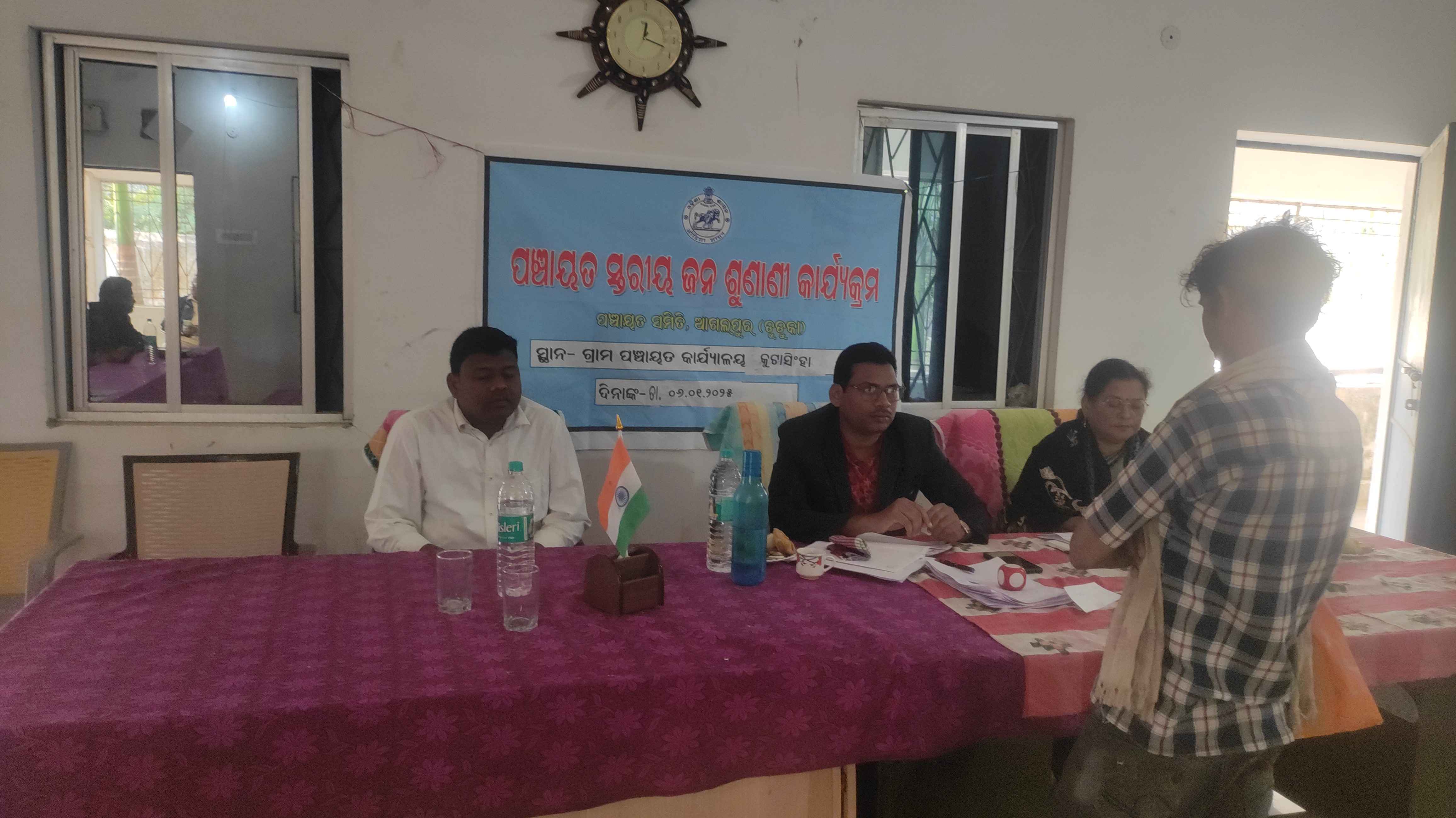 ଆଗଲପୁର, (ବିନୋଦ ଦୀପ) ଆଗଲପୁର ବ୍ଲକ ର କୁଟାସିଂହା ପଞ୍ଚାୟତ ରେ ପଞ୍ଚାୟତ ସ୍ତରୀୟ ଜନ ଶୁଣାଣି ଶିବିର ଅନୁଷ୍ଠିତ ହୋଇ ଯାଇଛି। ଗ୍ରାମ ପଞ୍ଚାୟତ ର ସରପଞ୍ଚ ଶ୍ରୀ ଡିଗ୍ରୀ ମେହେର ଓ କାର୍ଯ ନିର୍ବାହୀ ଅଧିକାରୀ ଶ୍ରୀ ପ୍ରଶାନ୍ତ ଯୋଶୀ ଙ୍କ ପ୍ରତ୍ୟକ୍ଷ ତତ୍ତ୍ଵାବଧାନରେ ଆଜିର ଜନ ଶୁଣାଣି କାର୍ଯକ୍ରମ ଅନୁଷ୍ଠିତ ହୋଇଥିଲା।ଆଜିର ଏହି ଜନ ଶୁଣାଣି କାର୍ଯକ୍ରମ ରେ ଅତିରିକ୍ତ ଗୋଷ୍ଠୀ ଉନ୍ନୟନ ଅଧିକାରୀ ଶ୍ରୀ ରୁଦ୍ର ପ୍ରତାପ ସୁନା ଯୋଗ ଦେଇଥିଲେ। ଆଗଲପୁର ଗୋଷ୍ଠୀ ସ୍ବାସ୍ଥ୍ୟ କେନ୍ଦ୍ର ଅଧିକାରୀ ଶ୍ରୀ ଧୀରେନ୍ଦ୍ର ମେହେର, ସି ଦି ପି ଓ ଶ୍ରୀମତୀ ଶୁଭଶ୍ରୀ ମିଶ୍ର, ବି ଏସ୍ ଓ ଶ୍ରୀ ସୁଶାନ୍ତ ମହାକୁର, ସ୍ବାସ୍ଥ୍ୟ ଓ ପରିମଳ ବିଭାଗର ଯନ୍ତ୍ରୀ ଶ୍ରୀ ଅରବିନ୍ଦ ମହାନ୍ତି, ସାଲେଭଟା ରାଜସ୍ବ ଅଧିକାରୀ ଶ୍ରୀ ମନୋଜ କୁମାର ଗହିର, ଜ୍ଞାନରଞ୍ଜନ ସା, ଆଲୋକ ମିଶ୍ର, ବି ପି ଏମ ଶ୍ରୀ ସରୋଜ କୁମାର ଧରୂଆ, ଅତିରିକ୍ତ ମତ୍ସ୍ୟ ଅଧିକାରୀ ଶ୍ରୀ ଧୁବଲ୍ କିଶୋର ମଲ୍ଲିକ, ଅତିରିକ୍ତ ଗୋଷ୍ଠୀ ଶିକ୍ଷା ଅଧିକାରୀ ଶ୍ରୀ ରଜନୀ କାନ୍ତ ସାହୁ,ଅରବିନ୍ଦ ପାଣ୍ଡେ ଯୋଗ ଦେଇଥିଲେ l