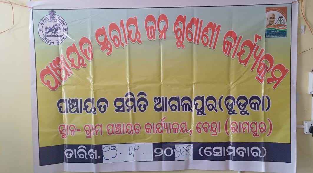 ଆଗଲପୁର, (ବିନୋଦ ଦୀପ) ଆଗଲପୁର ବ୍ଲକ ର କୁଟାସିଂହା ପଞ୍ଚାୟତ ରେ ପଞ୍ଚାୟତ ସ୍ତରୀୟ ଜନ ଶୁଣାଣି ଶିବିର ଅନୁଷ୍ଠିତ ହୋଇ ଯାଇଛି l ଗ୍ରାମ ପଞ୍ଚାୟତ ର ସରପଞ୍ଚ ଶ୍ରୀ ରବୀନ୍ଦ୍ର ସାହୁ ଓ କାର୍ଯ ନିର୍ବାହୀ ଅଧିକାରୀ ଙ୍କ ତତ୍ତ୍ଵାବଧାନରେ ଆଜିର ଜନ ଶୁଣାଣି କାର୍ଯକ୍ରମ ଅନୁଷ୍ଠିତ ହୋଇଥିଲା l ଆଜିର ଏହି ଜନ ଶୁଣାଣି କାର୍ଯ୍ୟକ୍ରମ ରେ ଅତିରିକ୍ତ ଗୋଷ୍ଠୀ ଉନ୍ନୟନ ଅଧିକାରୀ ଶ୍ରୀ ରୁଦ୍ର ପ୍ରତାପ ସୁନା ଯୋଗ ଦେଇଥିଲେ l ଆଗଲପୁର ଗୋଷ୍ଠୀ ସ୍ବାସ୍ଥ୍ୟ କେନ୍ଦ୍ର ଅଧିକାରୀ ଶ୍ରୀ ଧୀରେନ୍ଦ୍ର ମେହେର, ଆଗଲପୁର ଗୋଷ୍ଠୀ ଶିକ୍ଷା ଅଧିକାରୀ ଶ୍ରୀ ଶ୍ୟାମ ମେହେର,ବି ଏସ୍ ଓ ଶ୍ରୀ ସୁଶାନ୍ତ ମହାକୁର, ସ୍ବାସ୍ଥ୍ୟ ଓ ପରିମଳ ବିଭାଗର ଯନ୍ତ୍ରୀ ଶ୍ରୀ ଅରବିନ୍ଦ ମହାନ୍ତି ଓ ଦୁର୍ଗା ପ୍ରସାଦ ମିଶ୍ର, ଜ୍ଞାନରଞ୍ଜନ ସା, ବି ପି ଏମ ଶ୍ରୀ ସରୋଜ କୁମାର ଧରୂଆ, ଅତିରିକ୍ତ ମସ୍ୟ ଅଧିକାରୀ ଶ୍ରୀ ଧୁବଲ୍ କିଶୋର ମଲ୍ଲିକ,ଅରବିନ୍ଦ ପାଣ୍ଡେ ଯୋଗ ଦେଇଥିଲେ। ଏହାସହ ଯୋଗାଣ ବିଭାଗ , ର ସହଯୋଗୀ ଅଧିକାରୀ ମଧ୍ୟ ଉପସ୍ଥିତ ଥିଲେ l ଜନ ଶୁଣାଣି କାର୍ଯ୍ୟକ୍ରମ ରେ କମ୍ ସଂଖ୍ୟା ରେ ଅଭିଯୋଗକାରୀ ଆସି ଥିବାର ଦେଖିବାକୁ ମିଳିଥିଲା l