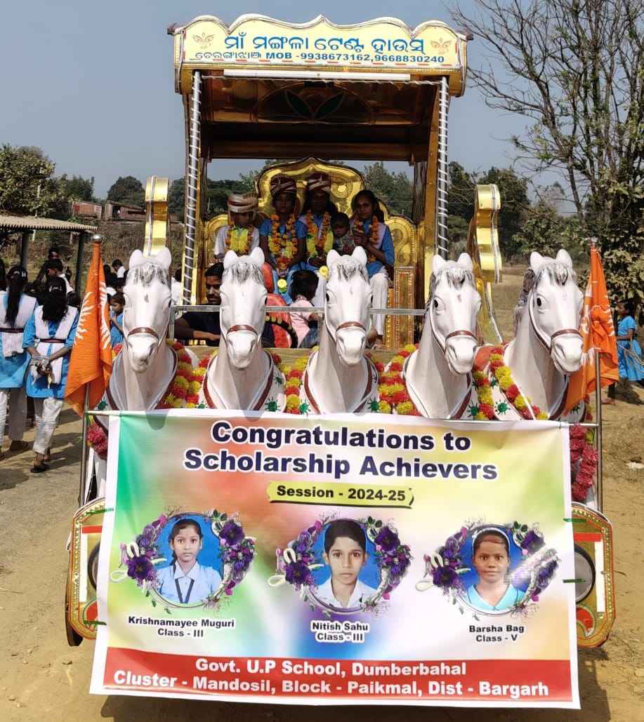 ବରଗଡ:(ନିରଞ୍ଜନ ତ୍ରିପାଠୀ)-ବିଦ୍ୟାଳୟ ଓ ଗଣଶିକ୍ଷା ବିଭାଗ ପକ୍ଷରୁ ଅନୁଷ୍ଠିତ ହୋଇଥିବା ୨୦୨୪-୨୫ ଶିକ୍ଷା ବର୍ଷର ମେଧାବୃତ୍ତି ପରୀକ୍ଷାରେ ପାଇକମାଲ ବ୍ଲକ ଡୁମ୍ଵେରବାହାଲ ଗ୍ରାମର ସରକାରୀ ଉଚ୍ଚ ପ୍ରାଥମିକ ବିଦ୍ୟାଳୟର ଏକକାଳୀନ ତିନି ଜଣ ଛାତ୍ରଛାତ୍ରୀ କୃତକାର୍ଯ୍ୟ ହେବା ସହ ମେଧାବୃତ୍ତି ପାଇବାକୁ ଯୋଗ୍ୟ ବିବେଚିତ ହୋଇଛନ୍ତି । ପଞ୍ଚମ ଶ୍ରେଣୀ ବୃତ୍ତି ପାଇବାକୁ ବର୍ଷା ବାଗ ଯୋଗ୍ୟ ବିବେଚିତ ହୋଇଥିବା ବେଳେ ତୃତୀୟ ଶ୍ରେଣୀର ବୃତ୍ତି ପାଇବାକୁ ନୀତିଶ ସାହୁ ଓ କ୍ରିଷ୍ଣାମୟୀ ମୁଗୁରୀ ଯୋଗ୍ୟ ବିବେଚିତ ହୋଇଛନ୍ତି । ଫଳରେ ଏହି ସ୍କୁଲର ଛାତ୍ରଛାତ୍ରୀ, ଶିକ୍ଷକ ଶିକ୍ଷୟିତ୍ରୀ ଓ ଅଭିଭାବକ ମହଲରେ ଖୁସିର ଲହରୀ ଖେଳିଯାଇଛି । ଏହି ଉପଲକ୍ଷେ ଉକ୍ତ କୃତି ଛାତ୍ରଛାତ୍ରୀଙ୍କୁ ସମ୍ବର୍ଦ୍ଧନା ଜଣାଇବା ପାଇଁ ଏକ ସୁସଜ୍ଜିତ ରଥରେ ବସାଇ ଛାତ୍ରଛାତ୍ରୀ, ଶିକ୍ଷକ ତଥା ଅଭିଭାବକମାନେ ଶୋଭାଯାତ୍ରାରେ ଗ୍ରାମ ପରିକ୍ରମା କରିଥିଲେ । ପରେ ସ୍କୁଲରେ ପ୍ରଧାନଶିକ୍ଷକ ହୃଷୀକେଶ ବାଗଙ୍କ ଅଧ୍ୟକ୍ଷତାରେ ଅନୁଷ୍ଠିତ ସମ୍ବର୍ଦ୍ଧନା ସଭାରେ ମାଣ୍ଡୋସିଲ ସିଆର୍ସି ବସୁଦେବ କୁମ୍ଭାର, ବରପାଲି ସିଆର୍ସି ବିକ୍ରମ କେଶରୀ ପଟେଲ, ସ୍କୁଲ ପରିଚାଳନା କମିଟି ସଭାପତି ବନବସ ସାହୁ ଅତିଥି ଭାବେ ଯୋଗଦେଇ କୃତି ଛାତ୍ରଛାତ୍ରୀଙ୍କୁ ଶୁଭେଚ୍ଛା ଓ ସମ୍ବର୍ଦ୍ଧନା ଜଣାଇବା ସହିତ ଏହି ସଫଳତା ପାଇଁ ଶିକ୍ଷକମାନଙ୍କୁ ମଧ୍ୟ ବିଶେଷ ଭାବେ ଧନ୍ୟବାଦ ଓ ସମ୍ବର୍ଦ୍ଧନା ଜଣାଇଥିଲେ । ମେଧାବୃତ୍ତି ପାଇବାରେ ଏହି ସଫଳତାର ଧାରା ପ୍ରତିବର୍ଷ ବଜାୟ ରଖିବା ଦିଗରେ ଗୁରୁତ୍ବ ଦେବାକୁ ଶିକ୍ଷକମାନଙ୍କ ଦୃଷ୍ଟି ଆକର୍ଷଣ କରିଥିଲେ । ଏହି ସଭାରେ ସହକାରୀ ଶିକ୍ଷକ ସୁଦାମ କନ୍ଧେର, ଡେଜଲିଙ୍ଗ ଦନ୍ତା, ସୌତମ ଛତର, ବାବୁଲାଲ ଧରୁଆ, ସ୍ଵେଚ୍ଛାସେବୀ ଶିକ୍ଷୟିତ୍ରୀ ତପସ୍ୱୀନି ପାଣ୍ଡେ ଙ୍କ ସହିତ ଅଭିଭାବକମାନେ ଯୋଗ ଦେଇଥିଲେ ।