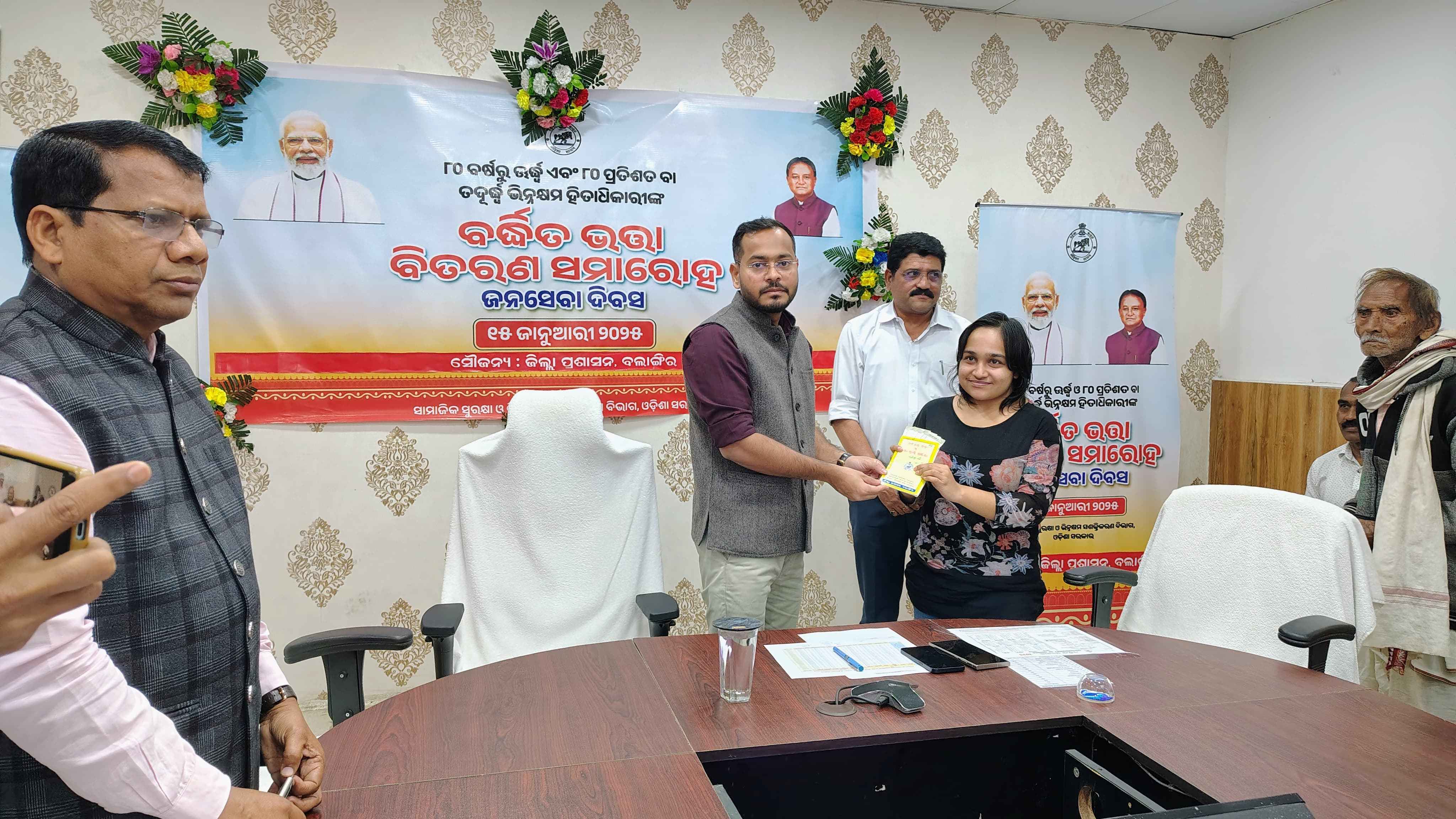ବଲାଙ୍ଗିର : ଜନସେବା ଦିବସ ଅବସରରେ ଆୟୋଜିତ ବର୍ଦ୍ଧିତ ଭତ୍ତା ବିତରଣ ସମାରୋହରେ ହିତାଧିକାରୀଙ୍କୁ ବଦ୍ଧିତ ଭତ୍ତା ବିତରଣ ଉତ୍ସବ ଅନୁଷ୍ଠିତ ହୋଇଛି । ମୁଖ୍ୟ ଅତିଥି ଭାବେ ଜିଲ୍ଲାପାଳ ଗୌରୱ ଶୀୱାଜୀ ଇସାଲୱାର ଯୋଗ ଦେଇଥିଲେ । ବୃଦ୍ଧବୃଦ୍ଧା ପରିବାରର ସ୍ତମ୍ଭ ତଥା ସମାଜର ଦମ୍ଭ ବୋଲି କହିବା ସହ ଅବଶିଷ୍ଟ ଯୋଗ୍ୟ ବ୍ୟକ୍ତିମାନଙ୍କୁ ବଦ୍ଧିତ ଭତ୍ତା ପ୍ରଦାନ ଦିଗରେ ପଦକ୍ଷେପ ନେବାକୁ ବିଭାଗୀୟ ଅଧିକାରୀଙ୍କୁ ପରାମର୍ଶ ଦେଇଛନ୍ତି। ଅସ୍ଵାନ ହଲ ଠାରେ ଆୟୋଜିତ ଏହି ଉତ୍ସବରେ ବର୍ଦ୍ଧିତ ଭତ୍ତା ବିତରଣ ସମାରୋହ