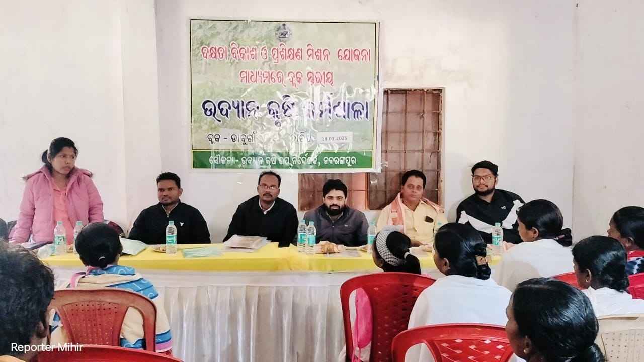 ନବରଙ୍ଗପୁର :- ମିହିର ଶଙ୍କର ପାତ୍ର) ଉଦ୍ୟାନ କୃଷି ବିଭାଗ ତରଫରୁ ଡାବୁଗାଁ ରେ ଦୁଇ ଦିନ ଧରି ଚାଲିଥିବା ଉଦ୍ୟାନ କୃଷି କର୍ମଶାଳା ଉଦଯାପିତ ହୋଇଯାଇଛି । ଦୁଇଦିନ ଧରି ଚାଲିଥିବା ଏହି କାର୍ଯ୍ୟକ୍ରମ ରେ ଉଦ୍ୟାନ କୃଷି ଅଧିକାରୀ ରବି ଶଙ୍କର ପଣ୍ଡାଙ୍କ ସଭାପତିତ୍ବ କରିଥିଲେ। କାର୍ଯ୍ୟକ୍ରମ ରେ ପ୍ରଥମରେ ଯୋଗଦେଇଥିଲେ ଉନ୍ନୟନ ଅଧିକାରୀ ଶରତ ମାଝୀ, କୃଷକ ପ୍ରତିନିଧି ତଥା ରାଜ୍ୟ କୃଷକ ମୋର୍ଚ୍ଚା କାର୍ଯ୍ୟକାରୀ ସଭ୍ୟ ଜୟନ୍ତ କୁମାର ପାତ୍ର ଏବଂ ବିଧାୟକ ପ୍ରତିନିଧି ଏମ୍ ବୁଲୁ ରାଓ। ଉଦଯାପିତ ଉତ୍ସବ ରେ ଯୋଗଦେଇ ଥିଲେ ଜିଲ୍ଲାପରିଷଦ ସଭ୍ୟ ଗୁପ୍ତ ବିଷୟୀ, ମେଦନା ପଞ୍ଚାୟତ ର ପୂର୍ବତନ ସରପଞ୍ଚ ହିରଣ୍ୟ ମାଝୀ ଏବଂ କୃଷି ସମ୍ବନ୍ଧୀୟ ଅନ୍ୟାନ୍ୟ ବିଭାଗ ର ଅଧିକାରୀମାନେ ଯଥା ସହକାରୀ କୃଷି ଅଧିକାରୀ ସୌମେନ୍ଦ୍ର ବିଶ୍ଵାସ, ସହକାରୀ ପ୍ରାଣୀ ଚିକିତ୍ସକ ଡା. ଏଲ. ଲୋକନାଥ ରେଡ୍ଡୀ, ବରିଷ୍ଠ ମତ୍ସ୍ୟ ବୈଷୟିକ ସହାୟକ ସଙ୍ଗୀତା ସାମଲ, ମୃତ୍ତିକା ସଂରକ୍ଷଣ ସଂପ୍ରସାରଣ କର୍ମୀ ନିରୋଜ ମଲ୍ଲିକ,।ବ୍ଲକର ଅଧିକାଂଶ ପଞ୍ଚାୟତର ପ୍ରମୁଖ ଚାଷୀ, କ୍ଷୁଦ୍ର ଚାଷୀ ଓ ନାମମାତ୍ର ଚାଷୀ ଉପସ୍ଥିତ ଥିଲେ। ବିଭିନ୍ନ ବିଭାଗ ର ଅଧିକାରୀ ମାନେ ସରକାରଙ୍କ ବିଭିନ୍ନ ଯୋଜନା ଗୁଡିକ ବିଷୟରେ ବୁଝାଇ ଥିଲେ।ଏହି କାର୍ଯ୍ୟକ୍ରମ ରେ ଆଜି ସାମ୍ବାଦିକ ସଙ୍ଘର ସମ୍ପାଦକ ମିହିର ଶଙ୍କର ପାତ୍ର ଏବଂ ଉପସଭାପତି ଗଗନ ଗନ୍ତାୟତ କୁ ଉଦ୍ୟାନ କୃଷି ଅଧିକାରି ଉପଧକନ ଦେଇ ସଂମ୍ମାନିତ କରିଥିଲେ।