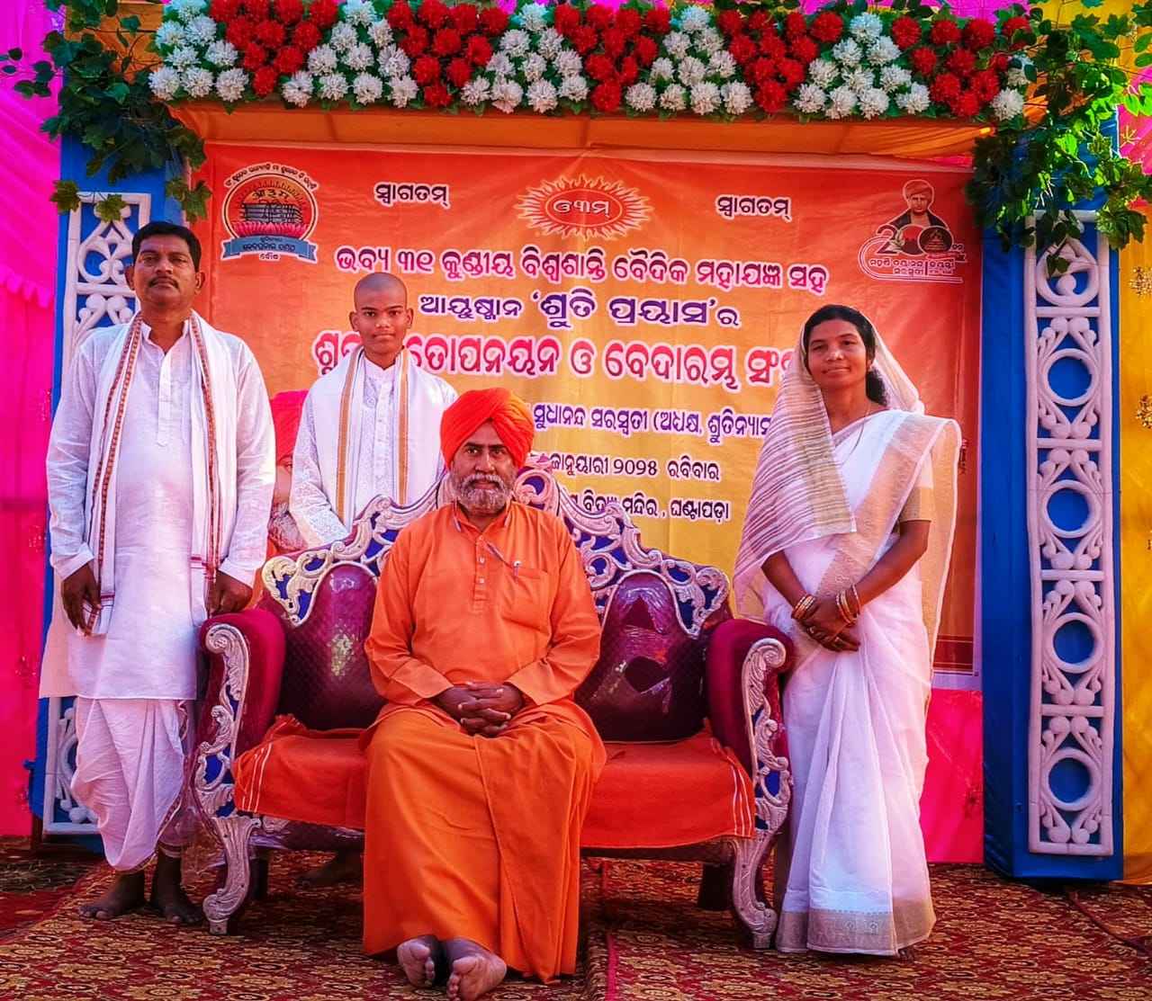 କଣ୍ଟାମାଳ(ଜୟ କୁମାର ମହାରଣା): ବୌଦ୍ଧ ଜିଲ୍ଲା କଣ୍ଟାମାଳ ବ୍ଲକ ଘଣ୍ଟାପଡ଼ାସ୍ଥିତ ସରସ୍ଵତୀ ଶିଶୁବିଦ୍ୟାମନ୍ଦିର ପ୍ରାଙ୍ଗଣରେ ଅଞ୍ଚଳରେ ପ୍ରଥମ ସଂସ୍କାରିତ ଭବ୍ୟ ୩୧ କୁଣ୍ଡୀୟ ବିଶ୍ଵଶାନ୍ତି ବୈଦିକ ମହାଯଜ୍ଞ ଓ ବେଦାରମ୍ଭ ସଂସ୍କାର ଅନୁଷ୍ଠିତ ହୋଇଯାଇଛି l ଜଗତର କଲ୍ୟାଣ ନିମନ୍ତେ ଅଧ୍ୟକ୍ଷ ପୂଜ୍ୟ ସ୍ଵାମୀ ସୁଧାନନ୍ଦ ସରସ୍ଵତୀ ଶ୍ରୁତିନ୍ୟାସ ଙ୍କ ବ୍ରହ୍ମତ୍ଵ ରେ ଆୟୋଜିତ ଉକ୍ତ ବୈଦିକ କାର୍ଯ୍ୟକ୍ରମ ରେ ଆମ୍ବଗାଁ ପଞ୍ଚାୟତ କୁରୁକୁପା ନିବାସୀ ଶ୍ରୀମତୀ ମୀନତି ଗରିଆ ଓ ଶ୍ରୀଯୁକ୍ତ ମଧୁସୂଦନ ଘିବେଲାଙ୍କ ଏକମାତ୍ର ପୁତ୍ର ଆୟୁଷ୍ମାନ ଶ୍ରୁତି ପ୍ରୟାସ ର ଶୁଭ ବ୍ରତୋପନୟନ ଓ ବେଦାରମ୍ଭ ସଂସ୍କାର ବୈଦିକ ରୀତିନୀତି ରେ ସମ୍ପନ୍ନ ହୋଇଛି l କାର୍ଯ୍ୟକ୍ରମରେ ବହୁ ଶ୍ରଦ୍ଧାଳୁ ଓ ଜ୍ଞାନପିପାସୁ ଯୋଗଦେଇଥିଲେ I ଏହି କାର୍ଯ୍ୟକ୍ରମରେ ବ୍ରହ୍ମାପୁଜ୍ୟ ସ୍ଵାମୀଜୀ ମହାରାଜ ମନୁଷ୍ୟ ଜୀବନରେ ଯଜ୍ଞ ର ମହତ୍ତ୍ୱ ,ବ୍ରତୋପନୟନ ଓ ବେଦାରମ୍ଭ ସଂସ୍କାର ର ଆବଶ୍ୟକତା ତଥା ନିଜ ଜୀବନ ନିର୍ମାଣ ଉପରେ ବେଦ ବର୍ଣ୍ଣିତ ବାଣୀ ମାର୍ଗଦର୍ଶନ କରିଥିଲେ I ୩୧ ଯୋଡି ଯଜମାନଙ୍କ ସହ ଉକ୍ତ କାର୍ଯ୍ୟକ୍ରମରେ ଭାଗ ନେଇ ଥିବା ଶତାଧିକ ବେଦ ପ୍ରେମୀ ସ୍ଵାମୀଜୀ ଙ୍କ ପ୍ରବଚନ ରେ ଅନୁପ୍ରାଣିତ ହୋଇ ନିଜ ଜୀବନରୁ କୁସଂସ୍କାର, କୁନୀତି ଦୂର କରିବା ପାଇଁ ଶପଥ ନେଇଥିଲେ I ବେଦ ପ୍ରଚାର ସମିତି ବୌଦ୍ଧ ଓ ସୋନପୁରର କାର୍ଯ୍ୟକର୍ତ୍ତା ମାନେ ଭଜନ ଓ ଯଜ୍ଞ ପରିଚାଳନା ରେ ସହଯୋଗ କରିଥିଲେ I