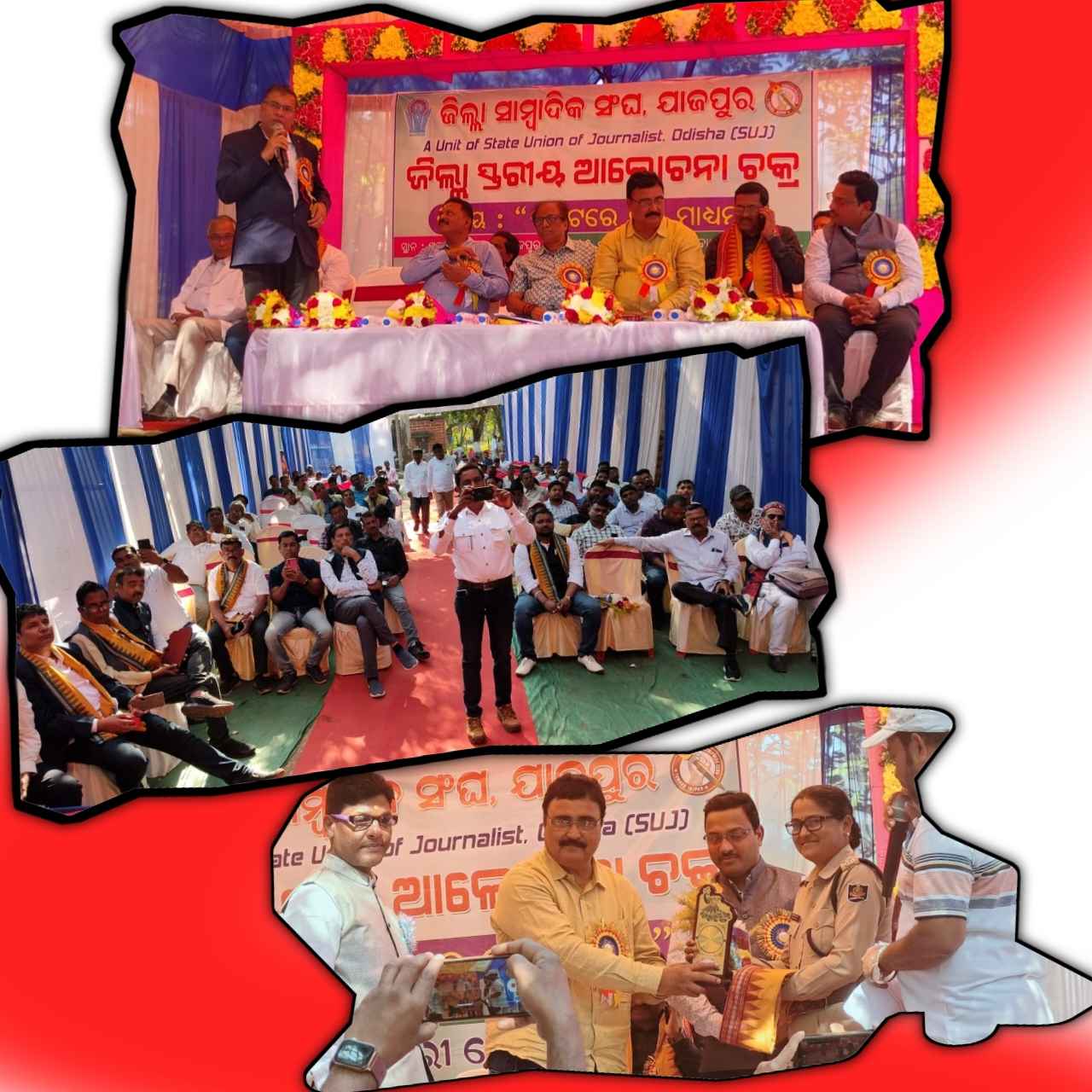 ରାଜ୍ୟ ସଭାପତି କୈଳାଶ ଚନ୍ଦ୍ର ନାୟକ, ସ୍ଵତନ୍ତ୍ର ଅତିଥି ଭାବେ ଦାନଗଦି ବ୍ଲକ ବିଡ଼ିଓ ପ୍ରଦୀପ କୁମାର ସେଠୀ, ସମ୍ମାନୀତ ଭାବେ ଅତିଥି ଆଇଆଇଟି ପ୍ରଫେସର ଦୁଃଖବନ୍ଧୁ ସାହୁ, ଟାଟା ଷ୍ଟିଲ ୟୁନିଟ ହେଡ୍ ଜୟନ୍ତ କୁମାର ତ୍ରିପାଠୀ, ଜାତୀୟ ସାମ୍ବାଦିକ ୟୁନିୟନର ସ୍ଵତନ୍ତ୍ର ନିମନ୍ତ୍ରିତ ସଭ୍ୟ ଚିନ୍ତାମଣି ପାଢ଼ୀ ପ୍ରମୁଖ ଯୋଗ ଦେଇ ଥିବା ବେଳେ ଜିଲ୍ଲା ଶାଖା ସଭାପତି ସୁବାଷ ଧଳ ଅଧ୍ୟକ୍ଷତା କରିଥିଲେ। ଜିଲ୍ଲା ସାଧାରଣ ସମ୍ପାଦକ ଅବିନେଶ୍ଵର ଶତପଥୀ, ମହାଗିରୀ ପ୍ରେସ କ୍ଲବ ସଭାପତି ହରିହର ବାରିକ, ସାଧାରଣ ସମ୍ପାଦକ ମଳୟ କୁମାର ରାଉତ ପ୍ରମୁଖ ମଂଚାସୀନ ରହି "ସଙ୍କଟରେ ଗଣମାଧ୍ୟମ" ଶୀର୍ଷକ ବିଷୟବସ୍ତୁ ଉପରେ ଆଲୋଚନା କରିଥିଲେ।