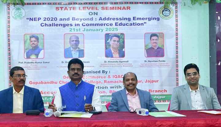 ଯାଜପୁର ଜିଲ୍ଲା ରୀ ରାମଚନ୍ଦ୍ରପୁର ସ୍ଥିତ ଜିଲ୍ଲାର ଦ୍ଵିତୀୟ ପୁରାତନ ଗୋପବନ୍ଧୁ ଚୌଧୁରୀ ମହା ବିଦ୍ୟାଳୟରେ ବାଣିଜ୍ୟ ବିଭାଗର ରାଜ୍ୟ ସ୍ତରୀୟ ସେମିନାର ଅନୁଷ୍ଠିତ ହୋଇ ଯାଇଛି । ନୂତନ ଶିକ୍ଷାନୀତିର ବାଣିଜ୍ୟ ଶିକ୍ଷା ଉପରେ ପ୍ରଭାବ ଶୀର୍ଷକ ଆଲୋଚନା ଚକ୍ରରେ ମହାବିଦ୍ୟାଳୟ ଅଧ୍ୟକ୍ଷ ପ୍ରଫେସର ପ୍ରବୋଧ କୁମାର ସାମଲ ଅଧ୍ୟକ୍ଷତା କରିଥିଲେ । କାର୍ଯ୍ୟକ୍ରମରେ ମୁଖ୍ୟ ଅତିଥି ଭାବେ ଉତ୍କଳ ବିଶ୍ୱ ବିଦ୍ୟାଳୟ ବାଣିଜ୍ୟ ବିଭାଗ ମୁଖ୍ୟ ଡ଼ଃ ରବୀନ୍ଦ୍ର କୁମାର ସ୍ୱାଇଁ, ସମ୍ମାନିତ ଅତିଥି ଭାବେ କିଟ ବିଶ୍ଵବିଦ୍ୟାଳୟର ଆସିଷ୍ଟାଣ୍ଟ ପ୍ରଫେସର ଡ଼ଃ ହିମାଂଶୁ ଅଗ୍ରୱାଲ ଯୋଗଦାନ କରିଥିଲେ । ଗୋପବନ୍ଧୁ ଚୌଧୁରୀ କଲେଜ ବାଣିଜ୍ୟ ବିଭାଗ ମୁଖ୍ୟ ଡ଼ଃ ନରୋତ୍ତମ ପରିଡା ସ୍ୱାଗତ ଭାଷଣ ପ୍ରଦାନ କରିବା ସହିତ ଅତିଥି ପରିଚୟ ପ୍ରଦାନ କରିଥିଲେ । ଆଲୋଚନା ଚକ୍ରରେ ଅତିଥି ମାନେ ସାମଗ୍ରିକ ସମୟରେ ଓ ନୂତନ ଶିକ୍ଷା ବ୍ୟବସ୍ଥାରେ ବାଣିଜ୍ୟ ଶିକ୍ଷାର ଗୁରୁତ୍ୱପୂର୍ଣ୍ଣ ଭୂମିକା ରହିଥିବା ମତ ଦେଇଥିଲେ । ଏହା ସହିତ ନୂତନ ଶିକ୍ଷା ବ୍ୟବସ୍ଥାରେ ନୂଆ ବୈଷୟିକ ଜ୍ଞାନ କୌଶଳ ଦ୍ୱାରା ବାଣିଜ୍ୟ ଶିକ୍ଷା ଅଧିକ ଗତିଶୀଳ ହେବ ବୋଲି ଆଶା ବ୍ୟକ୍ତ କରିବା ସହିତ ନୂଆ ପିଢୀର ଛାତ୍ରଛାତ୍ରୀ ବାଣିଜ୍ୟ ଶିକ୍ଷା ଗ୍ରହଣ କରିବାକୁ ପରାମର୍ଶ ଦେଇଥିଲେ । ଅଧ୍ୟାପିକା ସସ୍ମିତା ମଲ୍ଲିକ କାର୍ଯ୍ୟକ୍ରମ ପରିଚାଳନା କରିଥିଲା ବେଳେ ଅଧ୍ୟାପକ ସୁନୀଲ କୁମାର ସେଠୀ ଧନ୍ୟବାଦ ପ୍ରଦାନ କରିଥିଲେ । ଇଂରାଜୀ ବିଭାଗ ଅଧ୍ୟାପିକା ଦୀପିକା ସିଂ ଙ୍କ ସହିତ ବାଣିଜ୍ୟ ବିଭାଗର ଛାତ୍ରଛାତ୍ରୀ ତୁଷାର କୁମାର ମଲ୍ଲିକ, ଅମିତ କୁମାର ଶତପଥୀ, ବିଷ୍ଣୁ ପ୍ରସାଦ ପ୍ରଧାନ, ଇପ୍ସିତା ଘଡାଇ, ଲକ୍ଷ୍ମୀପ୍ରିୟା ମଲ୍ଲିକ ପ୍ରମୁଖ କାର୍ଯ୍ୟକ୍ରମର ସଫଳତାରେ ସହଯୋଗ କରିଥିଲେ ।