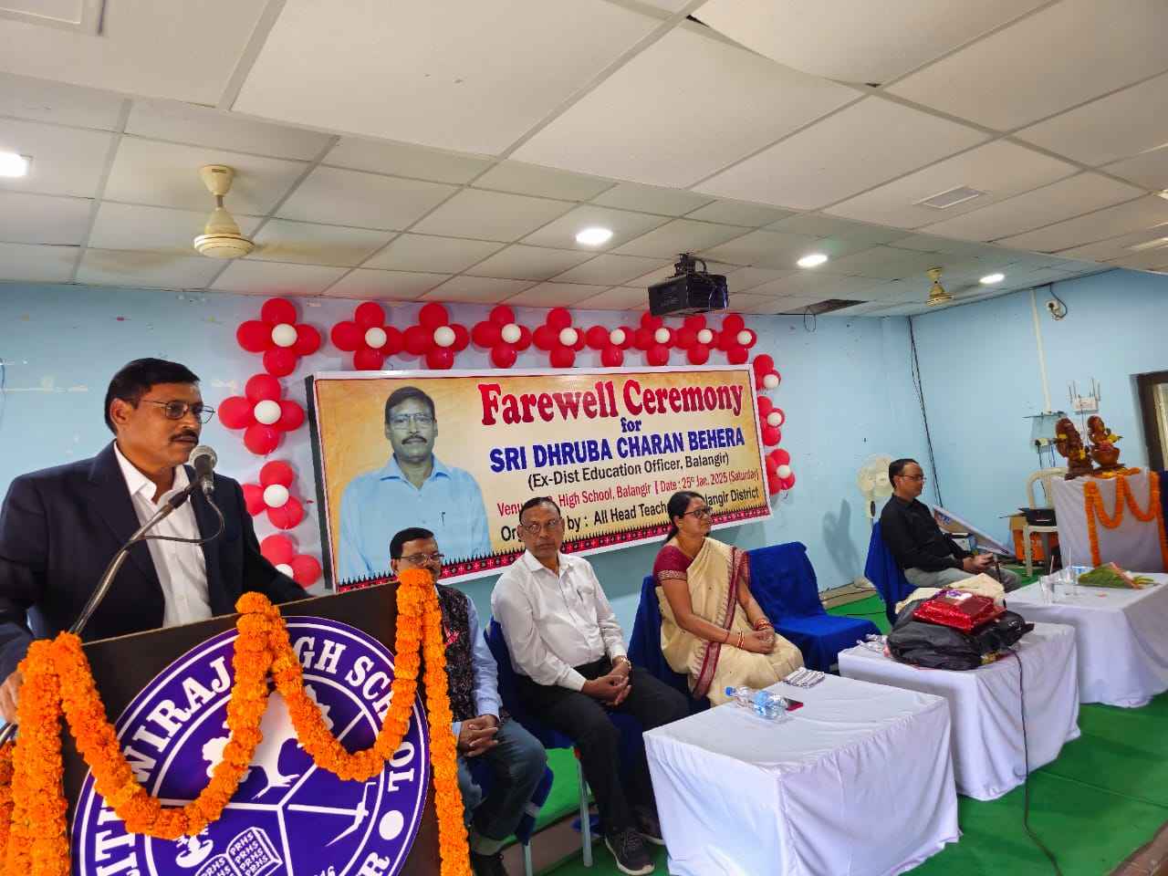 ବଲାଙ୍ଗୀର- ସ୍ଥାନୀୟ ପୃଥ୍ବୀରାଜ ଉଚ୍ଚ ବିଦ୍ୟାଳୟର ସଭାଗୃହ ଠାରେ ଜିଲ୍ଲାର ୧୪ଗୋଟି ବ୍ଲକ ଓ ପୌରାଞ୍ଚଳର ସମସ୍ତ ପ୍ରଧାନଶିକ୍ଷକ ଶିକ୍ଷୟତ୍ରୀମାନଙ୍କ ଦ୍ବାରା ପୂର୍ବତନ ଜିଲ୍ଲା ଶିକ୍ଷାଧିକାରୀ ଧୃବଚରଣ ବେହେରାଙ୍କୁ ବିଦାୟକାଳୀନ ସମ୍ଵର୍ଦ୍ଧନା ପ୍ରଦାନ କରାଯାଇଥିଲା। ଅତିରିକ୍ତ ଜିଲ୍ଲା ଶିକ୍ଷାଧିକାରୀ କେଶବ ଚରଣ ମେହେର,ପ୍ରଧାନଶିକ୍ଷକ ସନ୍ତୋଷିନୀ ସେଠୀ, ରମାଇ ହାଇସ୍କୁଲ ର ପ୍ରଧାନଶିକ୍ଷକ ଶ୍ଯାମସୁନ୍ଦର ବିଶ୍ବାଳ,ଟିଟିଲାଗଡ ସରକାରୀ ବାଳିକା ଉଚ୍ଚ ବିଦ୍ୟାଳୟର ପ୍ରଧାନଶିକ୍ଷକ ସୁବାଷ ଚନ୍ଦ୍ର ଦାଶ ମଞ୍ଚାସୀନ ଥିଲେ। ପ୍ରଧାନଶିକ୍ଷକ ମାନଙ୍କ ଦ୍ବାରା ଶ୍ରୀବେହେରାଂକୁ ପୁଷ୍ପଗୁଚ୍ଛ,ମାନପତ୍ର ଓ ଉପଢୌକନ ଦେଇ ସମ୍ବର୍ଦ୍ଧିତ କରା ଯାଇଥିଲା । ସଭାରେ ଶ୍ରୀବେହେରା କରୋନା ଭଳିଆ କଠିନ ପରିସ୍ଥିତିରେ ସମସ୍ତ ପ୍ରଧାନଶିକ୍ଷକ,ପ୍ରଧାନଶିକ୍ଷୟତ୍ରୀ, ସହକାରୀ ଶିକ୍ଷକ ଓ ଶିକ୍ଷୟିତ୍ରୀମାନଙ୍କ ସହଯୋଗରେ ଛାତ୍ରଛାତ୍ରୀମାନଙ୍କ