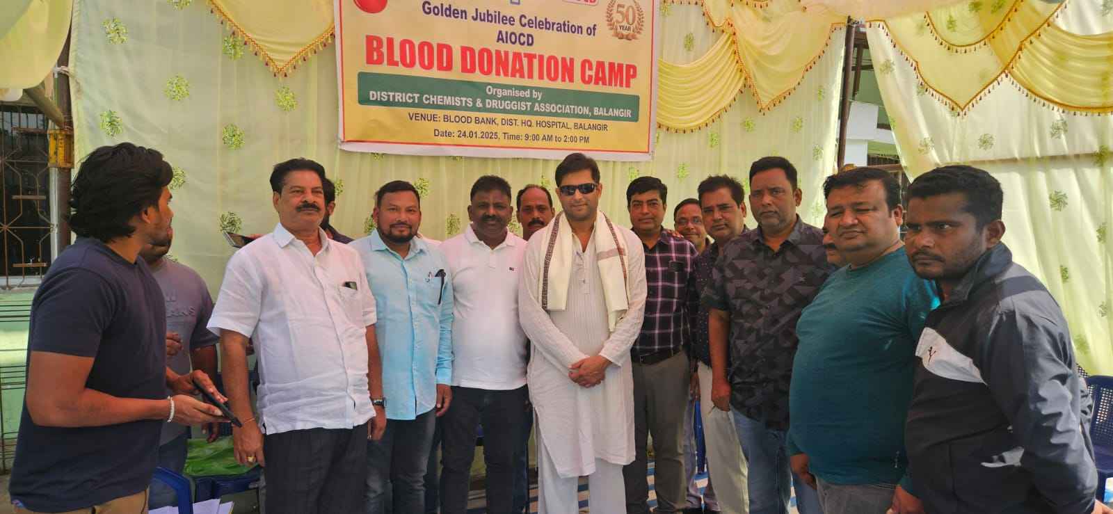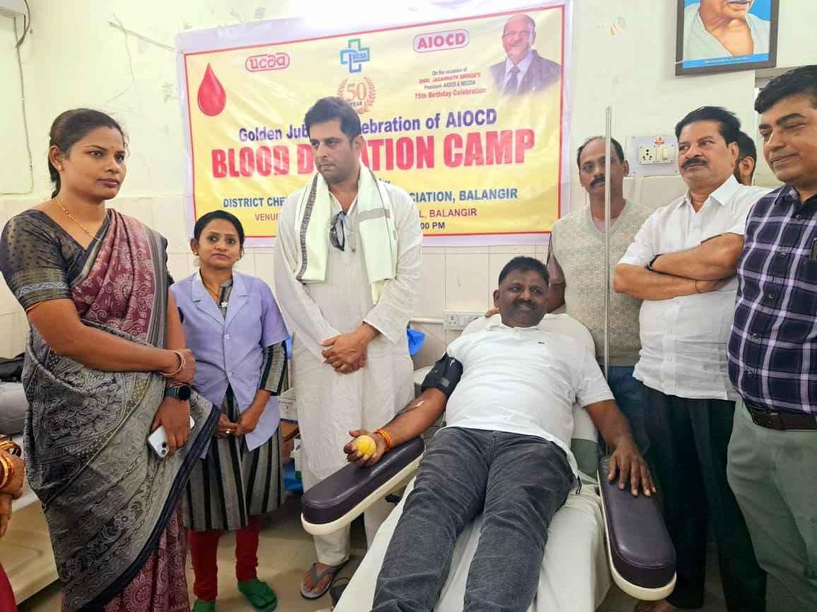 ବଲାଙ୍ଗୀର(ପ୍ରେରଣା ଖବର): ସର୍ବଭାରତୀୟ କେମିଷ୍ଟ ଓ ଡ୍ରଗିଷ୍ଟ ଆସୋସିଏସନ୍ ର ୫୦ ବର୍ଷ ପୂର୍ତ୍ତି ଉପଲକ୍ଷେ ସାରା ଦେଶରେ ରକ୍ତଦାନ ଶିବିର ଆୟୋଜିତ ହୋଇଛି ଏହି କ୍ରମେ ଆଜି ବଲାଙ୍ଗୀର ଜିଲ୍ଳା କେମିଷ୍ଟ ଓ ଡ୍ରଗିଷ୍ଟ ଏସୋସିଏସନ ତରଫରୁ ସଭାପତି ଲୋଟସ ଷଡ଼ଙ୍ଗୀଙ୍କ ଅଧକ୍ଷତାରେ ସ୍ଥାନୀୟ ଜିଲ୍ଲା ରକ୍ତ ଭଣ୍ଡାର ଠାରେ ଏକ ମେଗା ସ୍ଵେଚ୍ଛାକୃତ ରକ୍ତଦାନ ଶିବିର ଆୟୋଜିତ ହୋଇଥିଲା l ଏହି ଶିବିରକୁ ମୁଖ୍ୟ ଅତିଥି ଭାବରେ ମାନ୍ୟବର ବଲାଙ୍ଗୀର ବିଧାୟକ କଳିକେଶ ସିଂଦେଓ ଯୋଗଦେଇ ଉଦଘାଟନ କରିଥିବା ବେଳେ ସମ୍ମାନିତ ଅତିଥି ଭାବରେ ଜିଲ୍ଳା ପରିଷଦ ଅଧକ୍ଷା