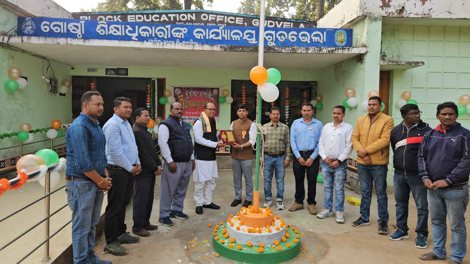 ଗୁଡଭେଲା(ପଞ୍ଚାନନ ନାଏକ): ଗୁଡଭେଲା ବ୍ଲକ୍ ଗୋଷ୍ଠୀ ଶିକ୍ଷା ଅଧିକାରୀଙ୍କ କାର୍ଯ୍ୟାଳୟ ଠାରେ ୭୬ତମ ସାଧାରଣତନ୍ତ୍ର ଦିବସ ମହା ସମାରୋହରେ ପାଳିତ ହୋଇ ଯାଇଛି। ମୁଖ୍ୟ ଅତିଥି ଭାବେ ବିଇଓ ରୁଷିଆ ମେହେର ଯୋଗ ଦେଇ ସମ୍ମିଳିତ ଜନତାଙ୍କୁ ଉଦ୍ବୋଧନ ଦେଇଥିଲେ। ସମ୍ମାନିତ ଅତିଥି ଭାବେ ଏବିଇଓ ସୁରେନ୍ଦ୍ର ସୁନା ଓ ବିପିନ ବାଗ ଯୋଗ ଦେଇଥିଲେ। କାର୍ଯ୍ୟାଳୟ ର ସମସ୍ତ ଅଧିକାରୀ ତଥା ସମସ୍ତ ସିଆର୍ସିସି ଉପସ୍ଥିତ ଥିଲେ । ଏହି ଅବସରରେ ଗୋଷ୍ଠୀ ସହାୟତା କ୍ଷେତ୍ରରେ ଉଲ୍ଲେଖନୀୟ ଅବଦାନ ପାଇଁ ତୁଷୁରା ସରକାରୀ ବାଳକ ଉଚ୍ଚ ପ୍ରାଥମିକ ବିଦ୍ୟାଳୟ ର ପୂର୍ବଛାତ୍ର ରାଧାରମଣ କେଡିଆଙ୍କୁ ବିଇଓ ଶ୍ରୀ ମେହେର ପ୍ରଶସ୍ତିପତ୍ର ଓ ଅଙ୍ଗବସ୍ତ୍ର ପ୍ରଦାନ କରି ଉଚ୍ଛ୍ବସିତ ସମ୍ବର୍ଦ୍ଧନା ଜ୍ଞାପନ କରିଥିଲେ ।
