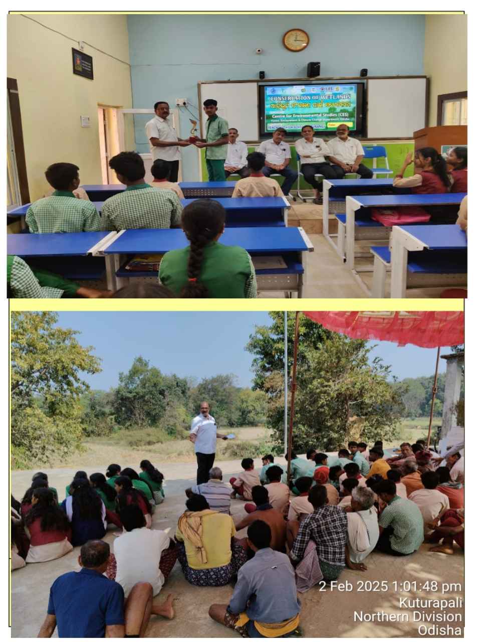 ଛାତ୍ରଛାତ୍ରୀମାନଙ୍କୁ ଆର୍ଦ୍ର ଭୂମି ସଂରକ୍ଷଣ ସମ୍ପର୍କିତ ଶିକ୍ଷା ପ୍ରଦାନ ସହିତ ପ୍ରବନ୍ଧ, ଚିତ୍ରାଙ୍କନ,ଓ କୁଇଜ୍ ପ୍ରତିଯୋଗିତା ଅନୁଷ୍ଠିତ ହୋଇ ପୁରସ୍କୃତ କରାଯାଇଥିଲା। ସମସ୍ତ କାର୍ଯ୍ୟକ୍ରମକୁ ବିଦ୍ୟାଳୟର ଶିକ୍ଷକ ମଦନ ସାହୁ, ସଦାନନ୍ଦ ସାହୁ ସୁରେଶ କୁମାର ପଟେଲ ସହଯୋଗ କରିଥିଲେ।