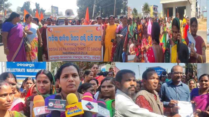 ଭାରତୀୟ ମଜଦୁର ସଙ୍ଘ ଦ୍ୱାରା ପରିଚାଳିତ ଓଡିଶା ଜୀବିକା ମିଶନ ଶକ୍ତି ଇ ସି ସଙ୍ଘ ତରଫରୁ ପୋଲିସ ପଡିଆ ଠାରୁ ଏକ ଶୋଭା ଯାତ୍ରା ବାହାରି ଜିଲ୍ଲାପାଳଙ୍କ କାର୍ଯ୍ୟାଳୟରେ ପହଂଚି ଭିକ୍ଷୁବ ପ୍ରଦର୍ଶନ କରି ମାନ୍ୟବର ମୁଖ୍ୟମନ୍ତ୍ରୀ ଓ ଉପମୁଖ୍ୟ ମନ୍ତ୍ରୀ ତଥା ଶିଶୁ ବିକାଶ ଓ ମିଶନଶକ୍ତି ବିଭାଗର ମୁଖ୍ୟ ଙ୍କୁ ଜିଲ୍ଲାପାଳଙ୍କ ଜରିଆରେ ୭ଦଫା ଦାବିପତ୍ର ପ୍ରଦାନ କରିଛନ୍ତି।