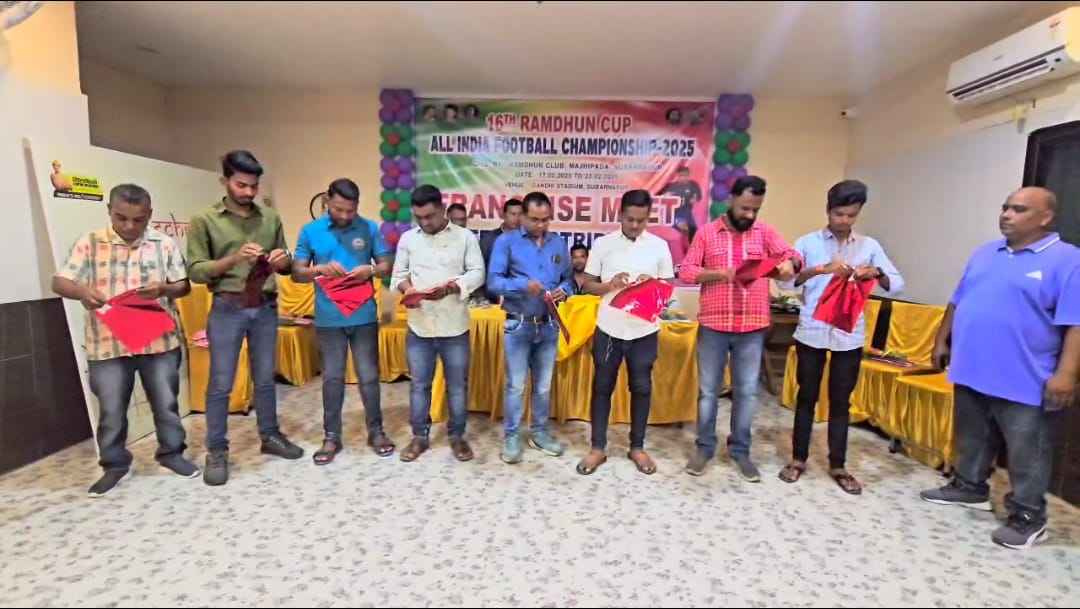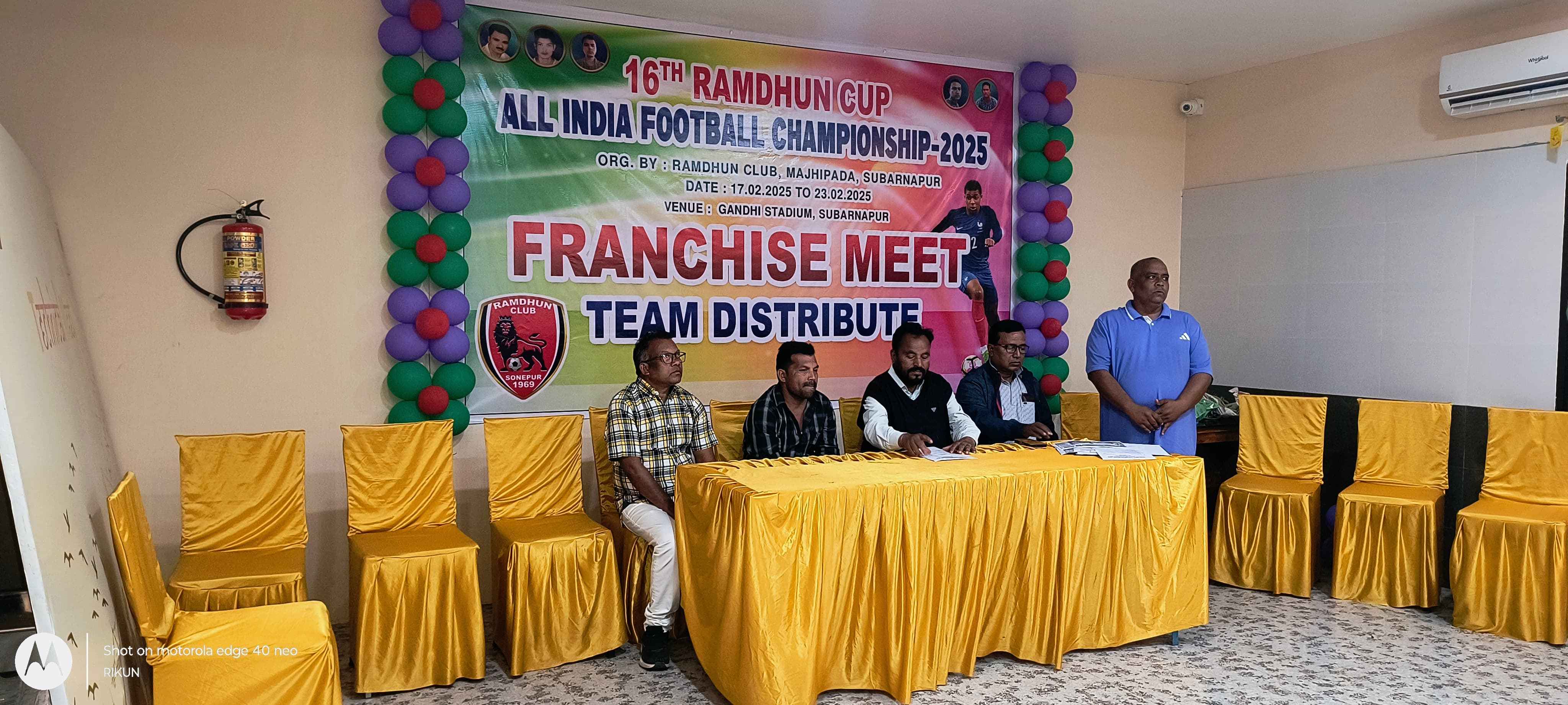 ସୋନପୁର (ମନୋରଞ୍ଜନ ତ୍ରିପାଠୀ ) ସ୍ଥାନୀୟ ହୋଟେଲ ମୁନ ଠାରେ ସୋନପୁର ରମଧୁନ କ୍ଲବ୍ ପକ୍ଷ ରୁ 16ତମ ସର୍ବଭାରତୀୟ ରାମଧୁନ କପ ଫୁଟବଲ ଟୁର୍ନାମେଣ୍ଟ ପାଇଁ ଏକ ଫ୍ରାଞ୍ଚାଇଜ୍ ମିଟ ଅନୁଷ୍ଟିତ ହୋଇଯାଇଅଛି l ଆଠ ଗୋଟି ଫ୍ରାଞ୍ଚାଇଜ ମାନଙ୍କୁ ନେ଼ଇ ଅନୁଷ୍ଟିତ ଏଇ ମିଟ୍ ର ସଭା ମଂଚ ରେ କ୍ଳବ ଉପଦେଷ୍ଟା କଇରୁ ସ୍ବାଇଁ, କ୍ରୀଡ଼ା ସଂଘ ଉପଦେଷ୍ଟା ଚିତ୍ତ ରଞ୍ଜନ ତରlସିଆ, କ୍କବ ସଦସ୍ୟ କମଳା ସାହୂ , ରାଜୀବ ସାହୂ, ପୀୟୂଷ ପଣ୍ଡା ପ୍ରମୁଖ ଉପସ୍ଥିତ ରହି ଫୁଟବଲ ଟୁର୍ନାମେଣ୍ଟ ଉପରେ ସବିଶେଷ ବିବରଣୀ ଦେଇଥିଲେ l ରାମଧୁନ କ୍ଲବ ର ସଦସ୍ୟ ବିକାଶ ପଣ୍ଡା ସ୍ୱାଗତ ଭାଷଣ ପ୍ରଦାନ କରିଥବା ବେଳେ ସଭାପରିଚାଳନା କରିଥିଲେ l ସମସ୍ତ ପ୍ରାୟୋଜକ ଙ୍କୁ ଆଜି ଏଠାରେ ସମ୍ବର୍ଧିତ କରାଯାଇଥିବା ବେଳେ ଆଠ ଗୋଟି ଟିମ୍ କୁ ନେଇ ଏମାନଙ୍କ ମଧ୍ୟରେ ଲଟେରୀ ଉଠାଣ ସହିତ ଜର୍ସି ଉନ୍ମୋଚନ କରଯାଇଥିଲା l ଆଠ ଗୋଟି ଫ୍ରାଞ୍ଚାଇଜ ମଧ୍ୟରେ ଚନ୍ଦ୍ରମା ମୋଟର୍ସ, ହୋତା ମୋଟର୍ସ, ସଂସ୍କାର ଏଗ୍ରୋ, ମହାନଦୀ ଧାରା, ବଗଲା ଜ୍ୱଲେର୍ସ, ଶରଧା ଟେକ୍ନୋଲୋଜି, ଆଦିତି +2 କଲେଜ ଏବଂ ନାଇସେଟ କମ୍ପୁଟର ପ୍ରମୁଖ ବିଭିନ୍ନ ଫୁଟବଲ ଦଳ କୁ ଚୟନ କରିଥିଲେ l