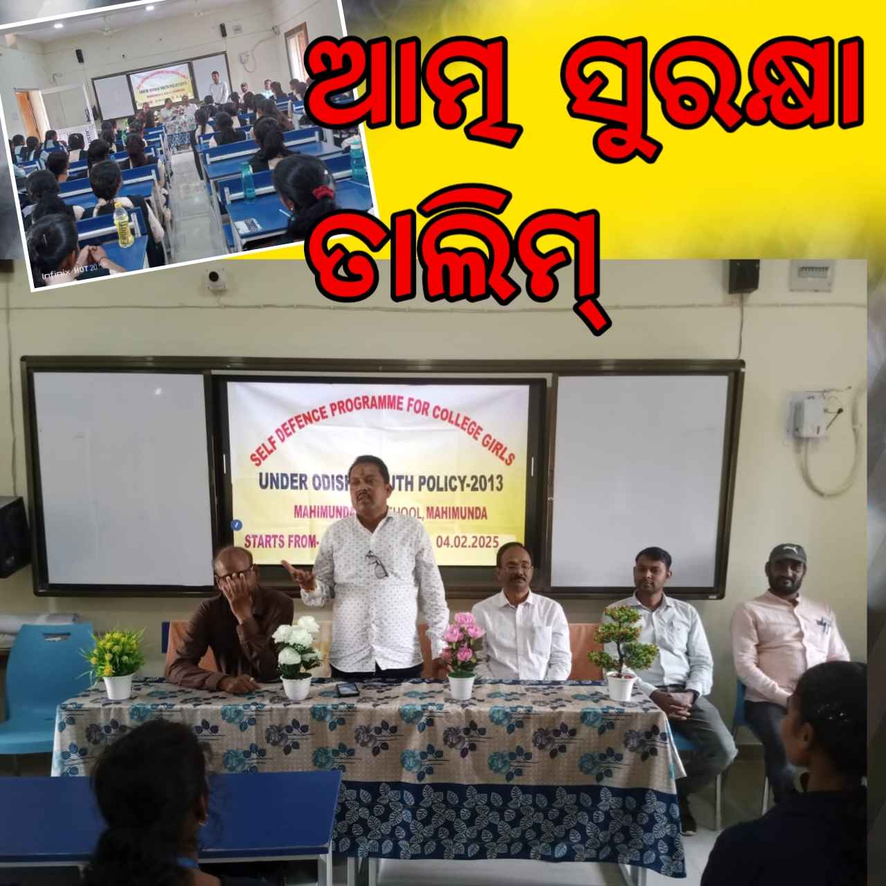 ଡ. ଧନଞ୍ଜୟ ସେଠ୍ ବିଭିନ୍ନ ଉଦାହରଣ ସହ ତାଲିମ ଶିବିରର ପ୍ରାସଙ୍ଗିକତା ଉପରେ ମତବ୍ୟକ୍ତ କରିଥିଲେ । ସମ୍ମାନିତ ଅତିଥି ଭାବେ ଯୋଗ ଦେଇଥିବା ଏହି ଶିବିରର ଜିଲ୍ଲା ସଂଯୋଜକ ସୁଦାମ ଖମାରୀ କିଛି ଅନୁଭୂତି ସହ ଉଭୟ ମାନସିକ ଓ ଶାରୀରିକ ସ୍ତରରେ ଶକ୍ତିଶାଳୀ ହେବା ପାଇଁ ପ୍ରେରଣାଦାୟୀ ବକ୍ତବ୍ୟ ରଖିଥିଲେ। ଅନୁଷ୍ଠାନର ଅଧ୍ୟକ୍ଷ ଶ୍ରୀଯୁକ୍ତ ଦୁର୍ଯୋଧନ ପଧାନ ପ୍ରାରମ୍ଭିକ ସୂଚନା ଦେବା ସହ ଆତ୍ମ ସୁରକ୍ଷା ଉପରେ ଗୁରୁତ୍ୱାରୋପ କରିଥିଲେ। ଡ. ଜଗନ୍ନାଥ ସାହୁ କାର୍ଯ୍ୟକ୍ରମକୁ ସଂଯୋଜନା କରିଥିଲେ । ଏହି କାର୍ଯକ୍ରମର ସଂଯୋଜକ ଶ୍ରୀଯୁକ୍ତ ସୀତାପତି ବିଶ୍ଵାଳ ସହ ଅଧ୍ୟାପକ ପ୍ରକାଶ ନାୟକ, ଅଧ୍ୟାପକ ସରୋଜ ବିଶି, ଅଧ୍ୟାପକ ଶିବପ୍ରସାଦ ଗଡତ୍ୟା କାର୍ଯ୍ୟକ୍ରମକୁ ତଦାରଖ କରିଥିଲେ ।